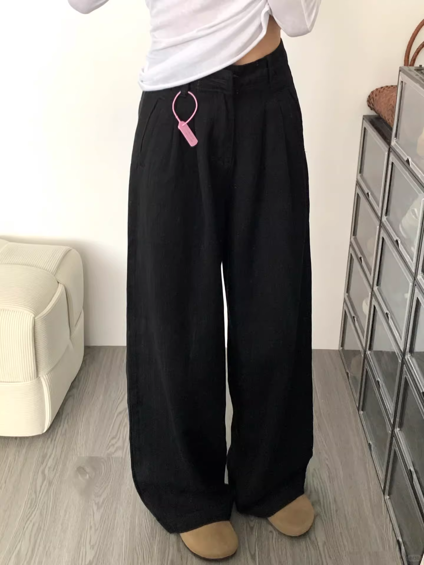 - Quần jean đen dáng lê dành cho nữ, size lớn mùa thu, cạp cao, dáng rộng, suôn mềm, tôn dáng, quần ống rộng thoải mái