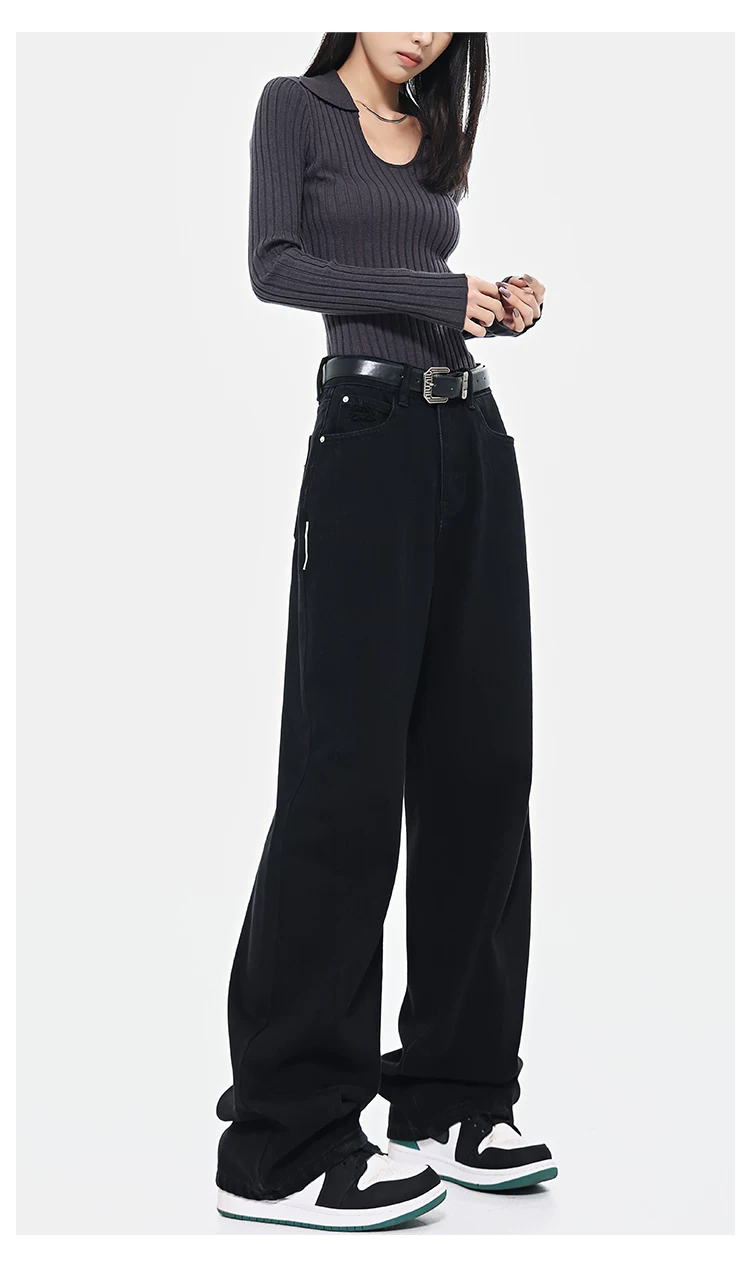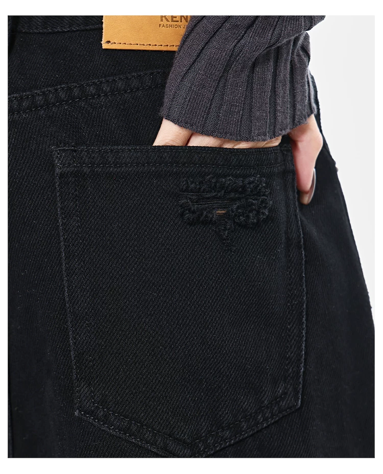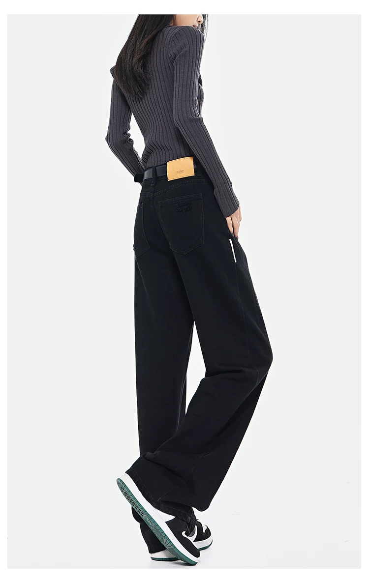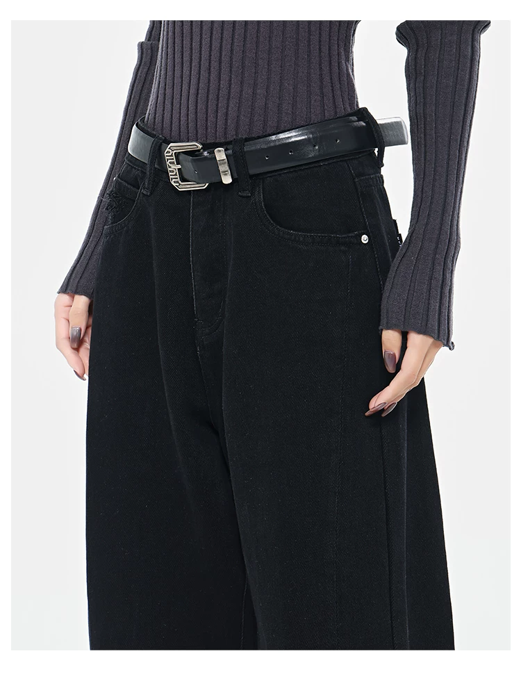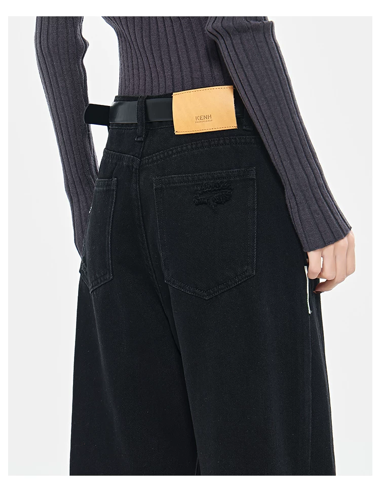 - Quần jean đen KEN STUDIO dành cho nữ, quần ống rộng dáng rộng lưng cao kiểu dáng cổ điển mới mùa xuân thu.