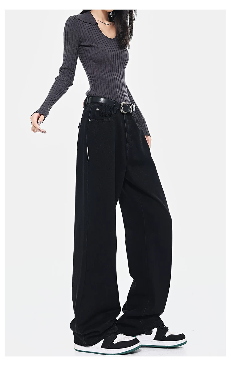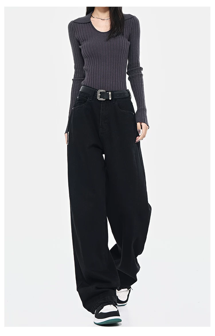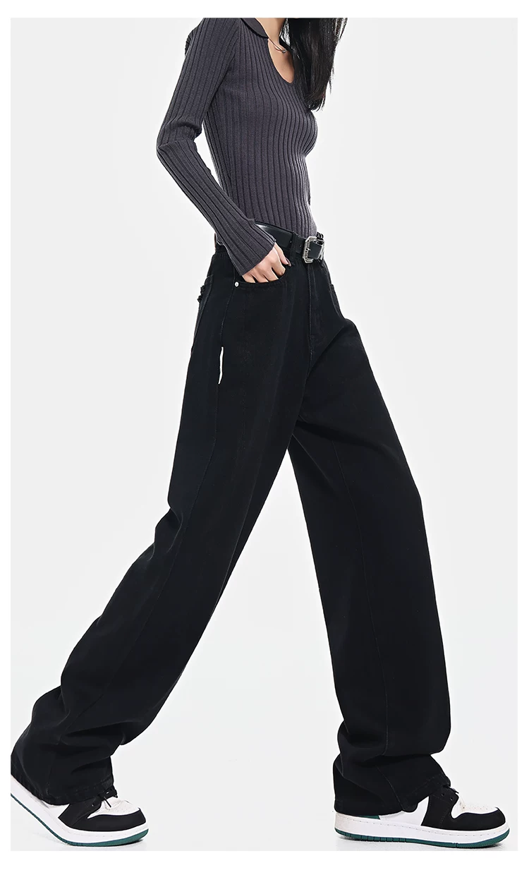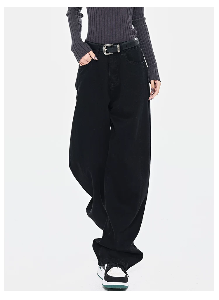 - Quần jean đen KEN STUDIO dành cho nữ, quần ống rộng dáng rộng lưng cao kiểu dáng cổ điển mới mùa xuân thu.