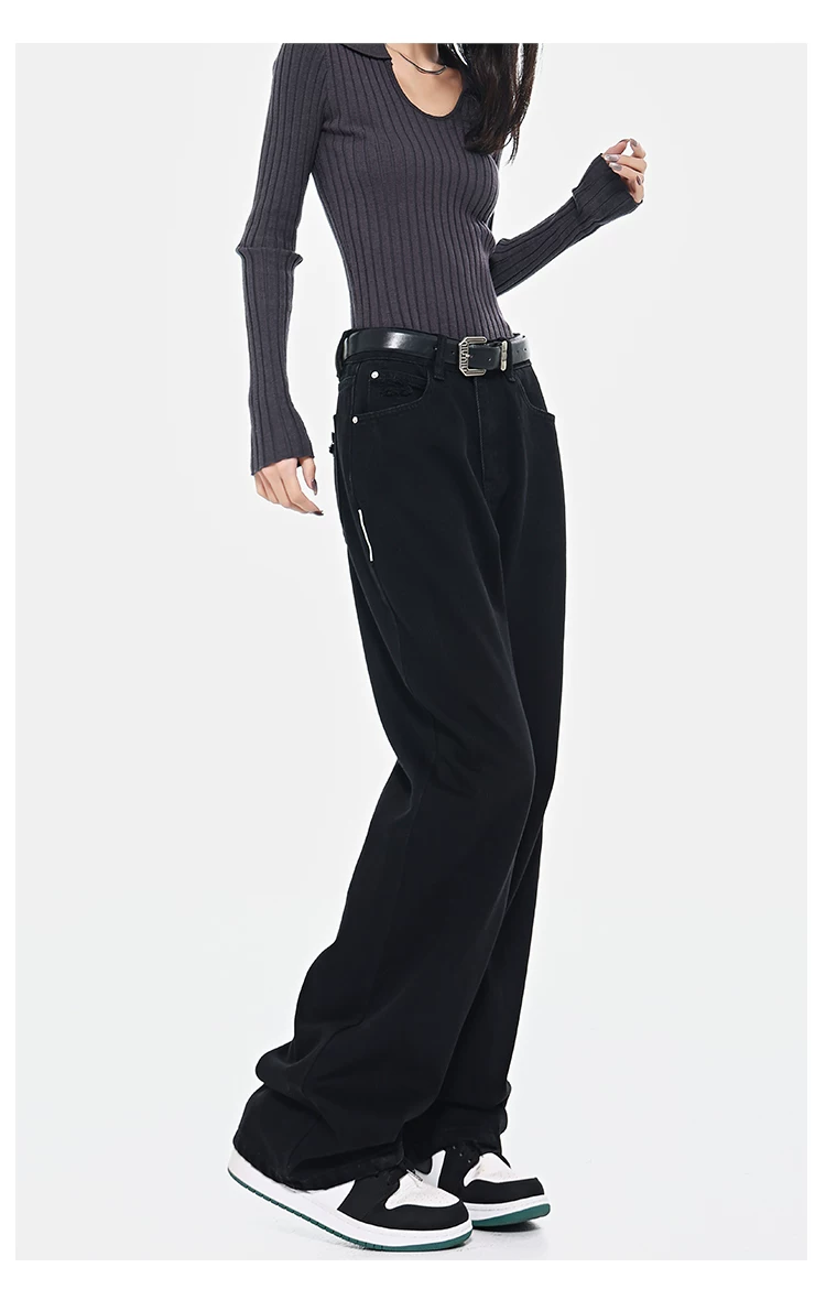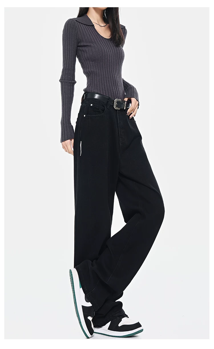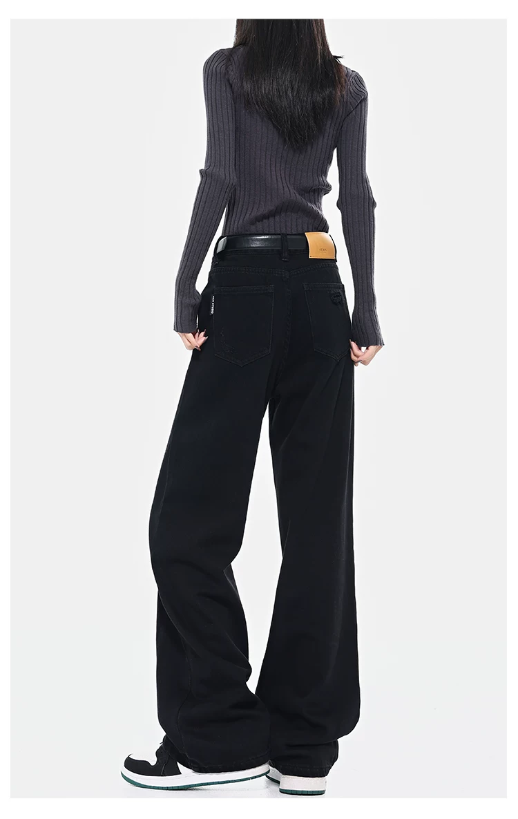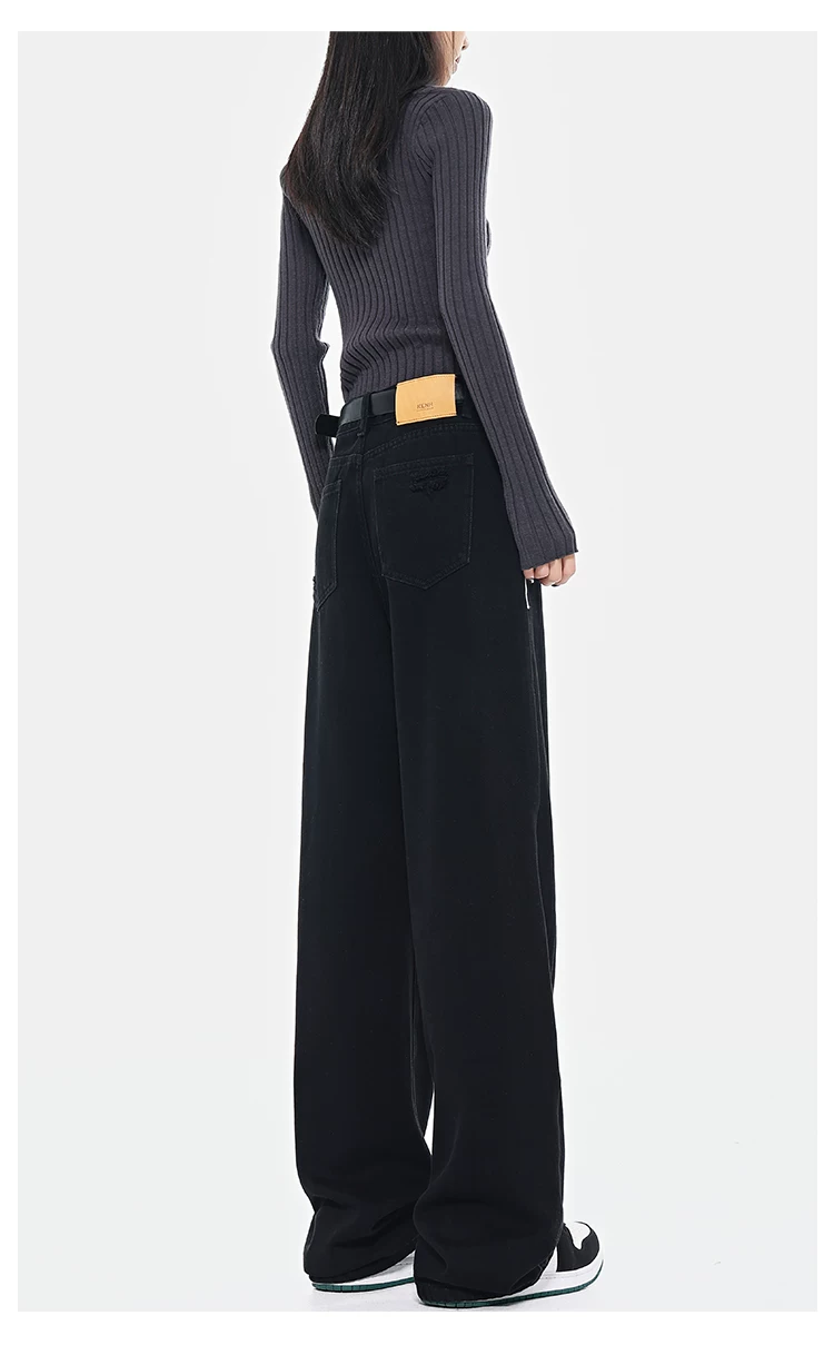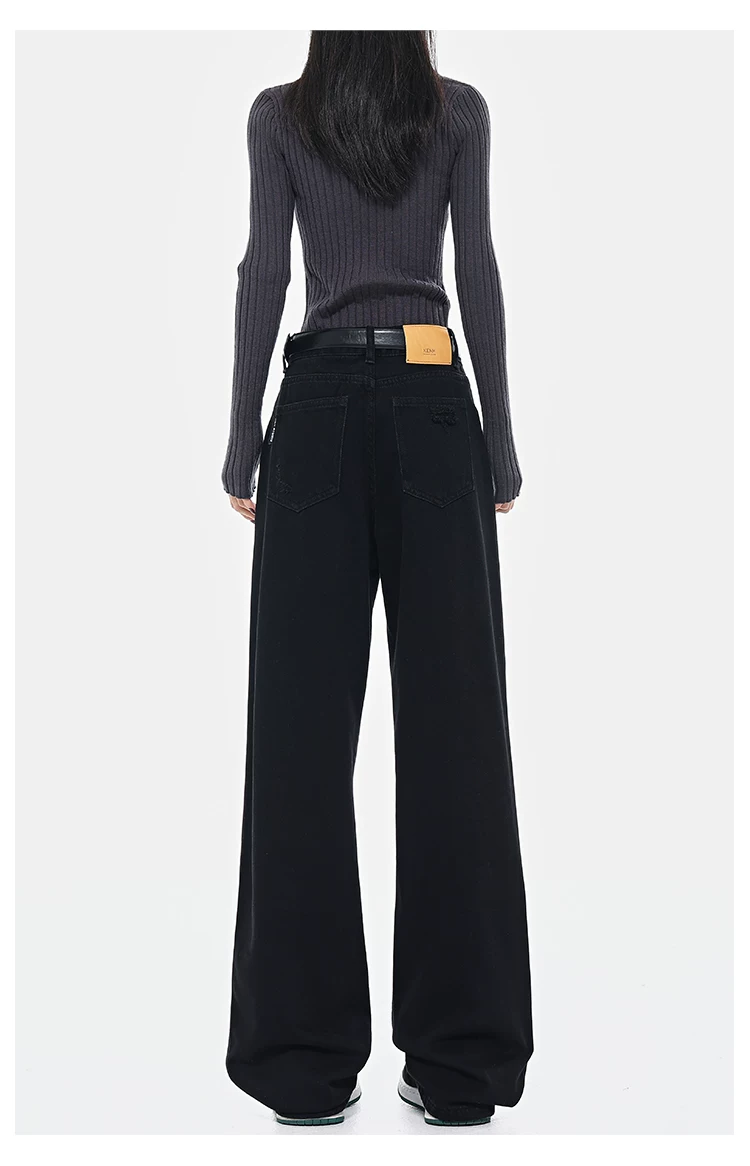 Quần jean đen KEN STUDIO dành cho nữ, quần ống rộng dáng rộng lưng cao kiểu dáng cổ điển mới mùa xuân thu.