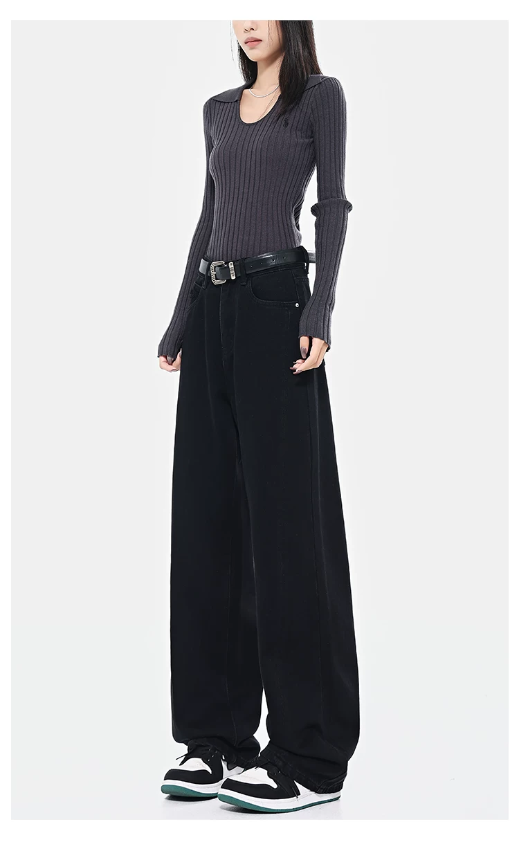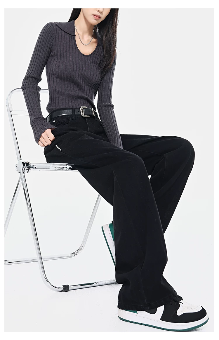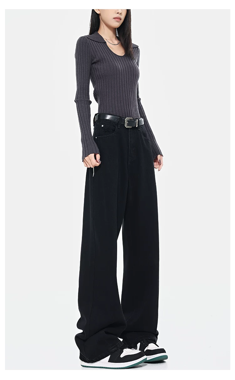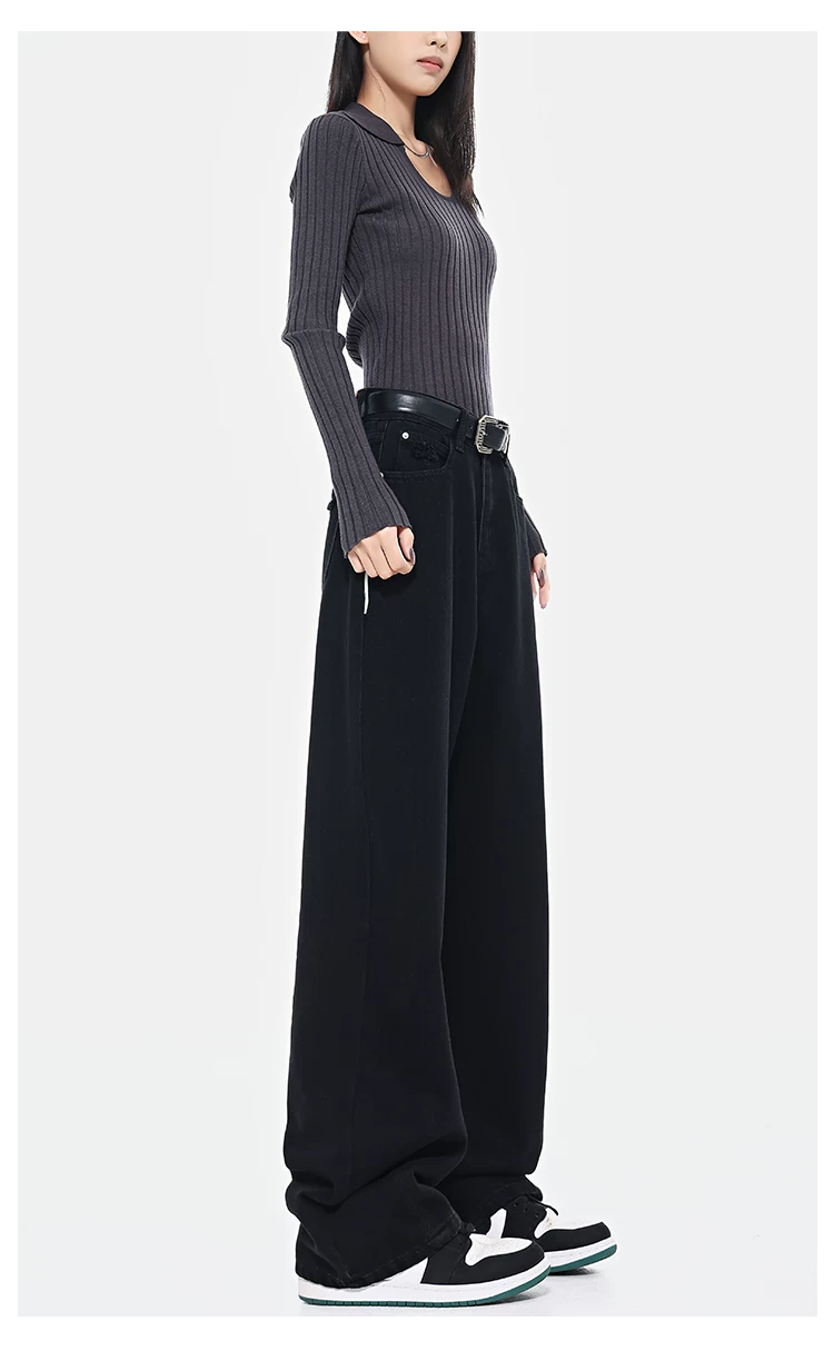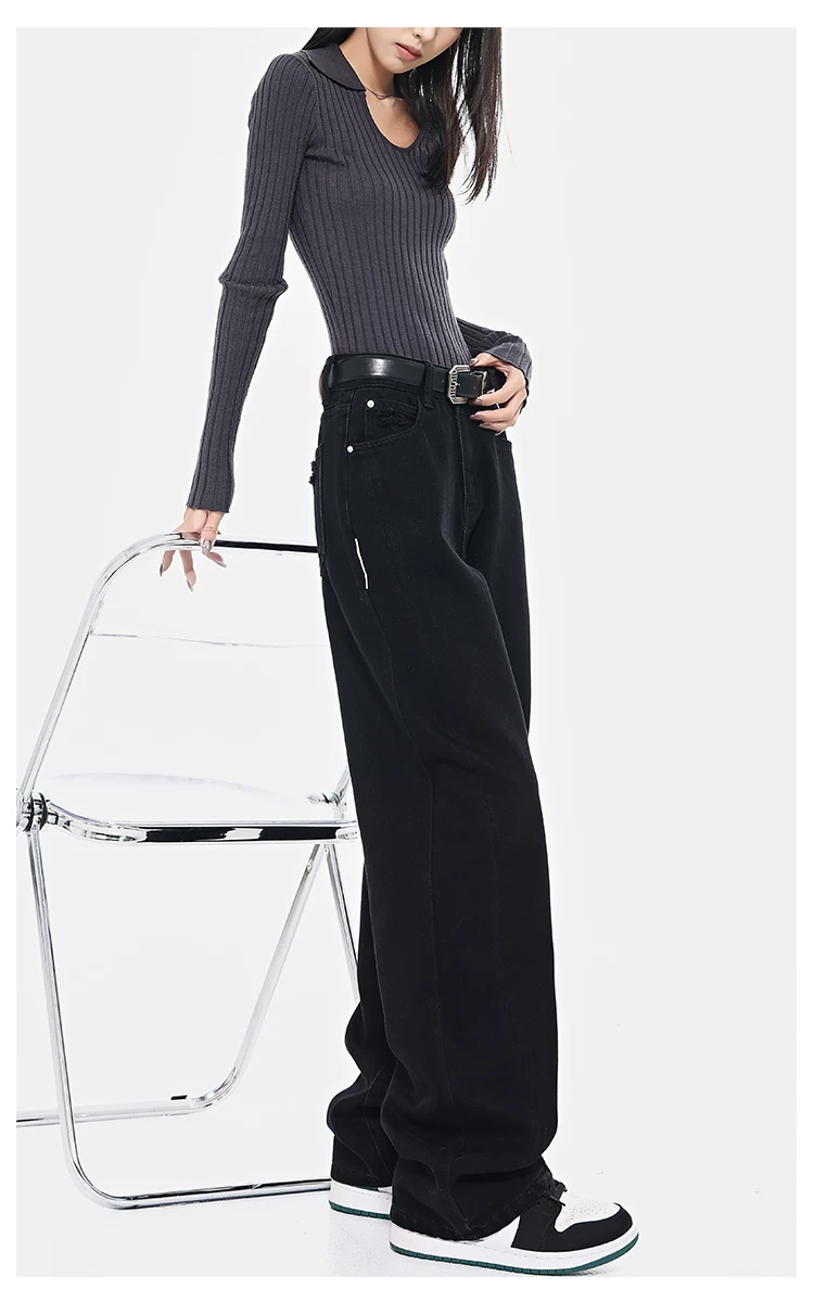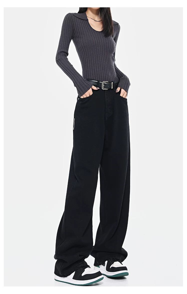 Quần jean đen KEN STUDIO dành cho nữ, quần ống rộng dáng rộng lưng cao kiểu dáng cổ điển mới mùa xuân thu.
