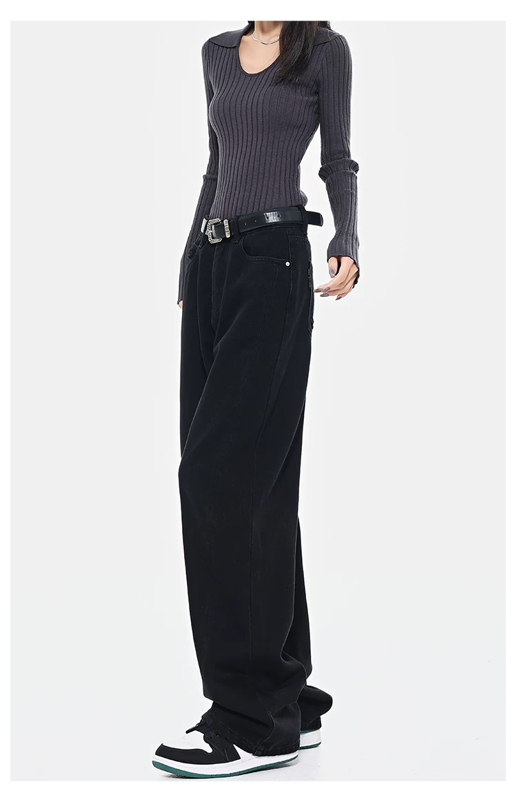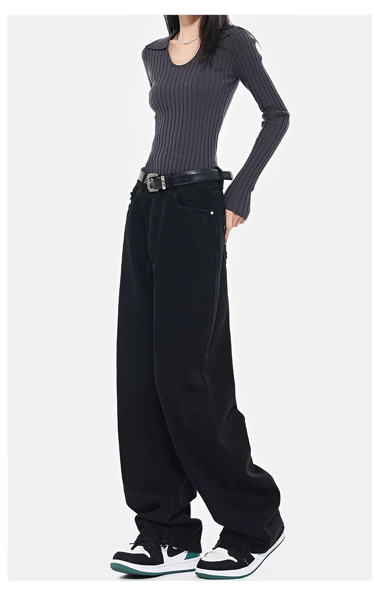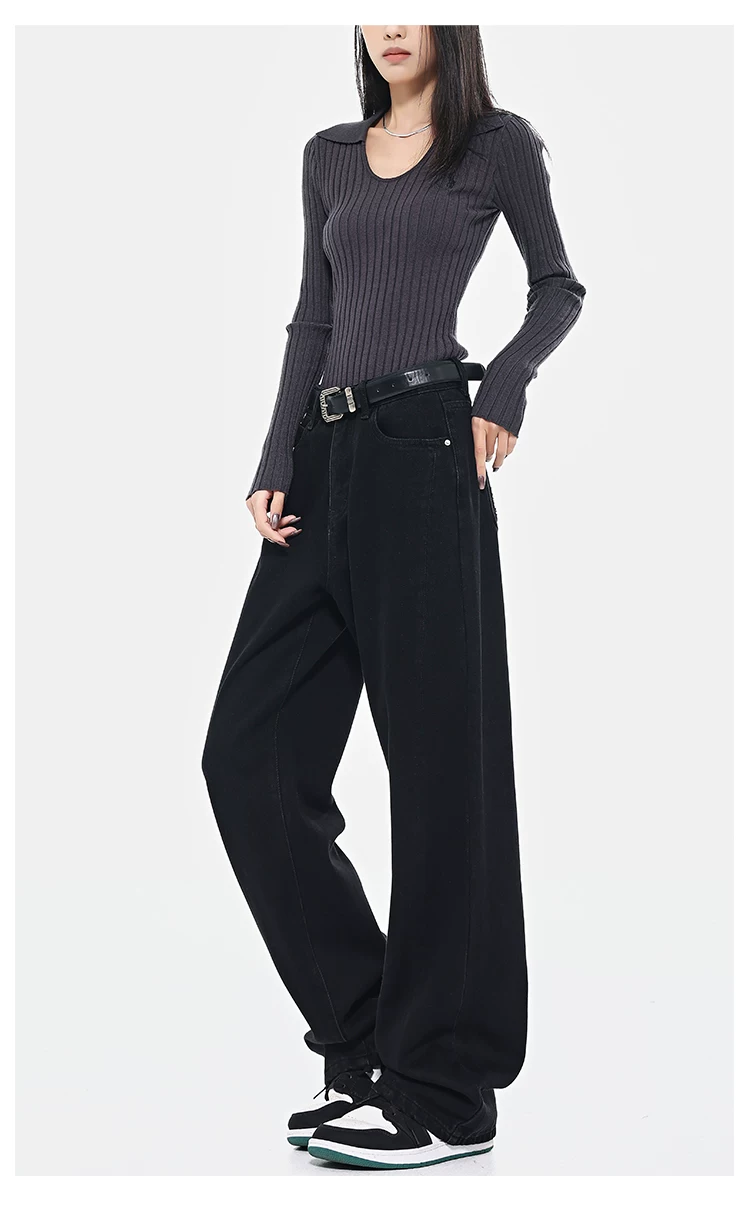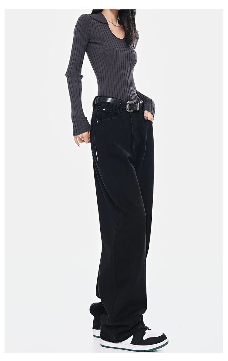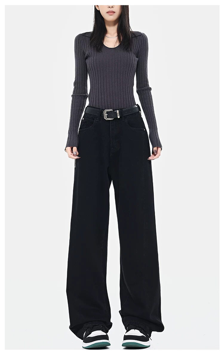 Quần jean đen KEN STUDIO dành cho nữ, quần ống rộng dáng rộng lưng cao kiểu dáng cổ điển mới mùa xuân thu.
