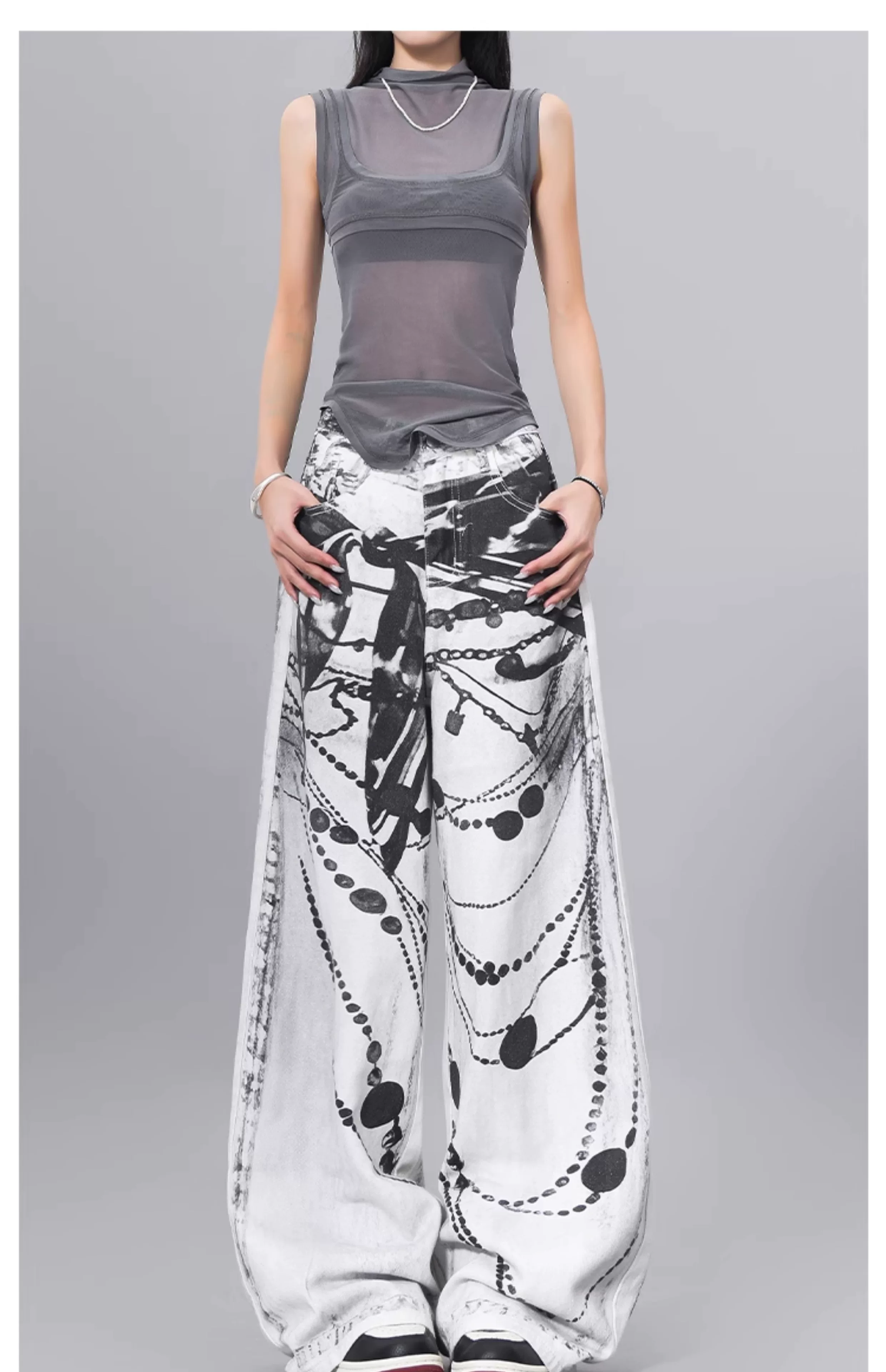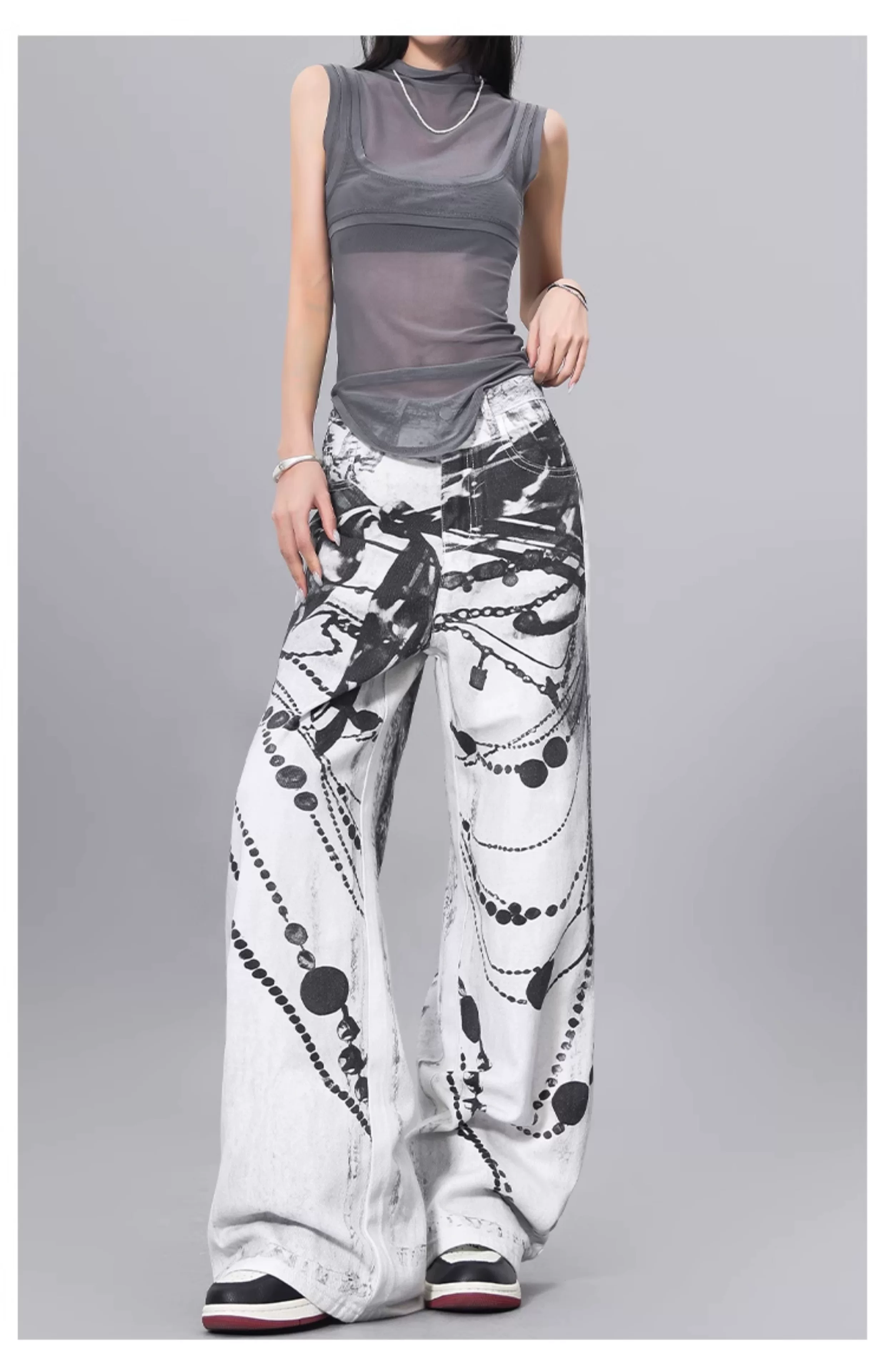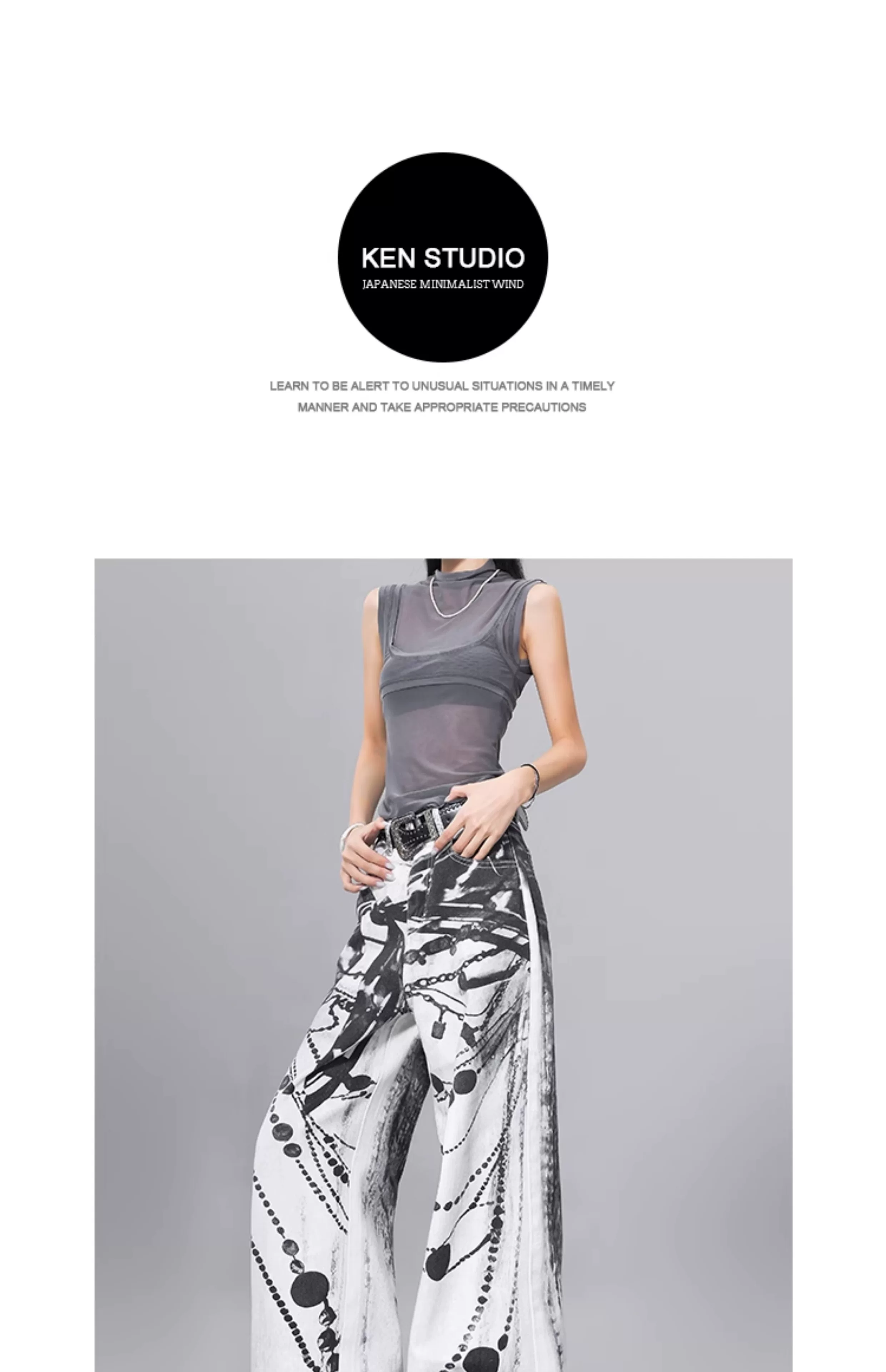 - Quần jean denim in mực KEN STUDIO dành cho nữ, phong cách đường phố mùa hè, quần cạp cao, dáng rộng và quần giảm béo