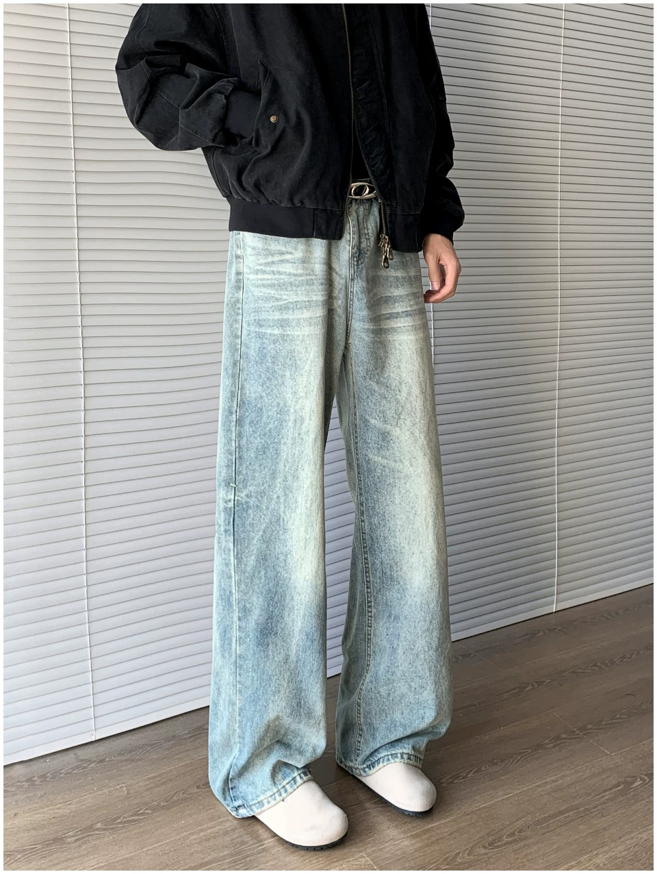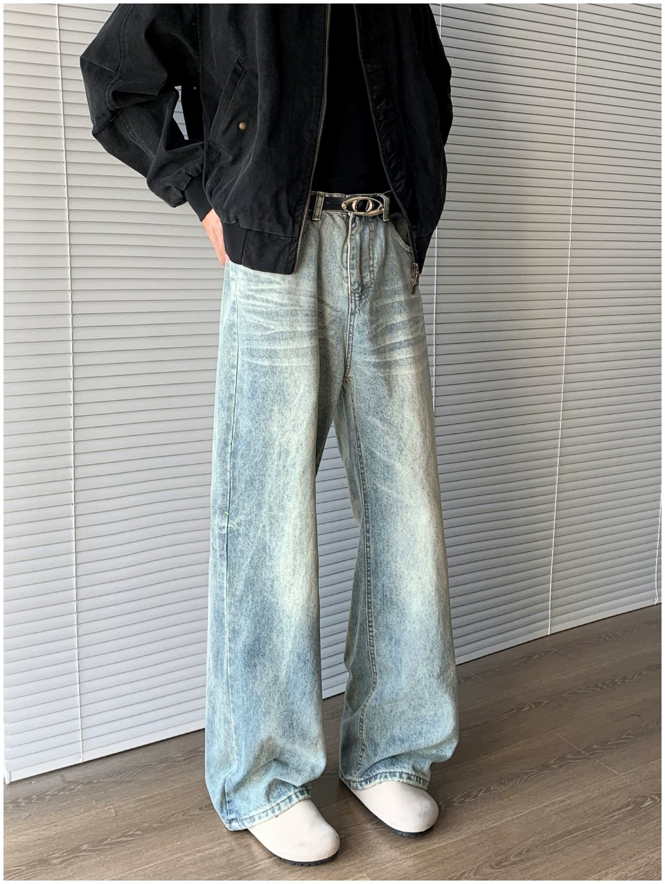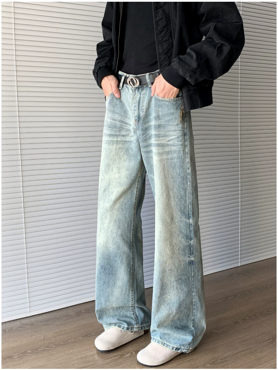 - Quần jean denim kiểu Mỹ dành cho nam, thương hiệu thời thượng mùa thu cleanfit, quần ống loe thẳng thời trang, quần ống rộng phong cách retro đường phố.