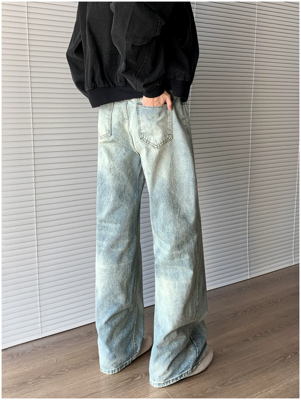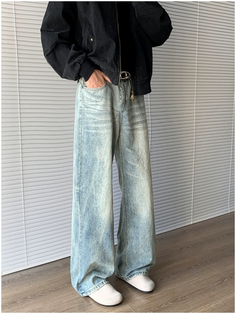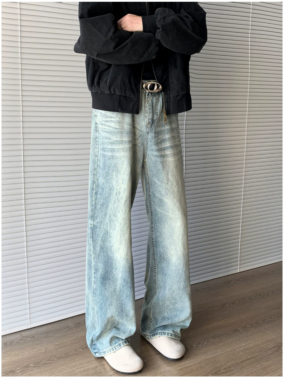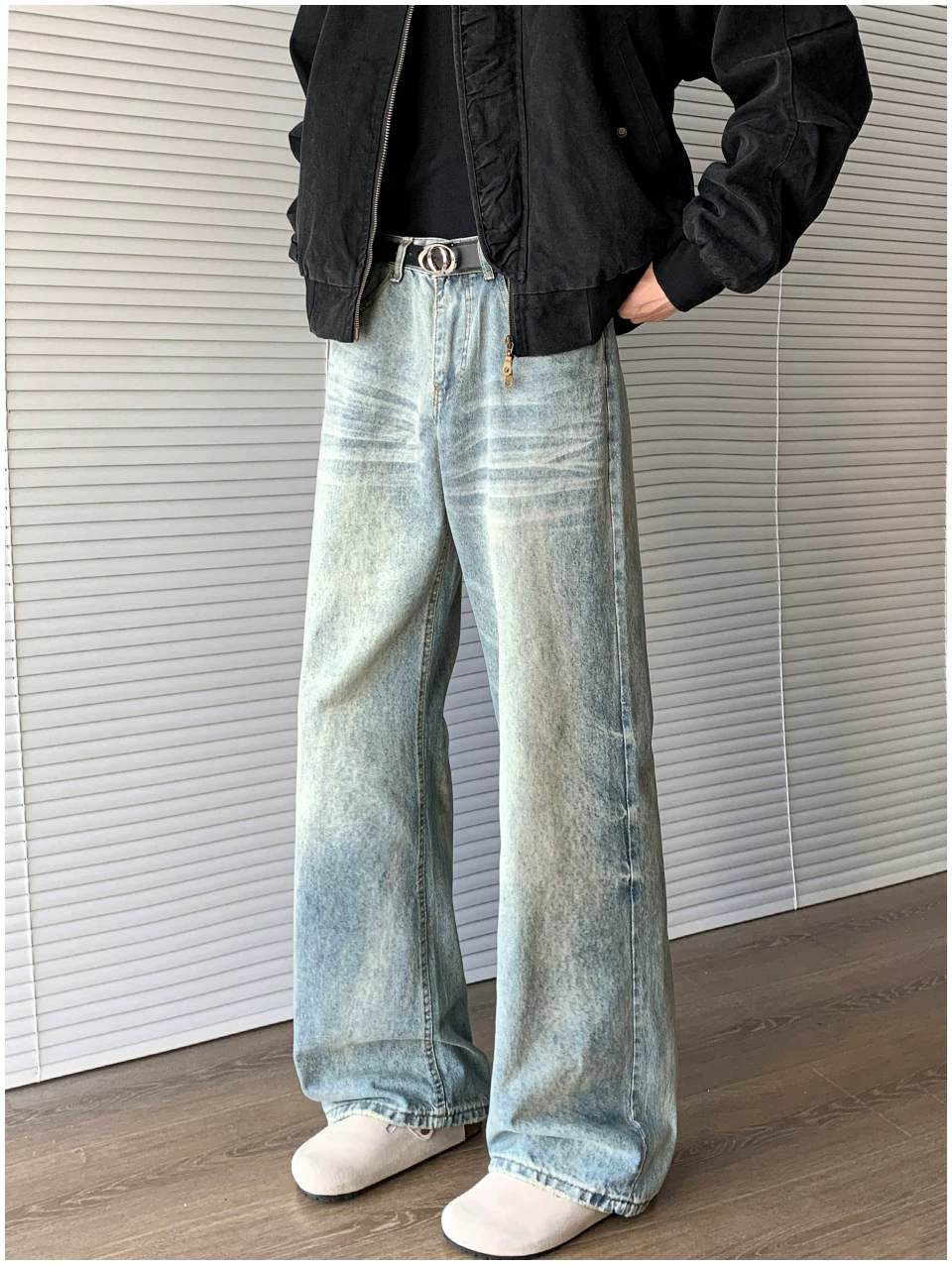 - Quần jean denim kiểu Mỹ dành cho nam, thương hiệu thời thượng mùa thu cleanfit, quần ống loe thẳng thời trang, quần ống rộng phong cách retro đường phố.