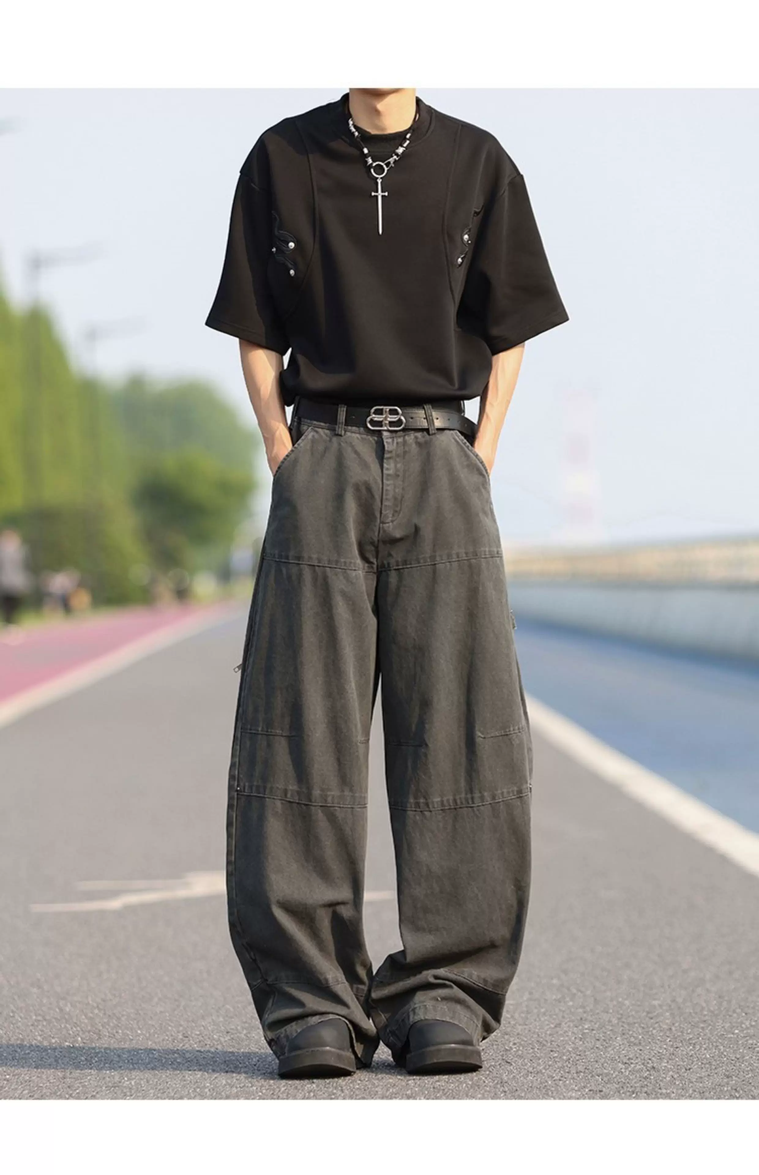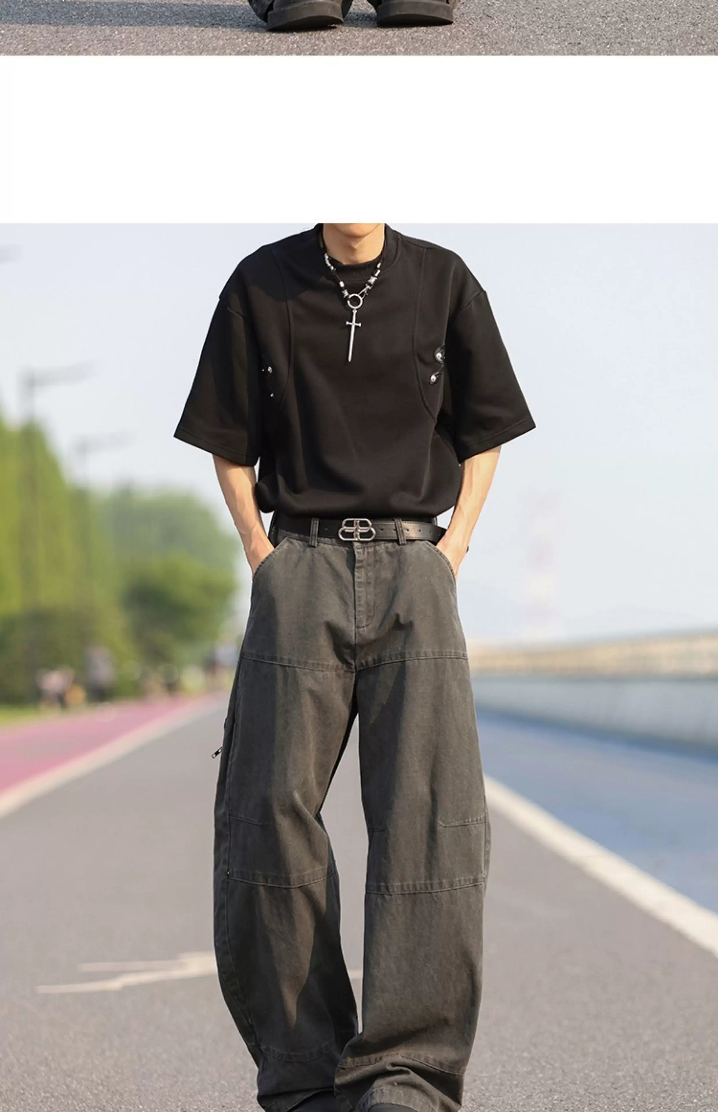 - Quần jean denim nam chất liệu dày dặn, kiểu dáng mỏng mùa hè, thương hiệu thời thượng, ống đứng rộng rãi, giặt mài tạo hiệu ứng cũ, dài chạm đất.