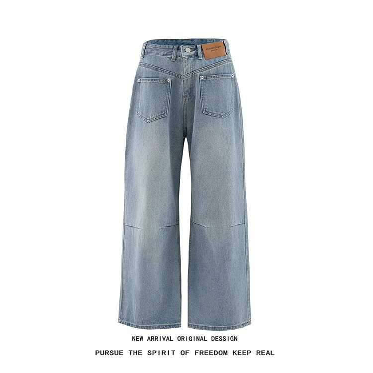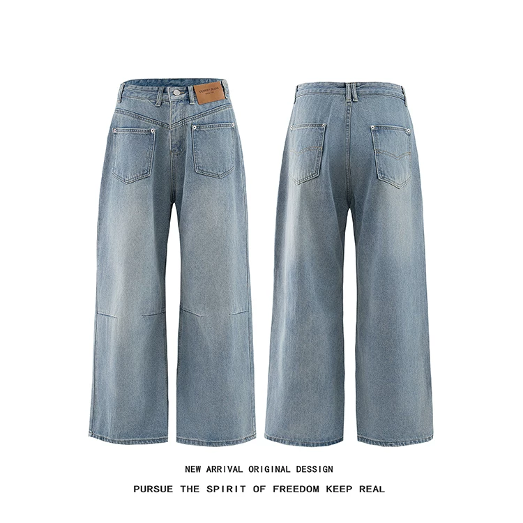 - Quần jean denim nam kiểu Mỹ cổ điển, quần ống rộng thoải mái mùa hè, quần ống đứng thiết kế lộn ngược thời thượng.