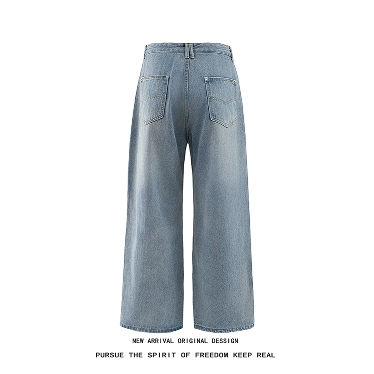 Quần jean denim nam kiểu Mỹ cổ điển, quần ống rộng thoải mái mùa hè, quần ống đứng thiết kế lộn ngược thời thượng.