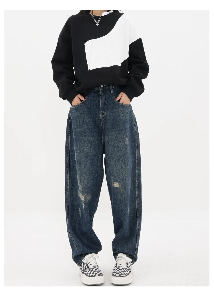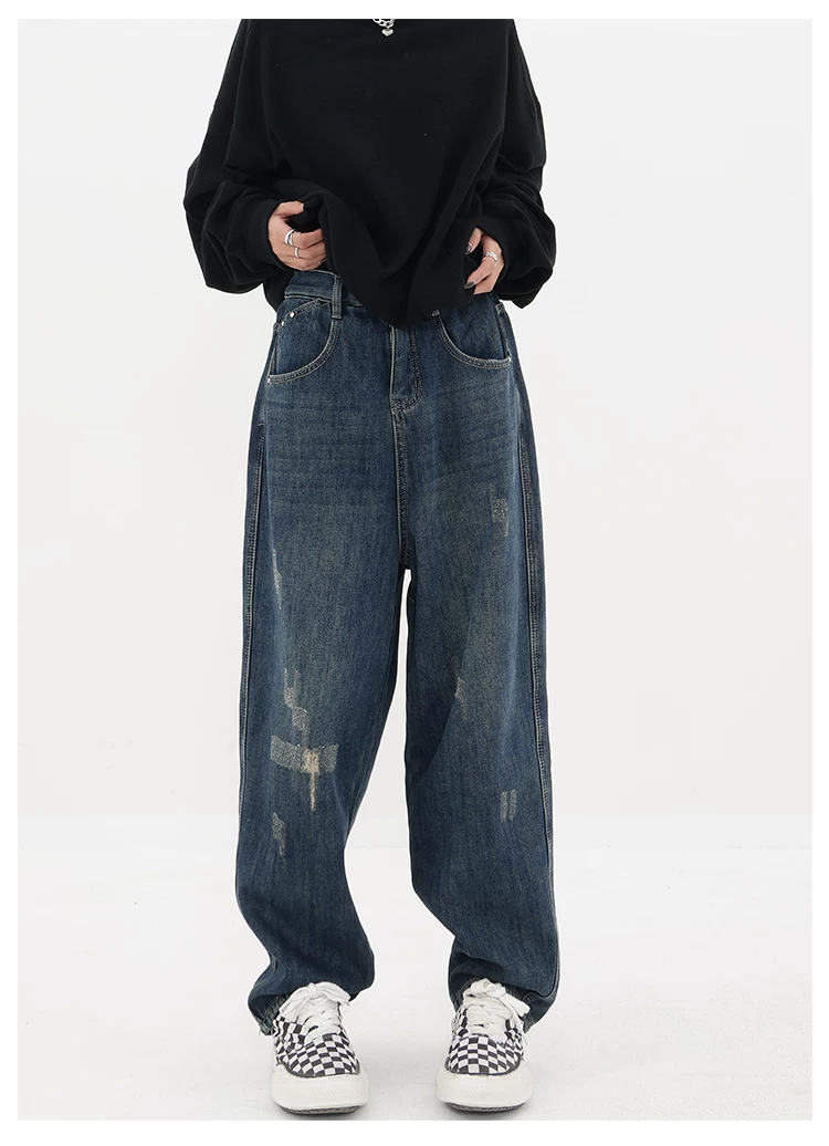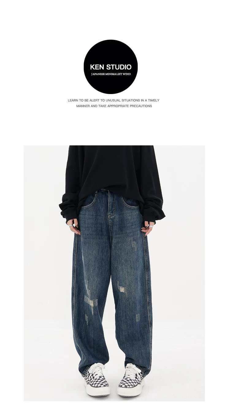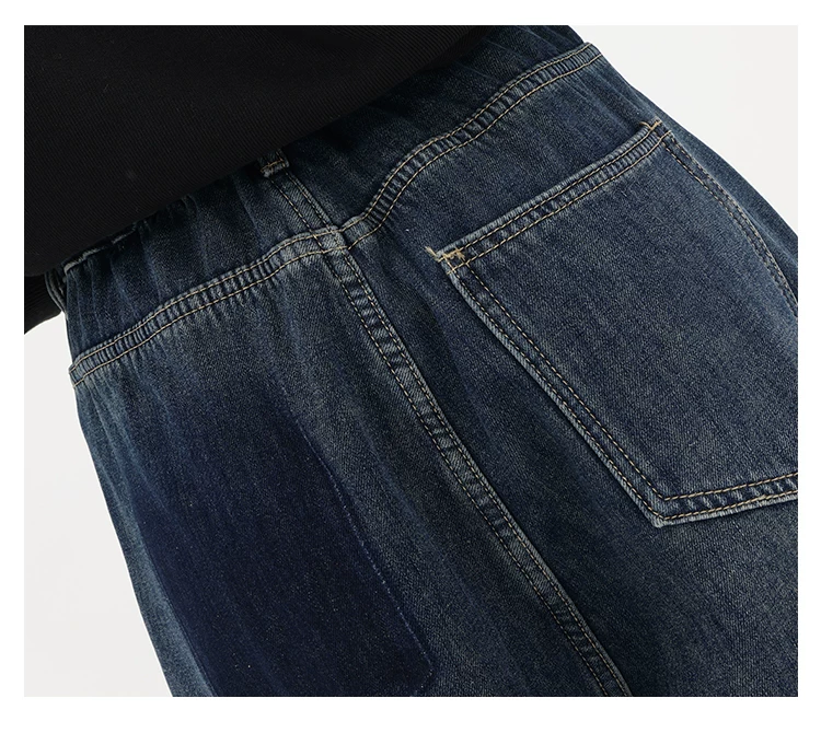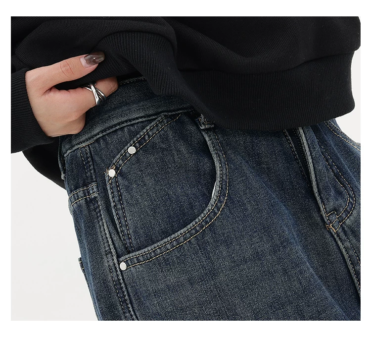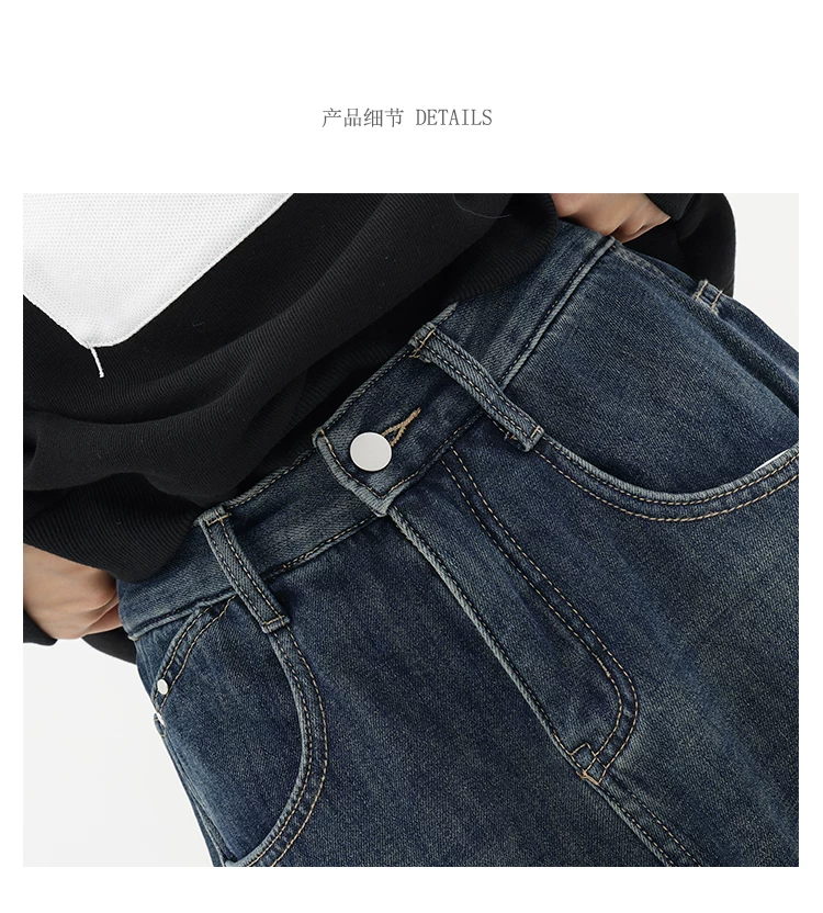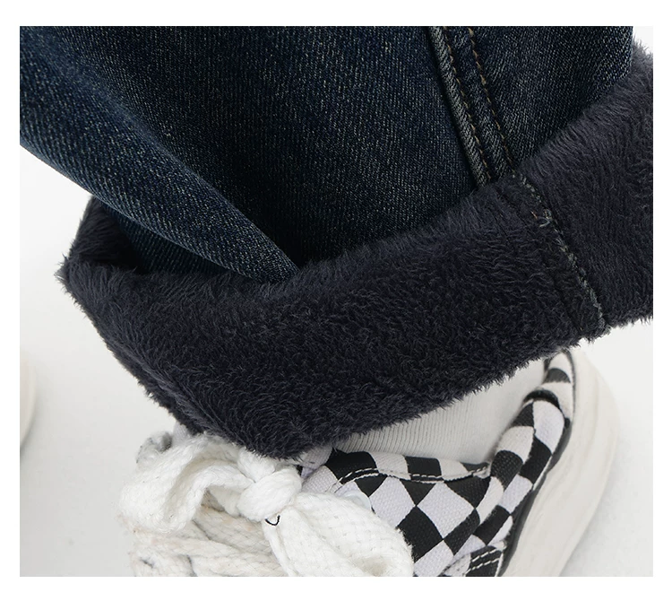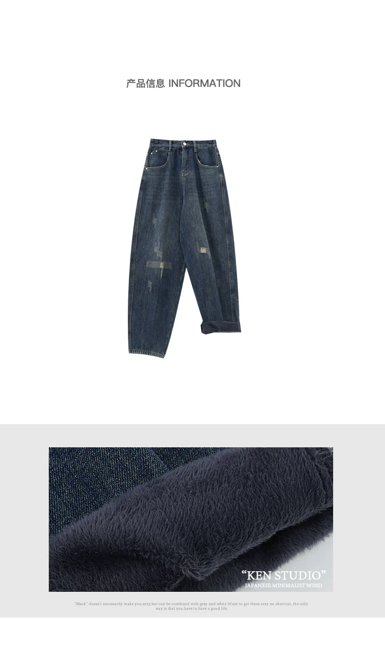 - Quần jean harem màu xanh cổ điển của KEN STUDIO dành cho nữ, quần thường ngày dáng ôm dày hình quả cà rốt có lót lông cừu mùa thu đông.