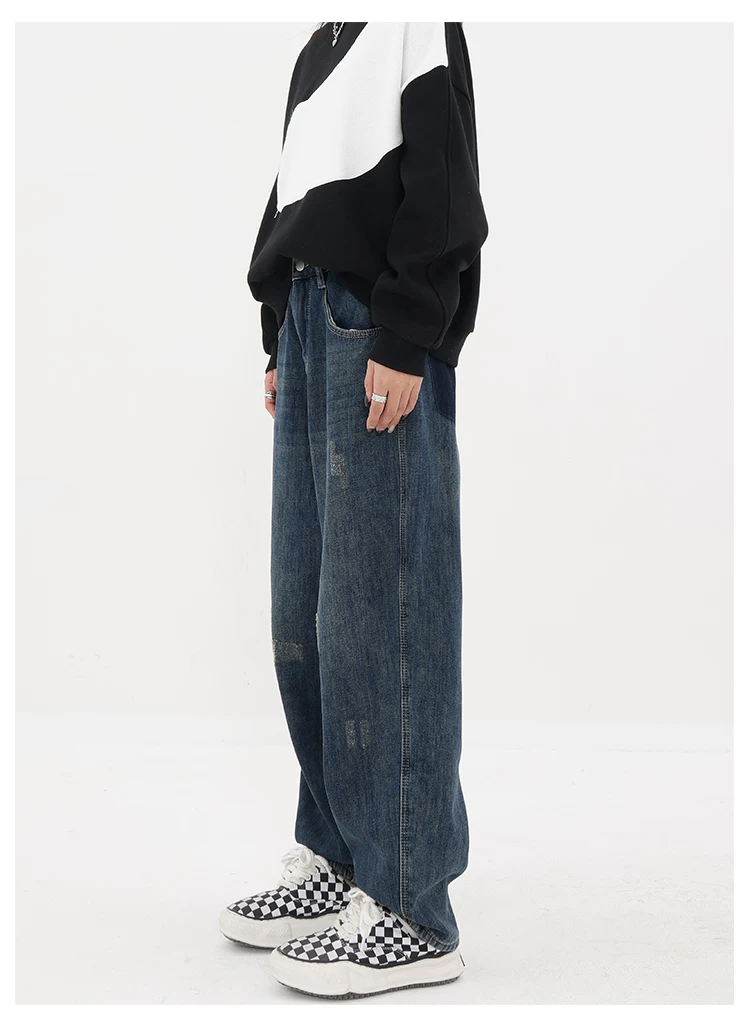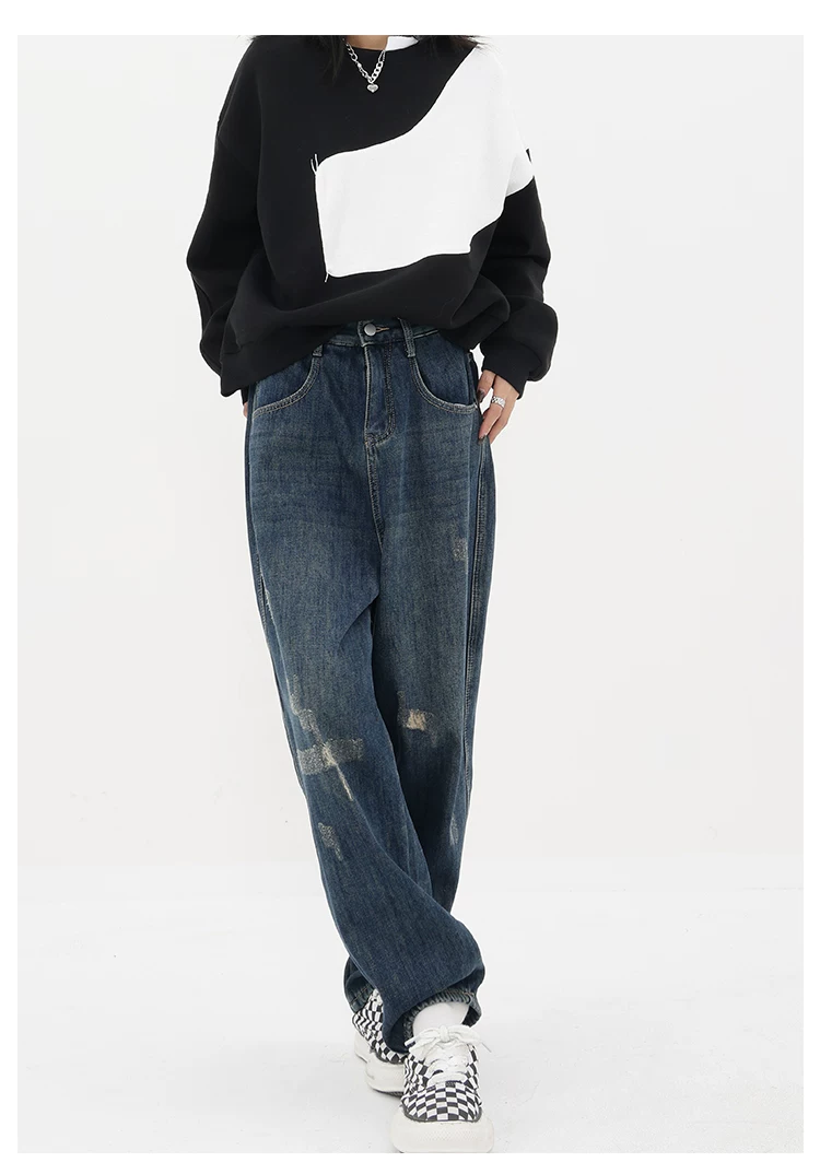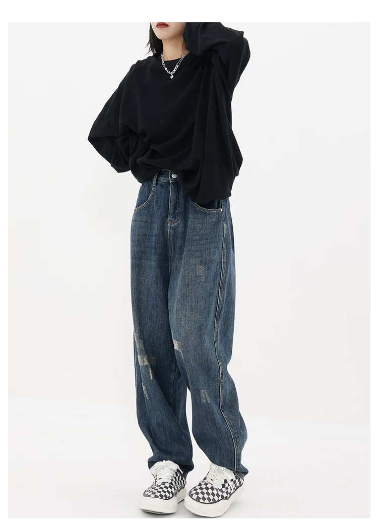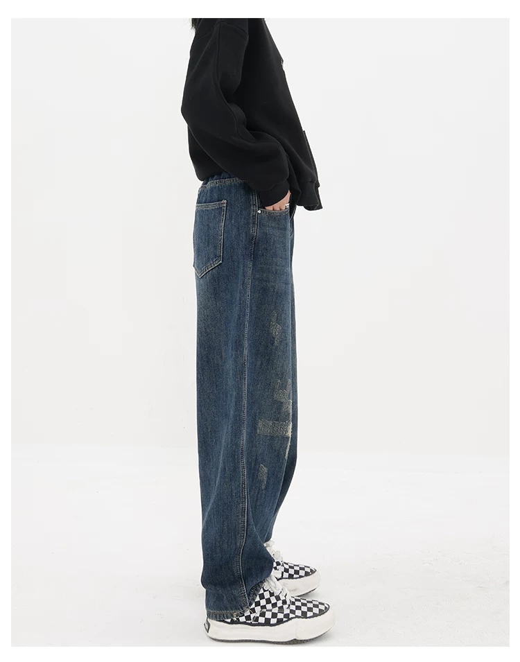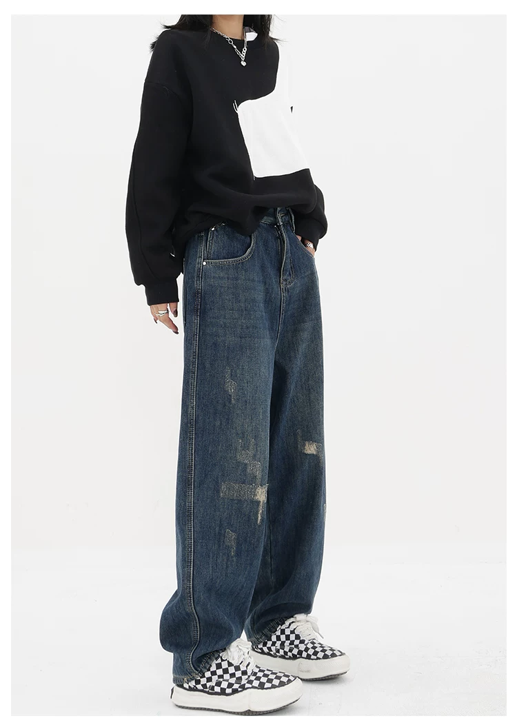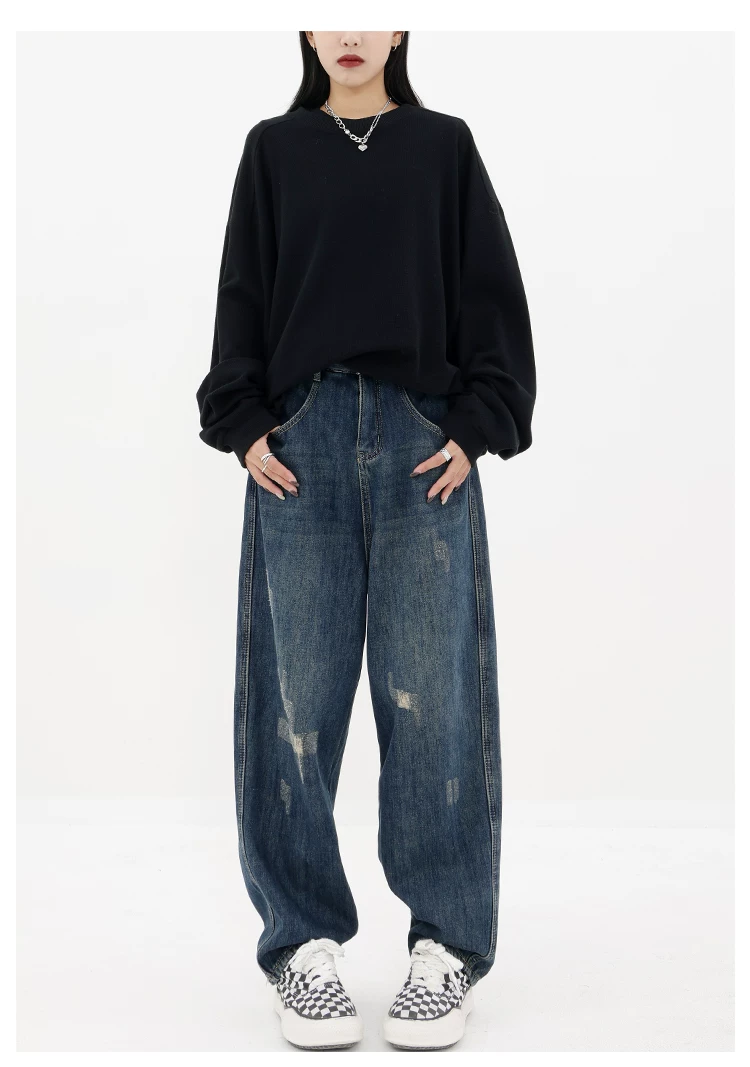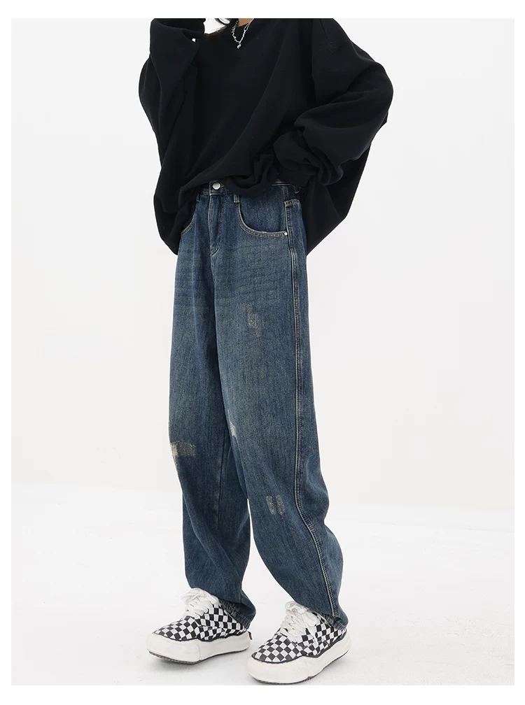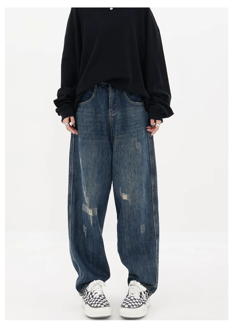 - Quần jean harem màu xanh cổ điển của KEN STUDIO dành cho nữ, quần thường ngày dáng ôm dày hình quả cà rốt có lót lông cừu mùa thu đông.