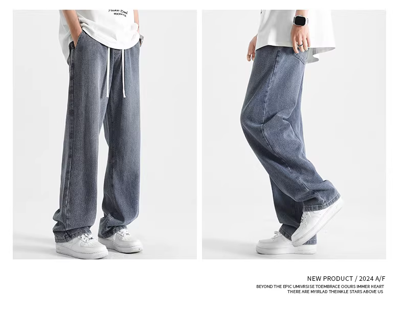 - Quần jean họa tiết bầu trời đầy sao kiểu Mỹ dành cho nam, quần ống rộng dáng rộng kiểu dáng thời trang mùa hè mỏng nhẹ có hiệu ứng xếp nếp, quần dài thẳng kiểu giản dị