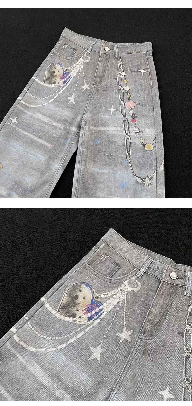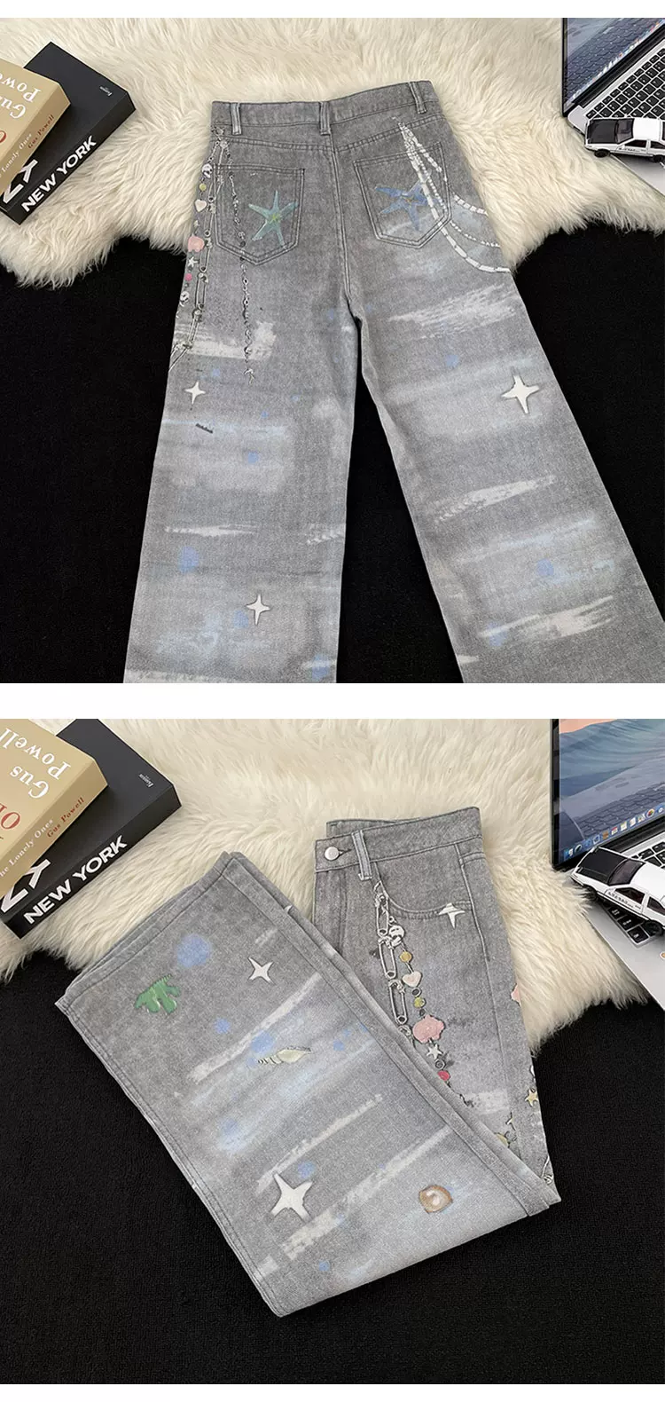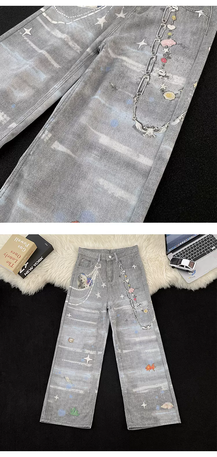 - Quần jean in 3D dành cho nam và nữ, quần ống đứng phong cách thời thượng mùa xuân thu, quần ống rộng dáng rộng phong cách retro Mỹ.