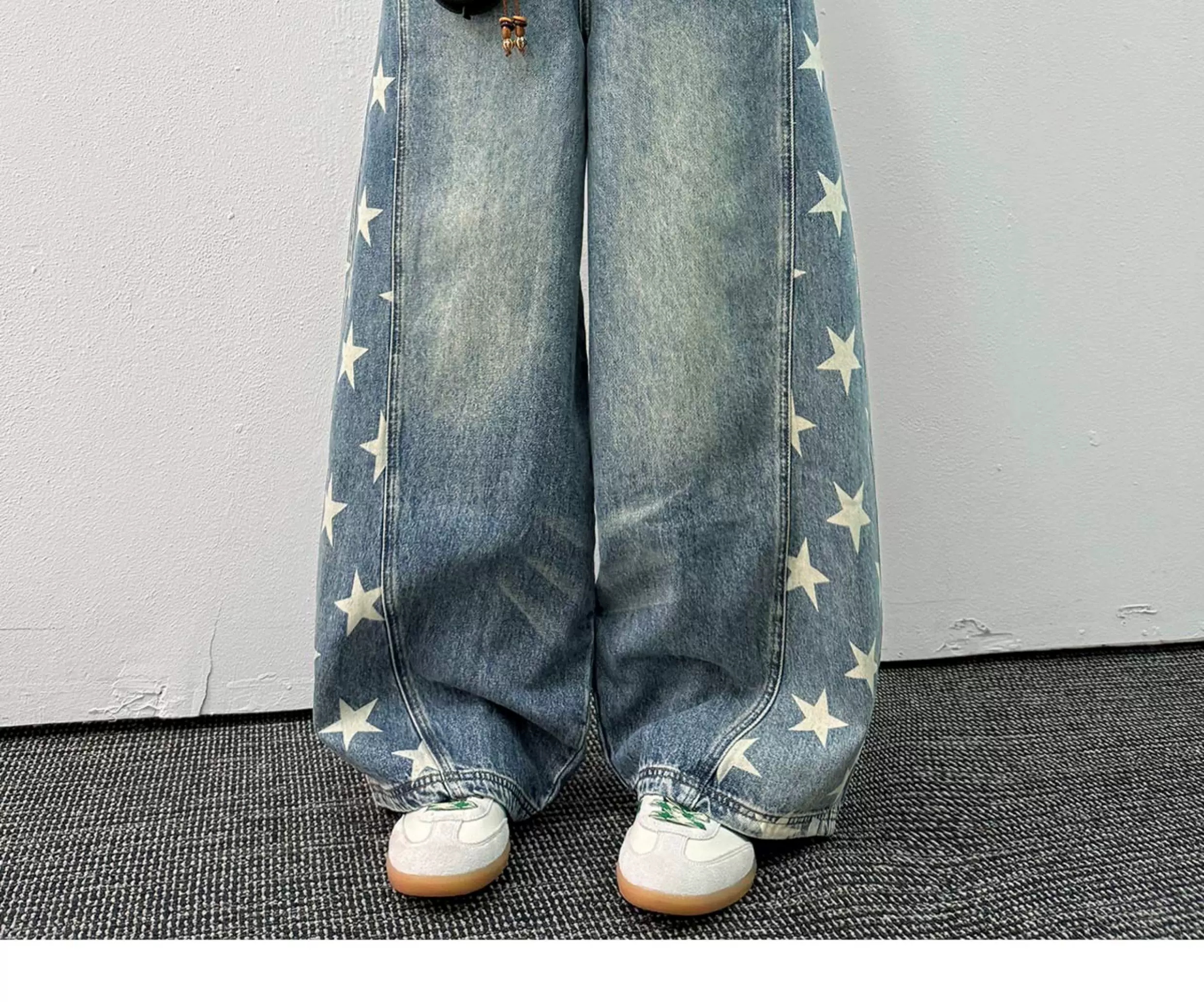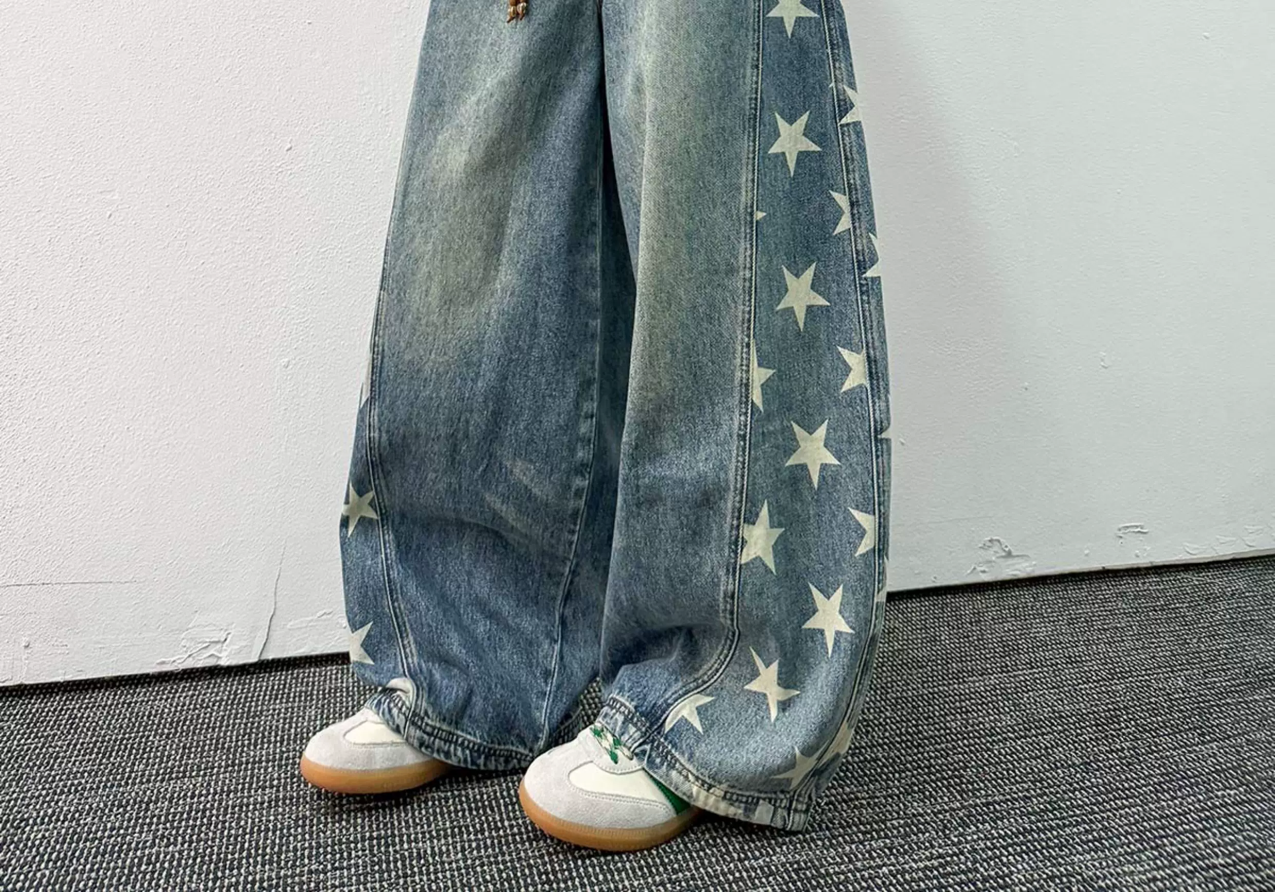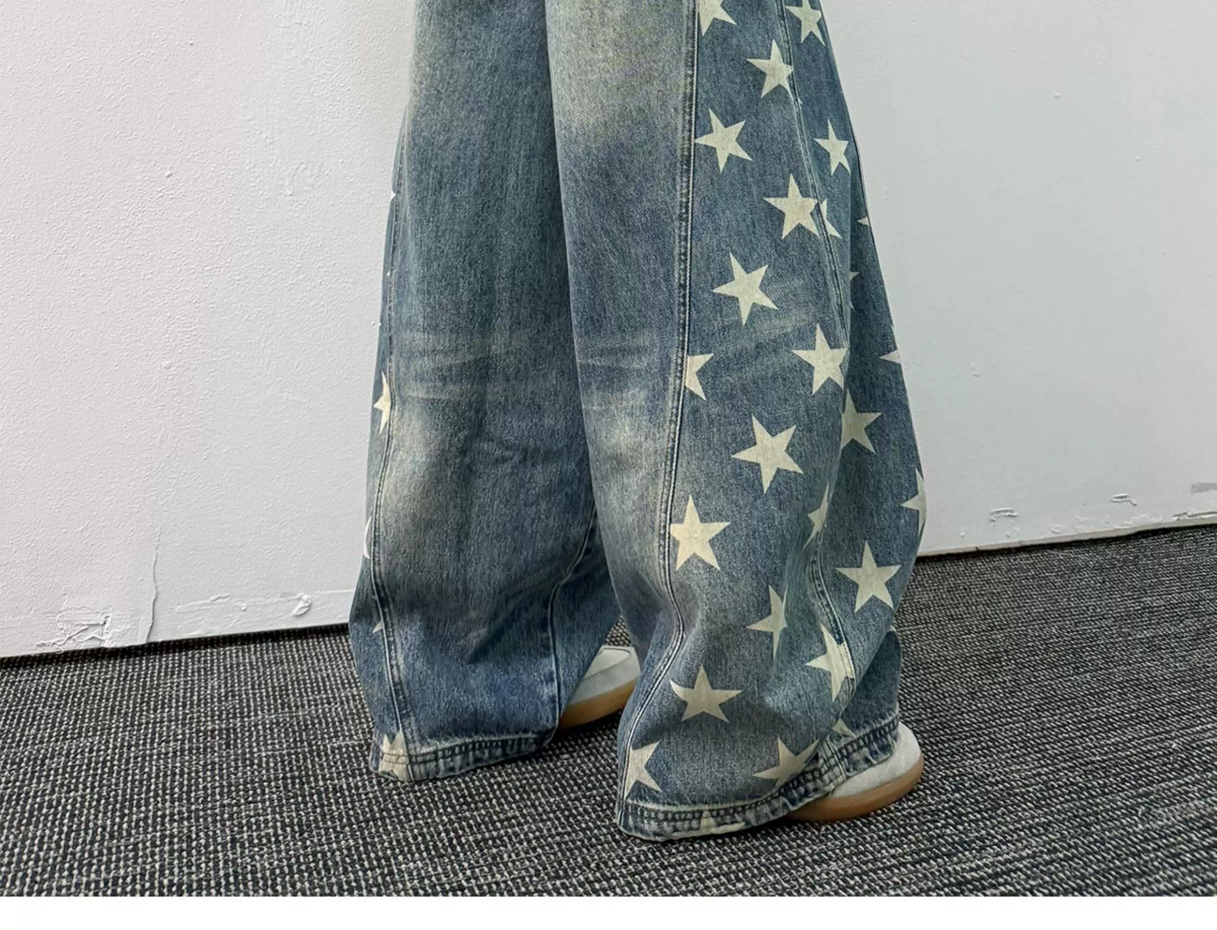 - Quần jean in hình ngôi sao dành cho nam, thương hiệu thời thượng mùa xuân thu, thiết kế phá cách, quần ống rộng kiểu kiếm, quần ống đứng phong cách retro Mỹ.