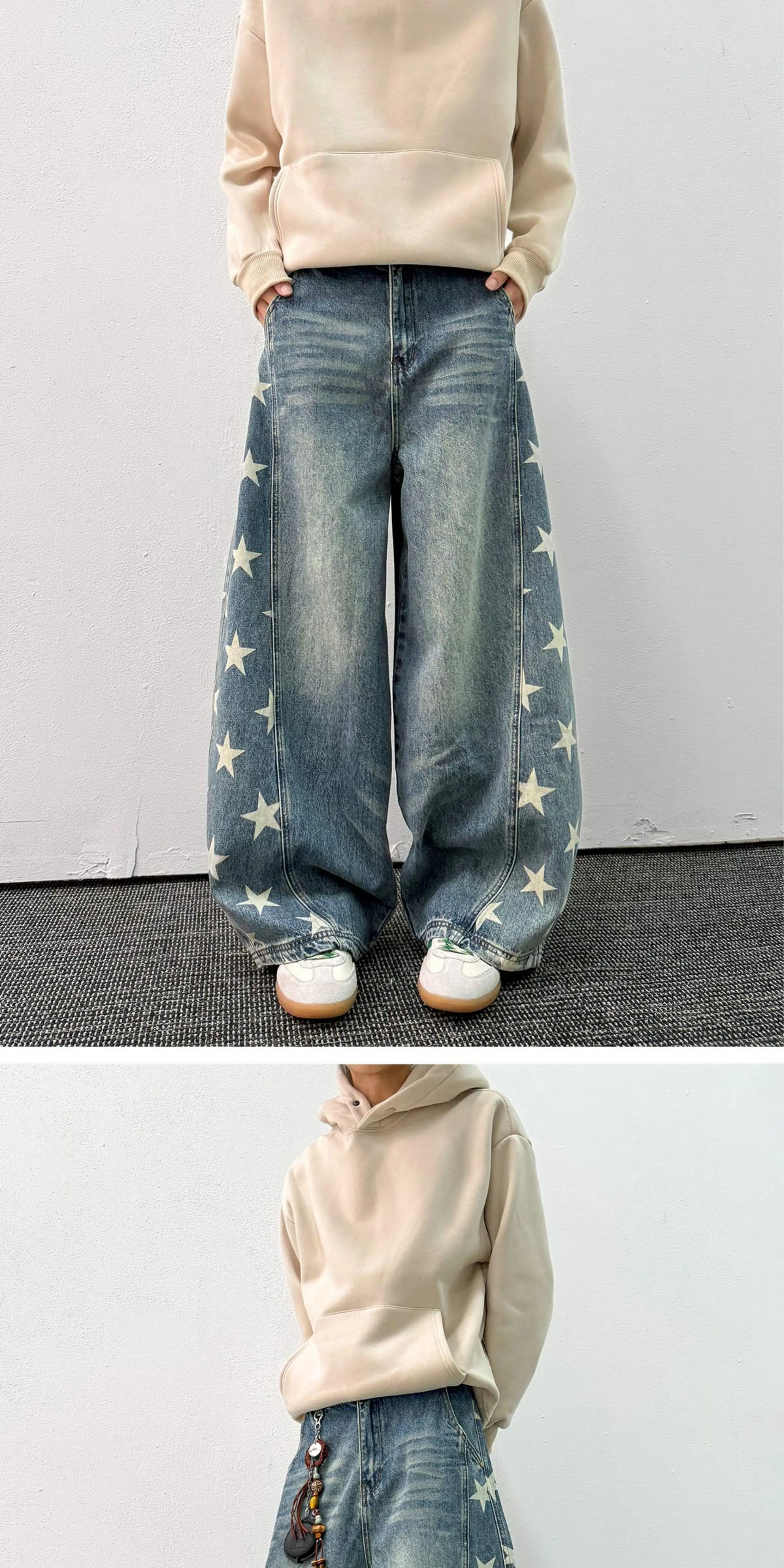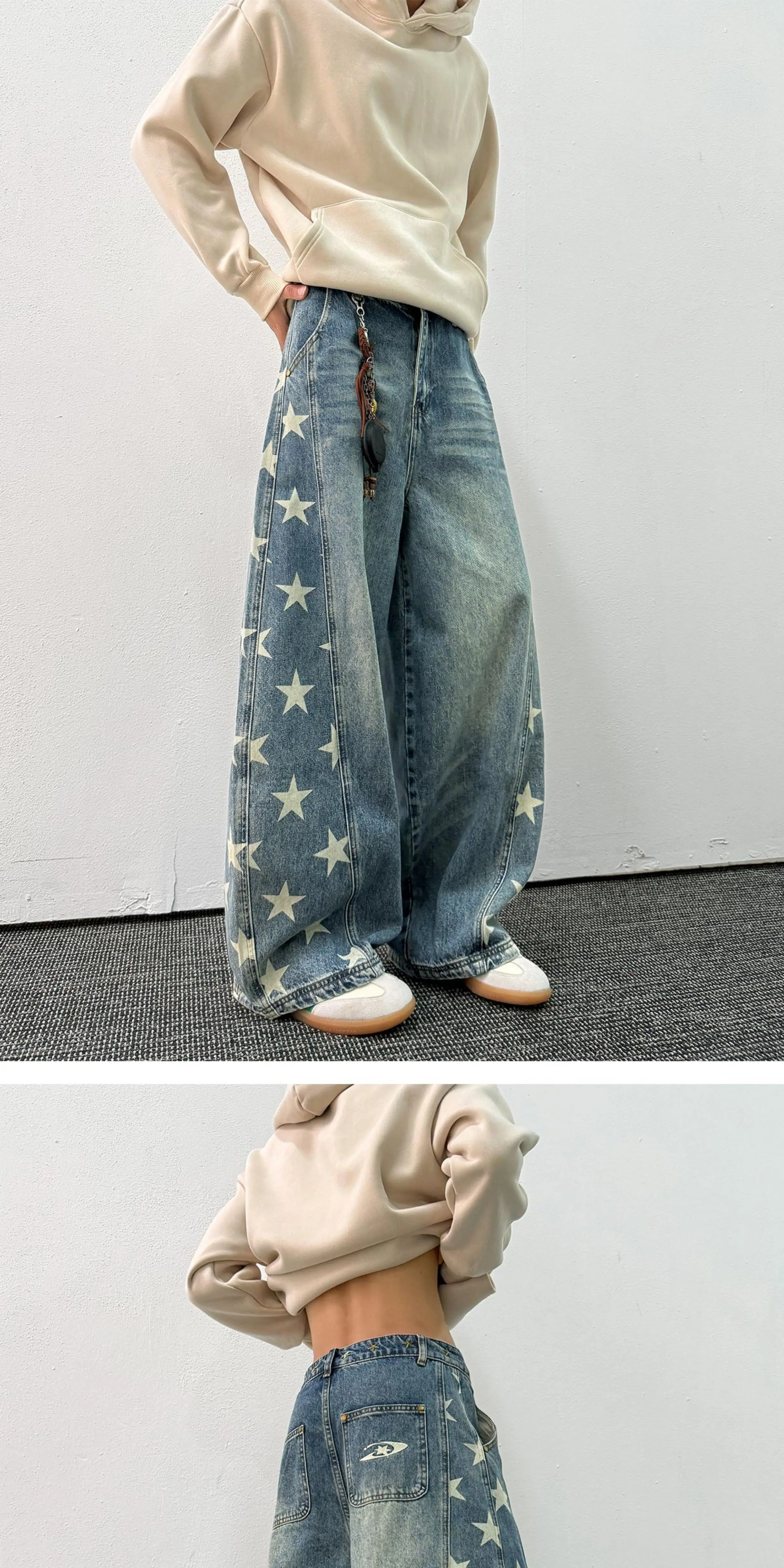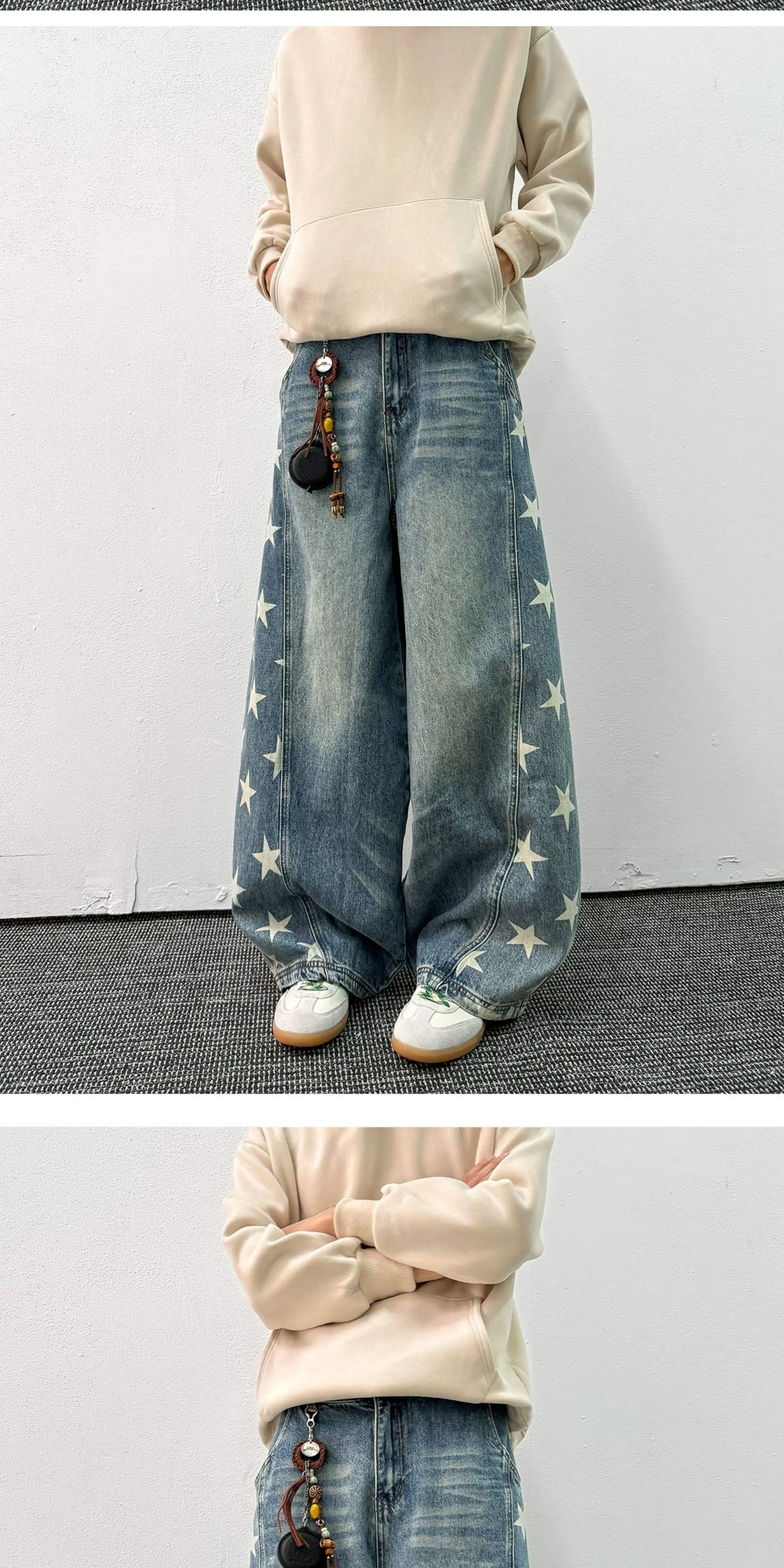 - Quần jean in hình ngôi sao dành cho nam, thương hiệu thời thượng mùa xuân thu, thiết kế phá cách, quần ống rộng kiểu kiếm, quần ống đứng phong cách retro Mỹ.