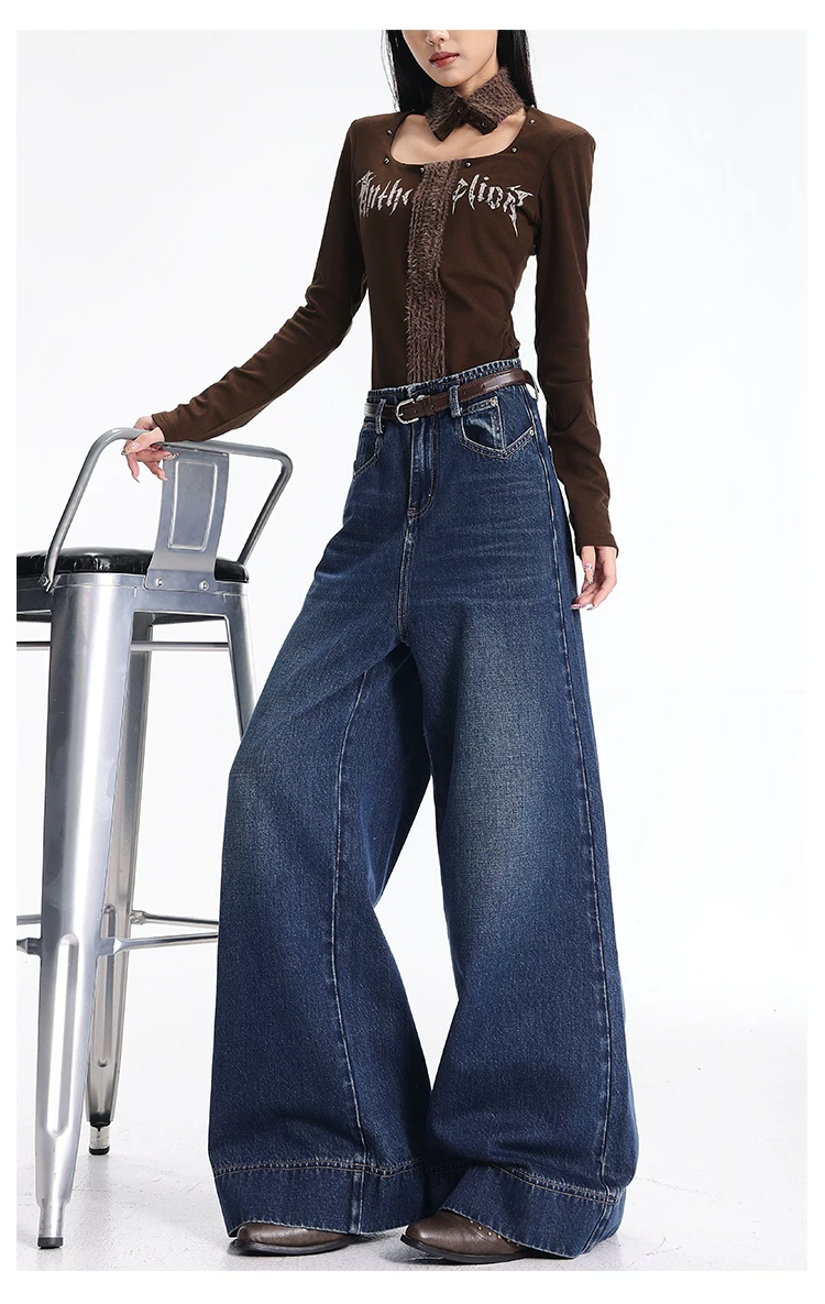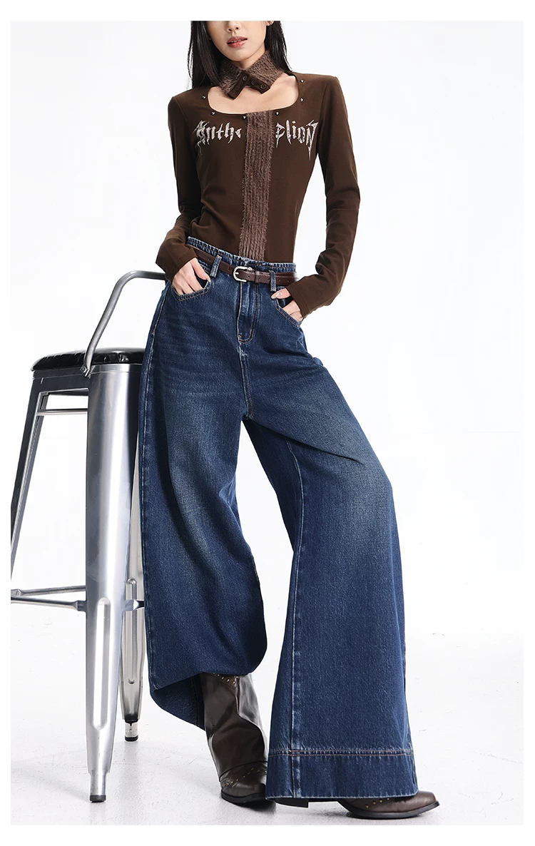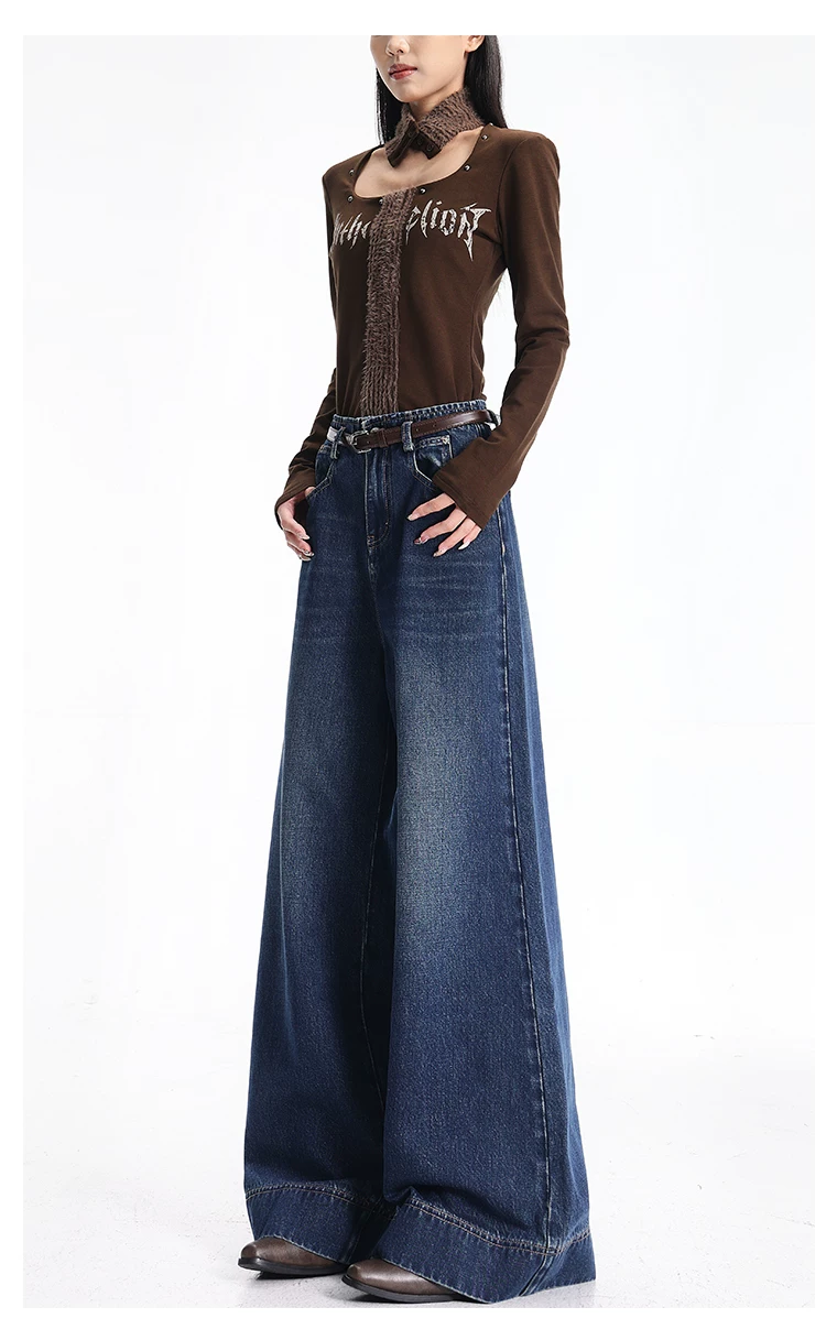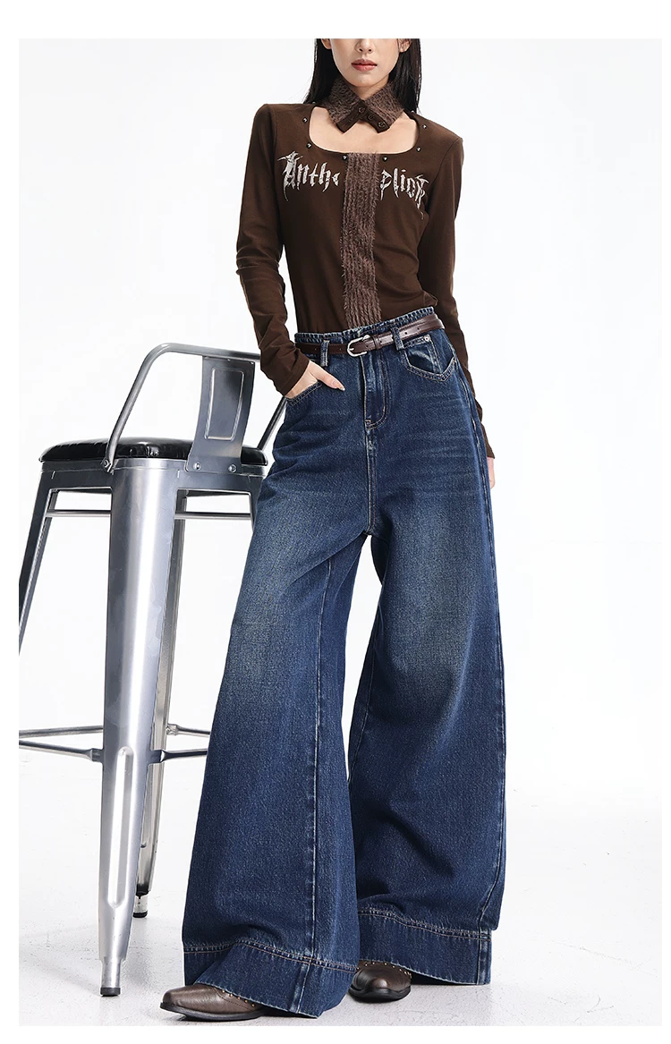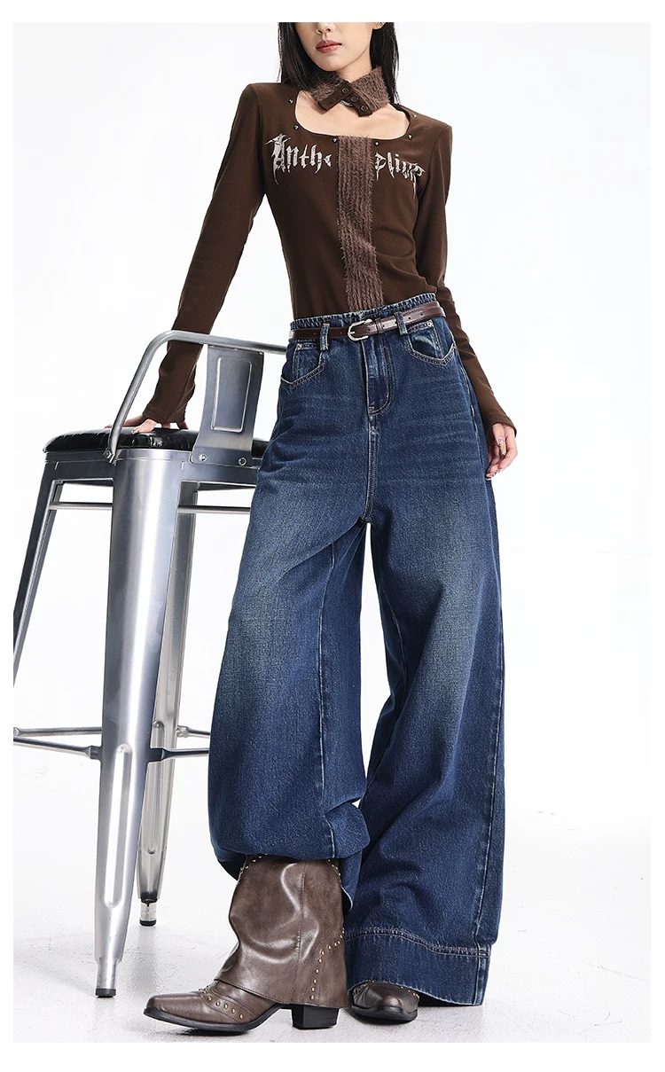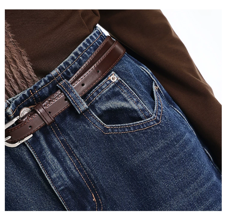 - Quần jean kiểu Mỹ cổ điển có lót lông cừu mùa thu đông của KEN STUDIO dành cho nữ, quần ống rộng lưng cao, dáng rộng, giúp thon gọn.