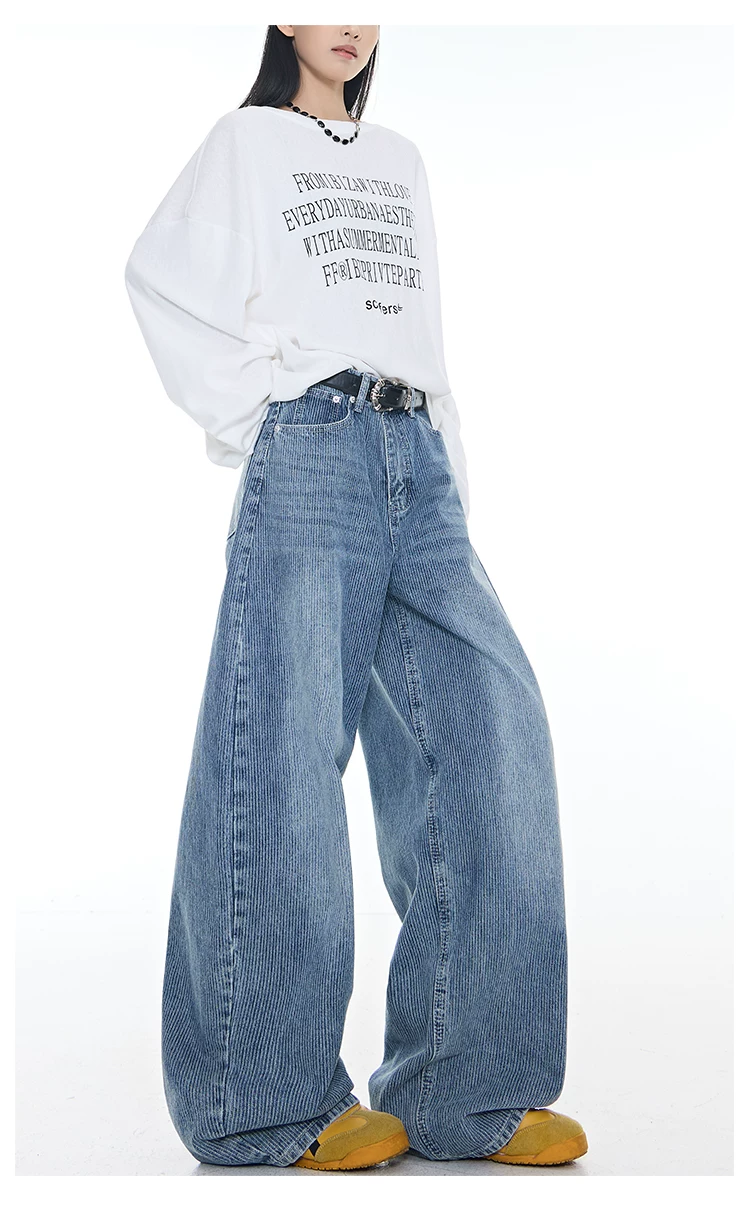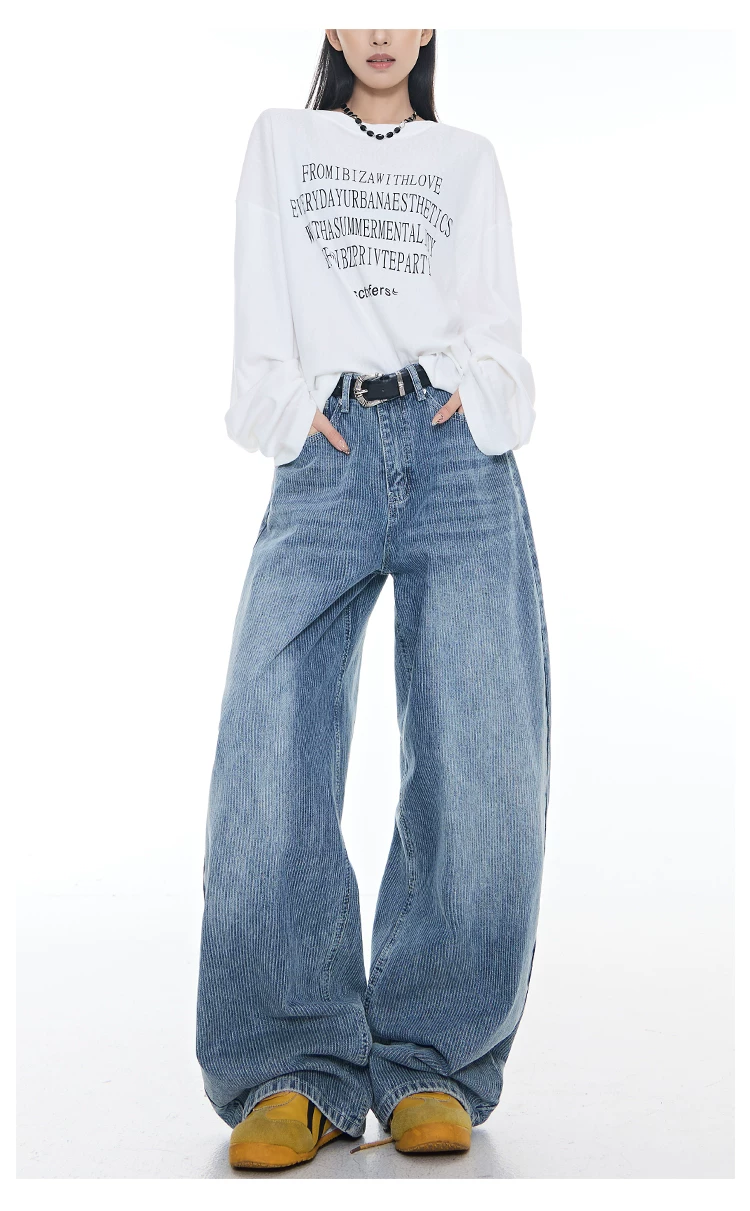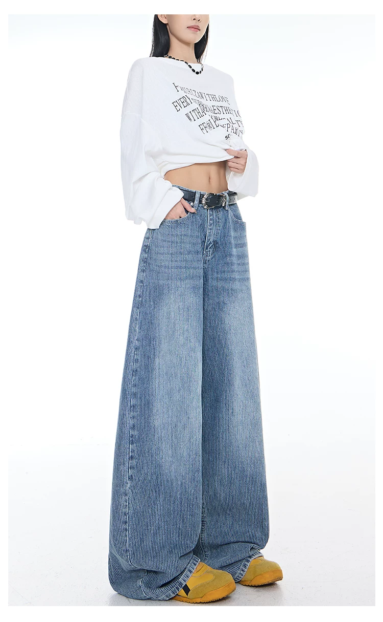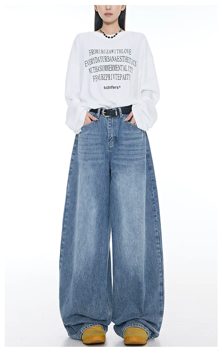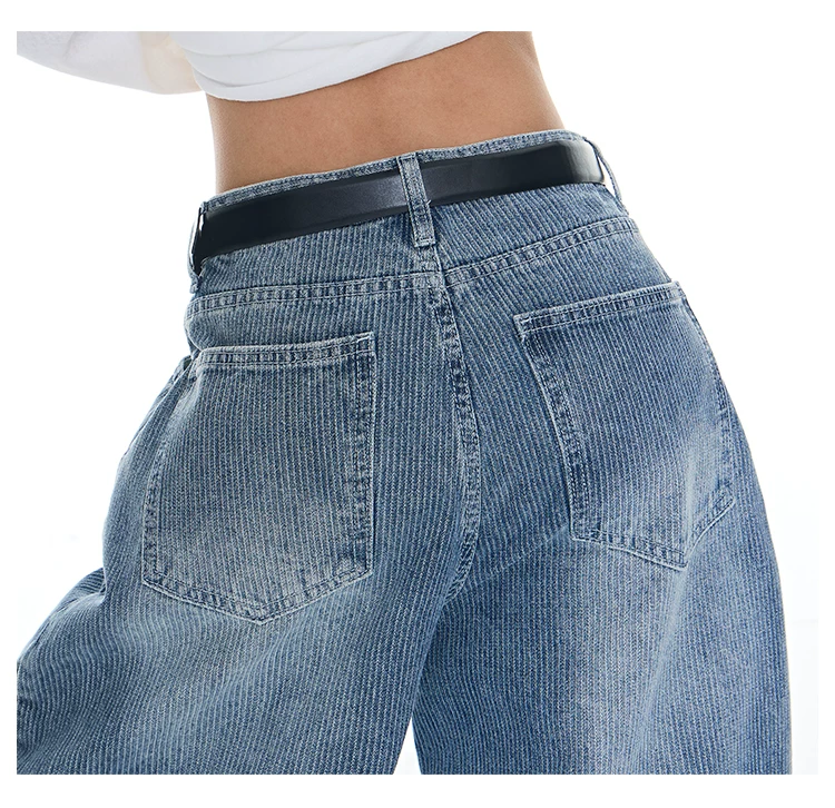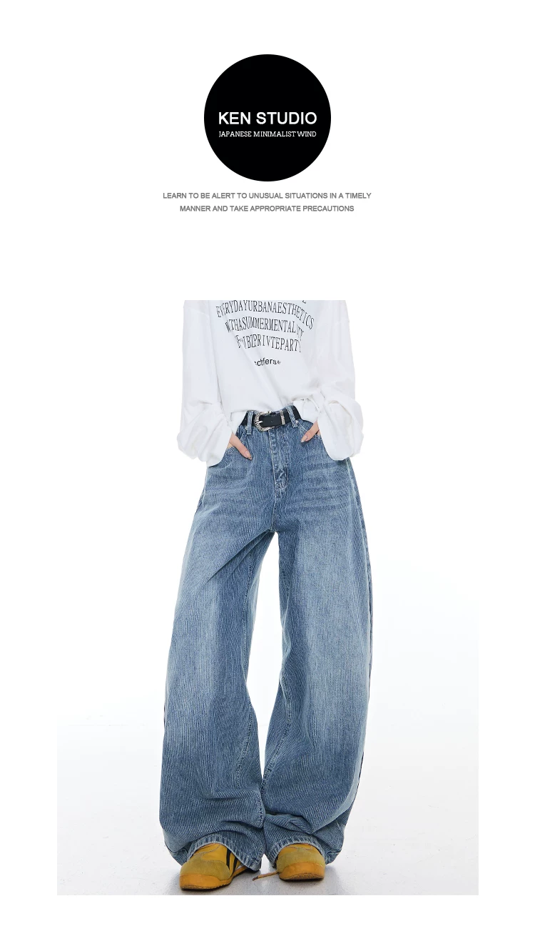 - Quần jean kiểu Mỹ cổ điển có lót lông cừu mùa thu đông của KEN STUDIO dành cho nữ, quần ống rộng lưng cao dáng rộng.
