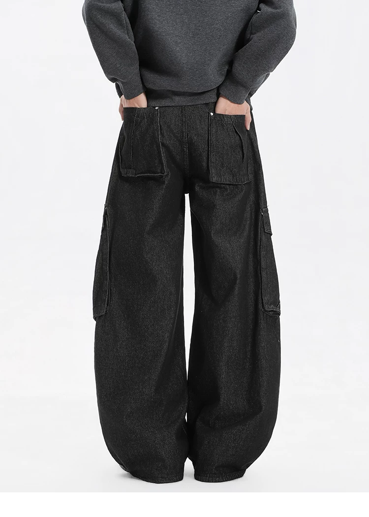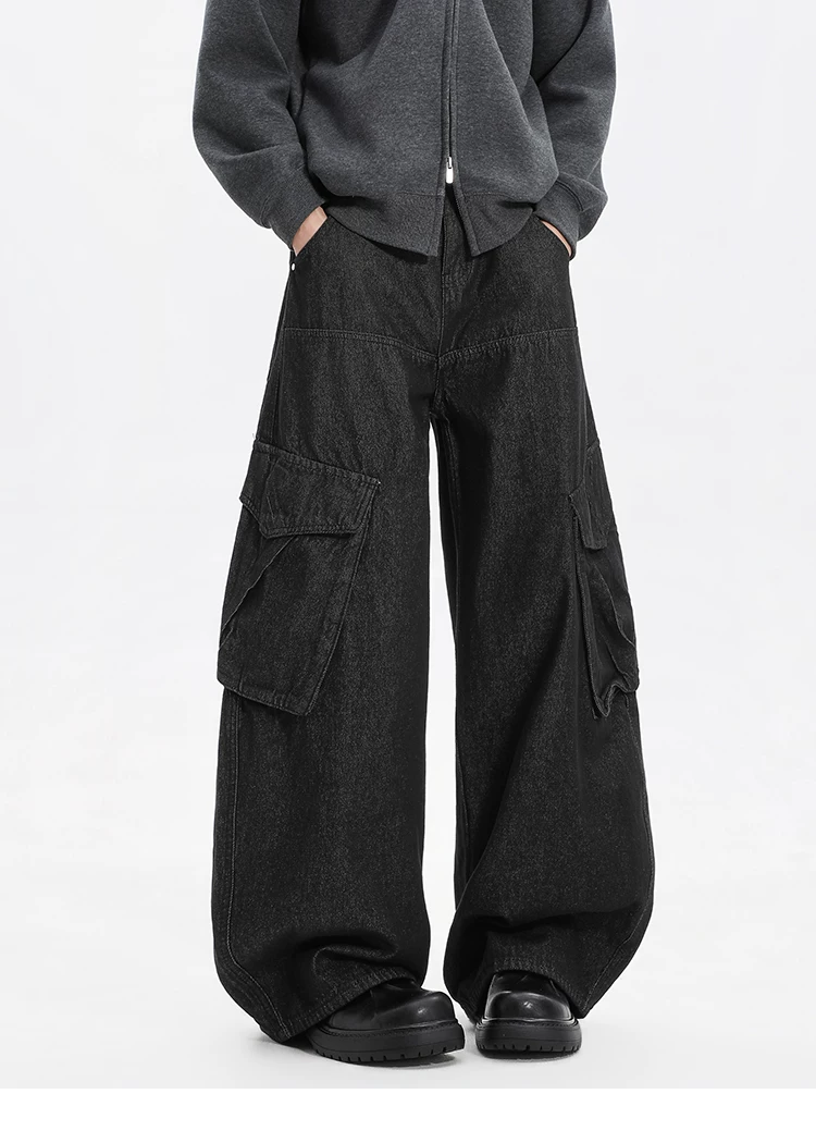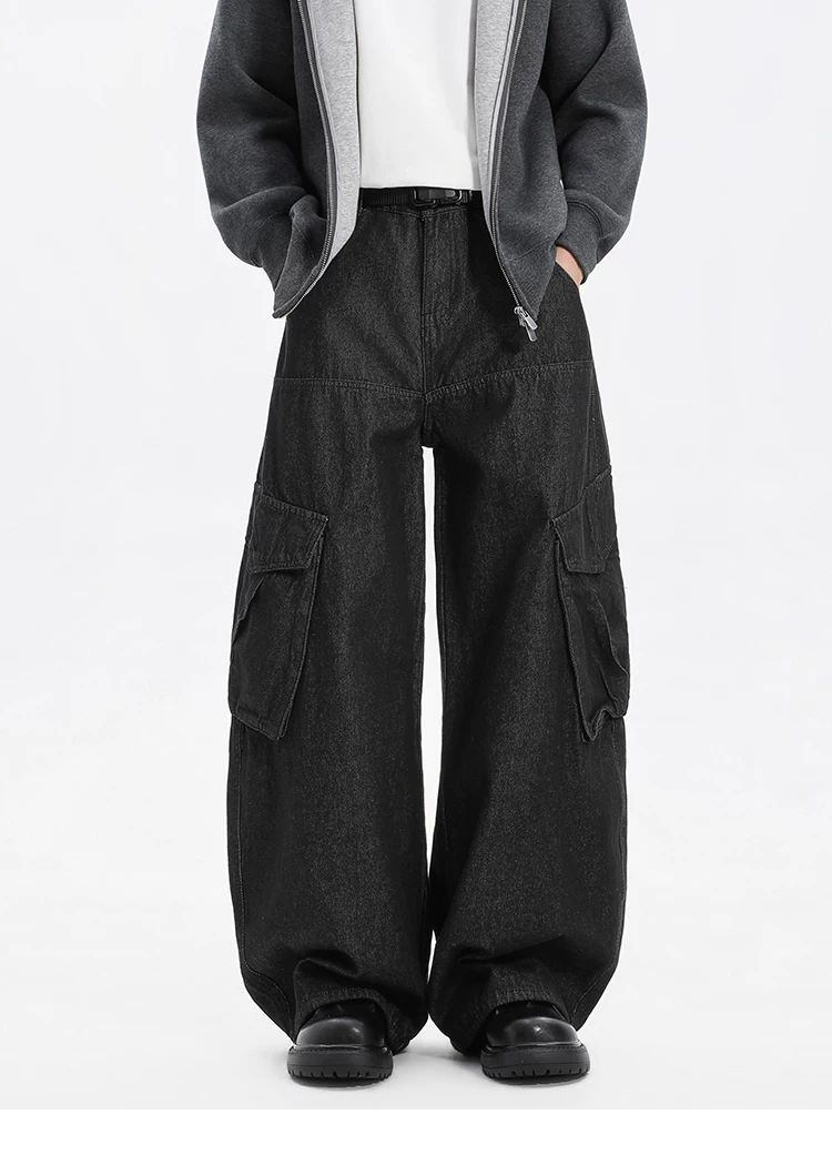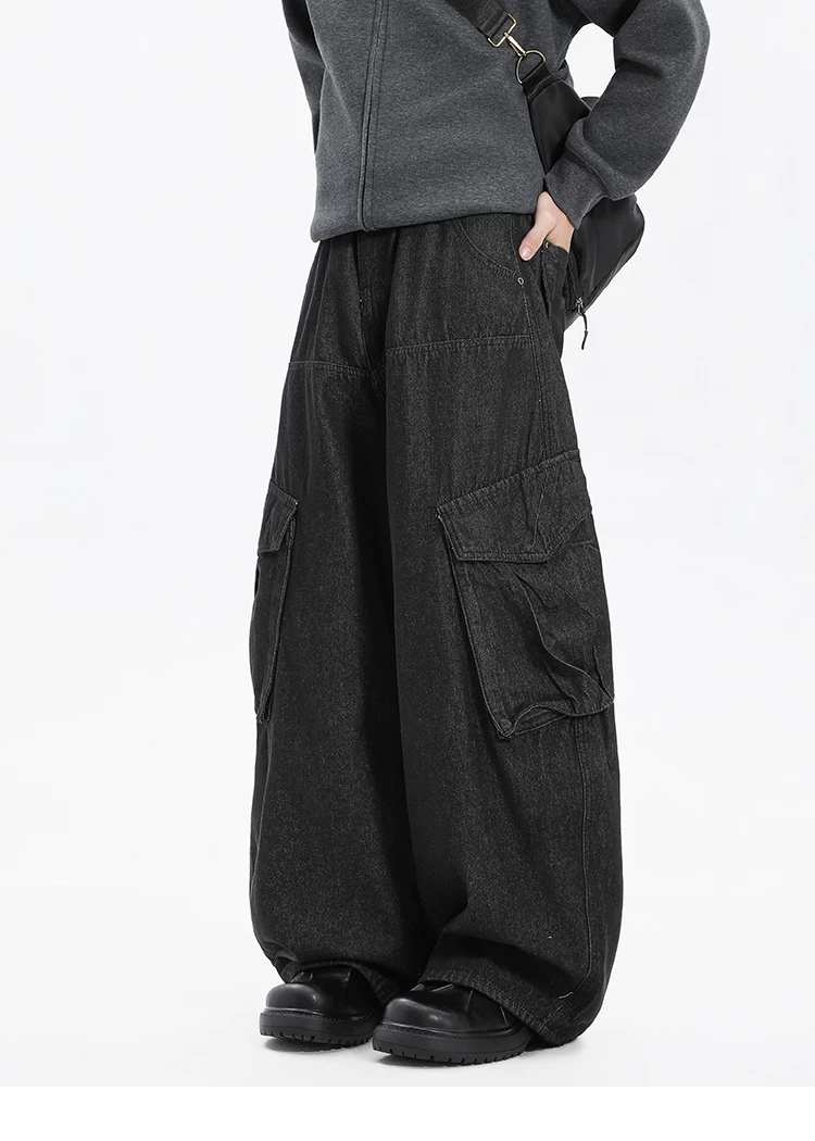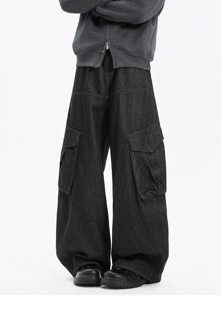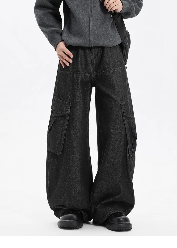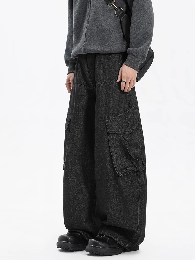 - Quần jean kiểu Mỹ dành cho nam, quần ống rộng thời trang xuân thu nhiều túi, quần ống đứng dài chạm sàn.