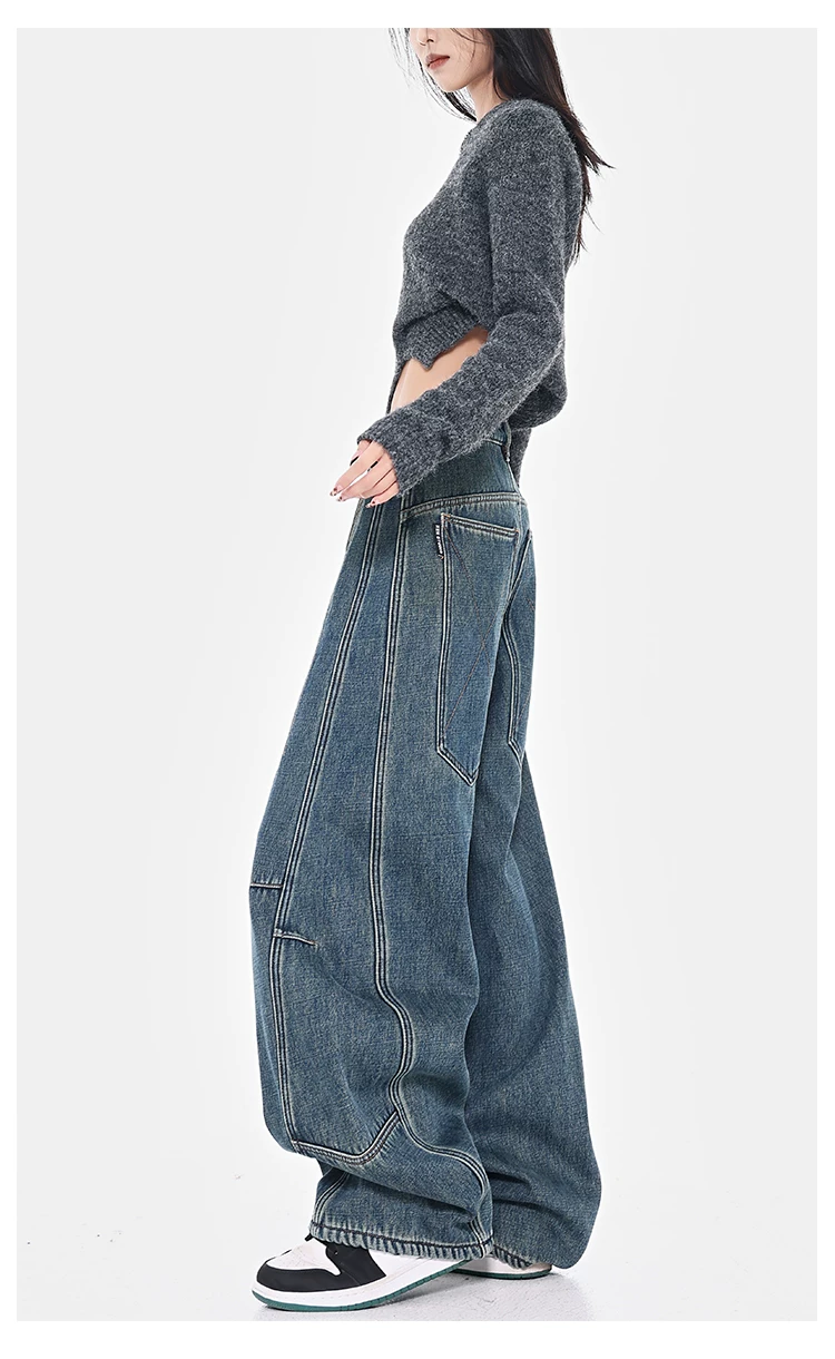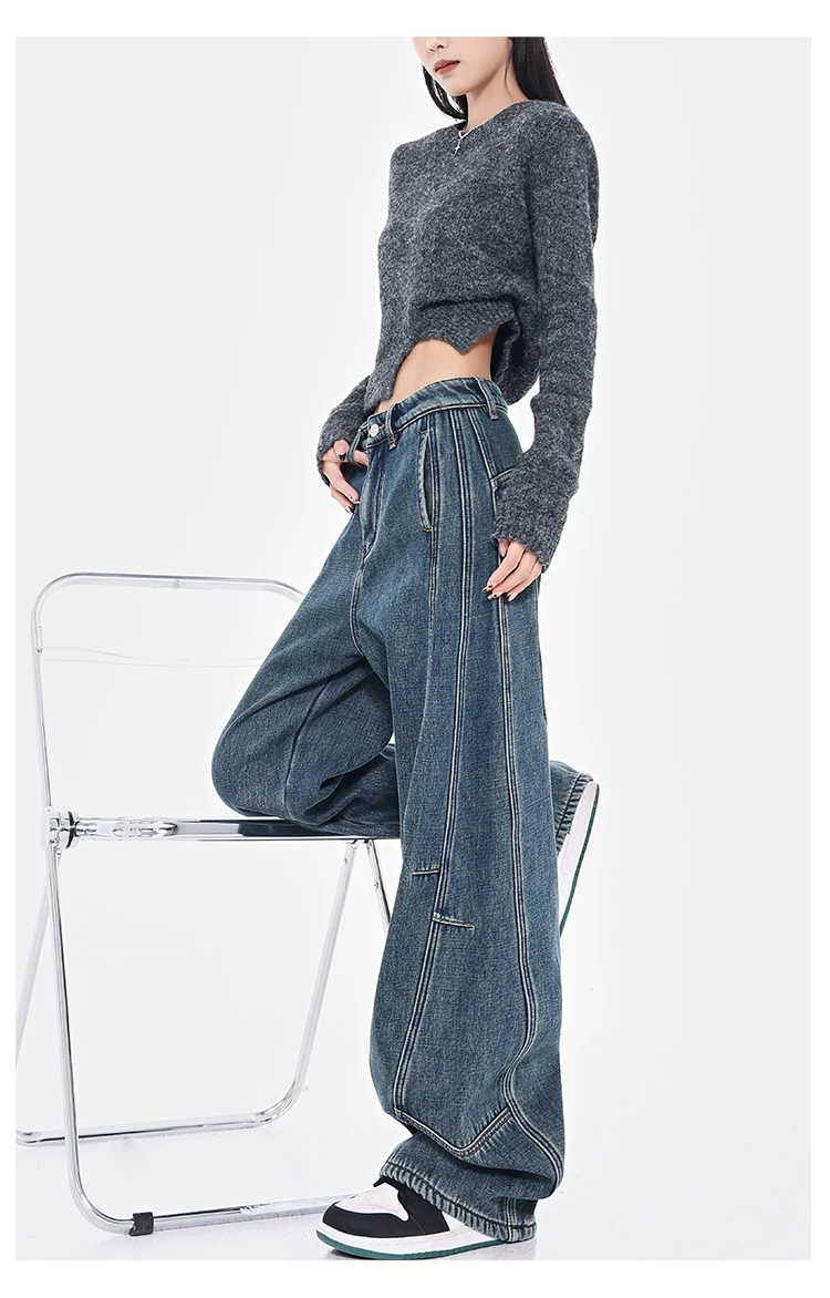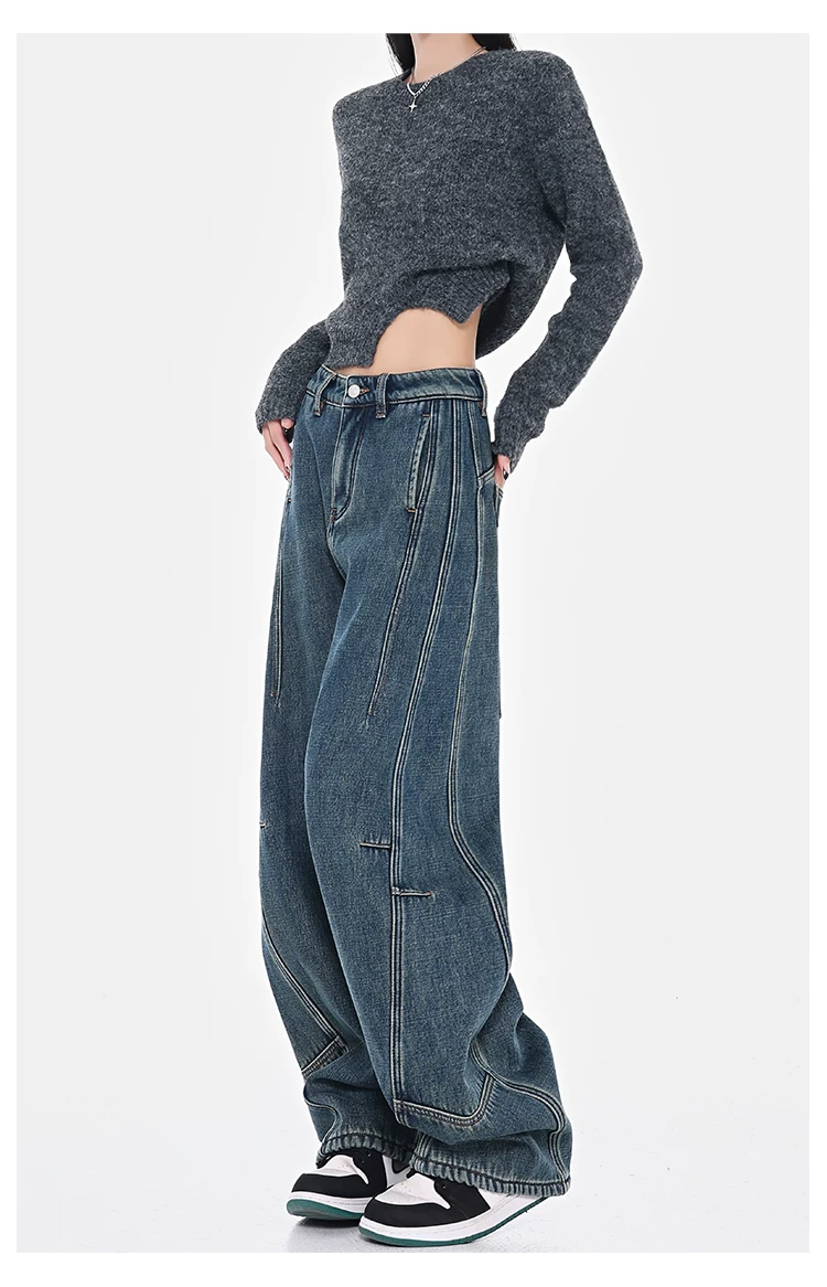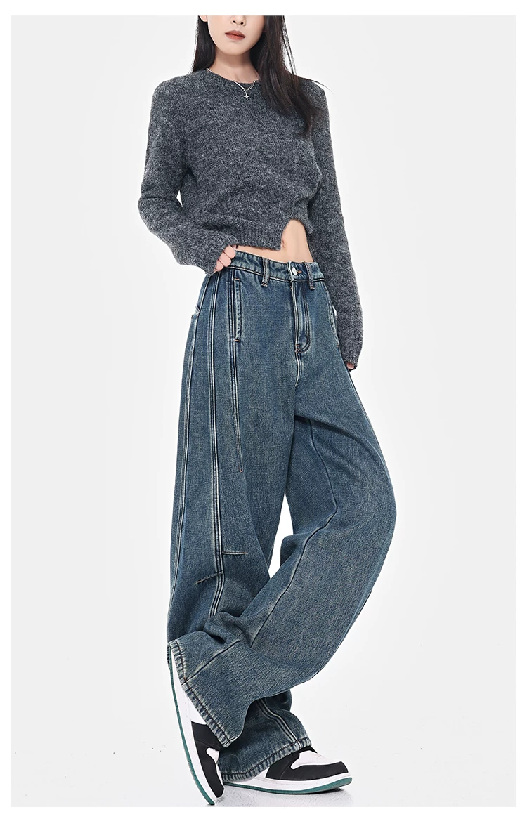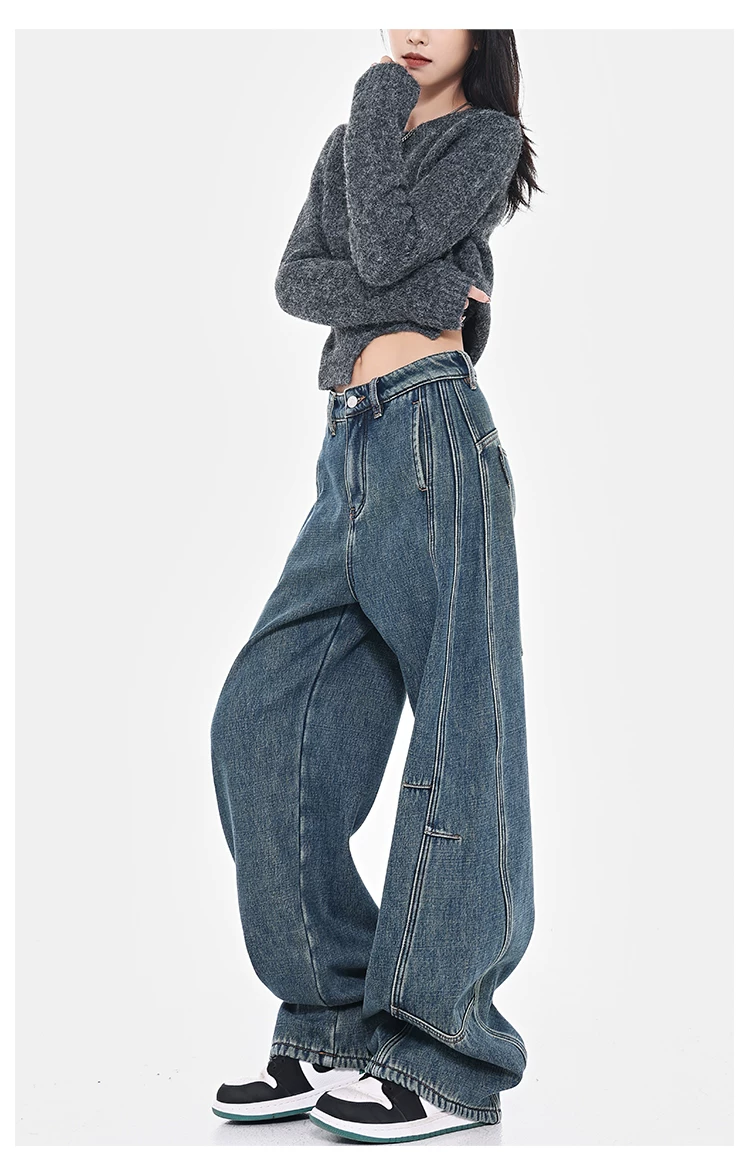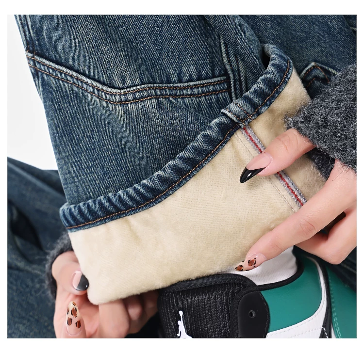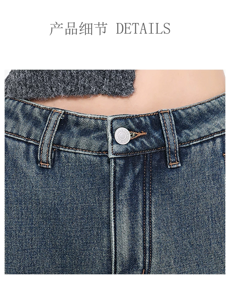 - Quần jean lót lông cừu mùa thu đông của KEN STUDIO dành cho phụ nữ cao, quần ống rộng dáng rộng cực dài, quần chuối.