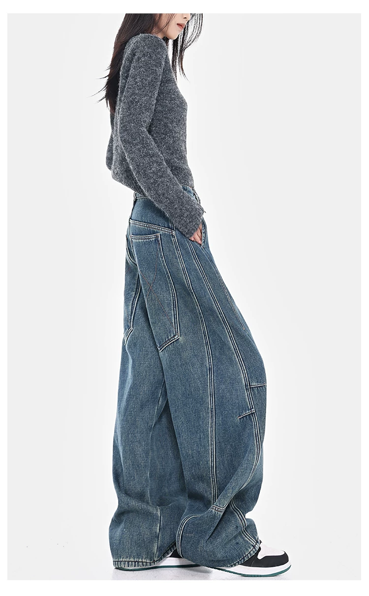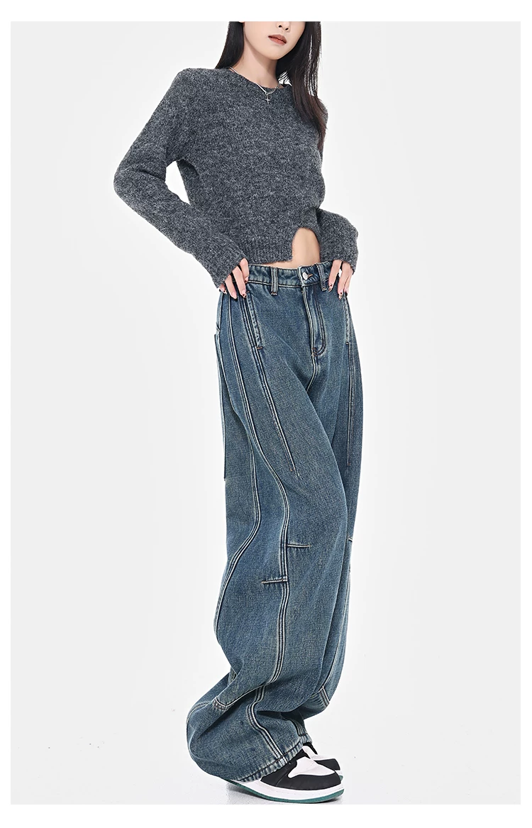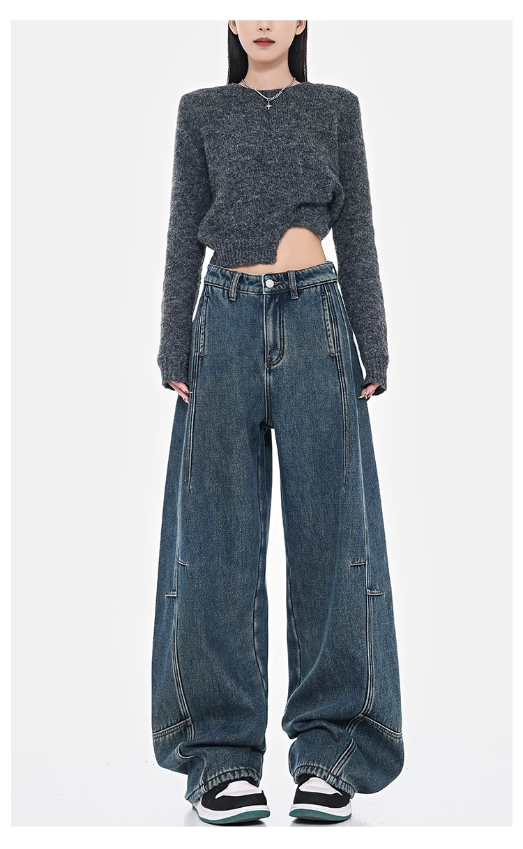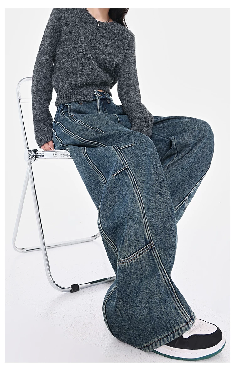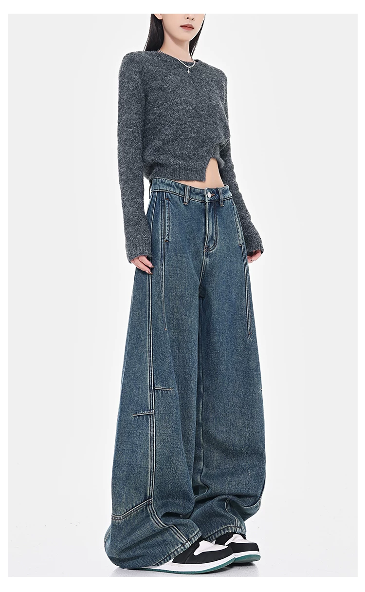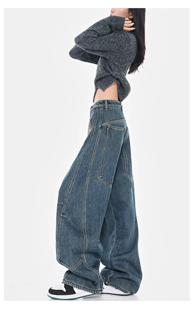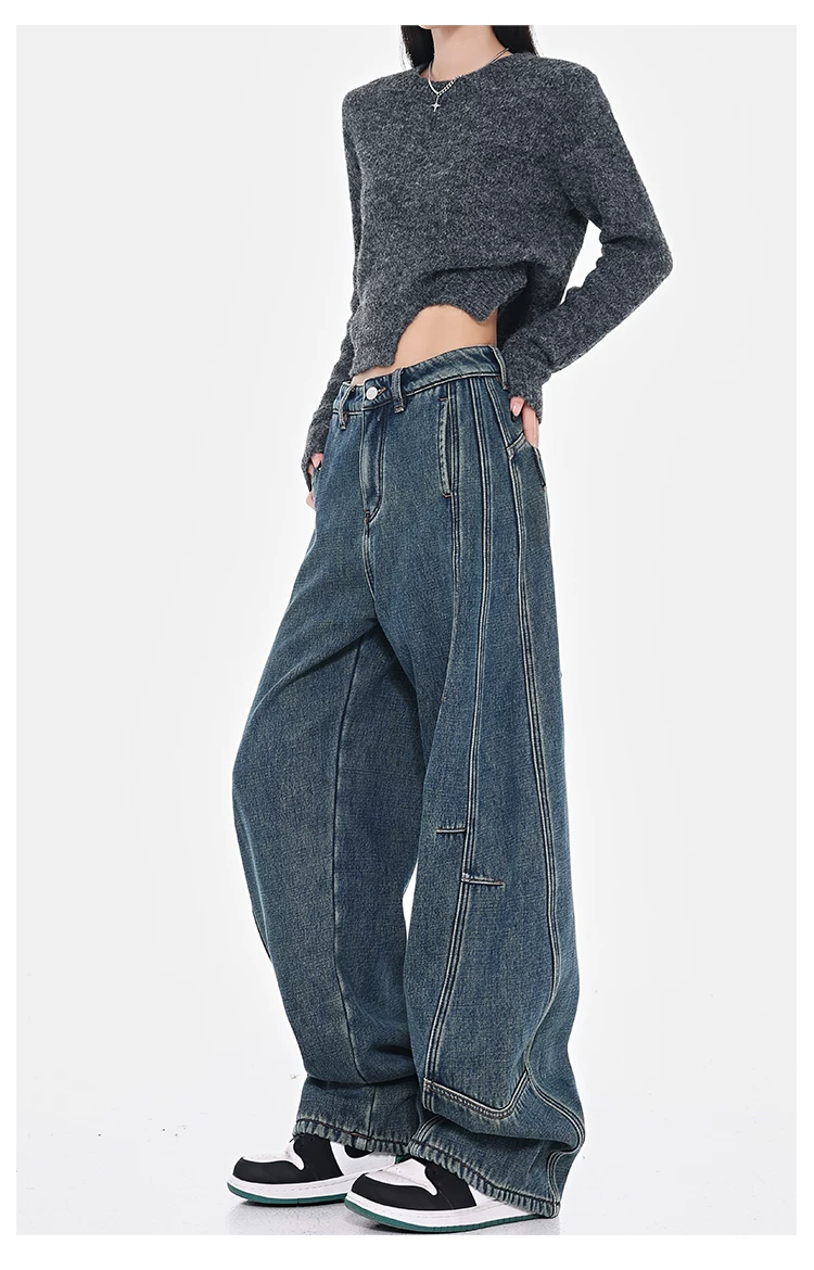- Quần jean lót lông cừu mùa thu đông của KEN STUDIO dành cho phụ nữ cao, quần ống rộng dáng rộng cực dài, quần chuối.