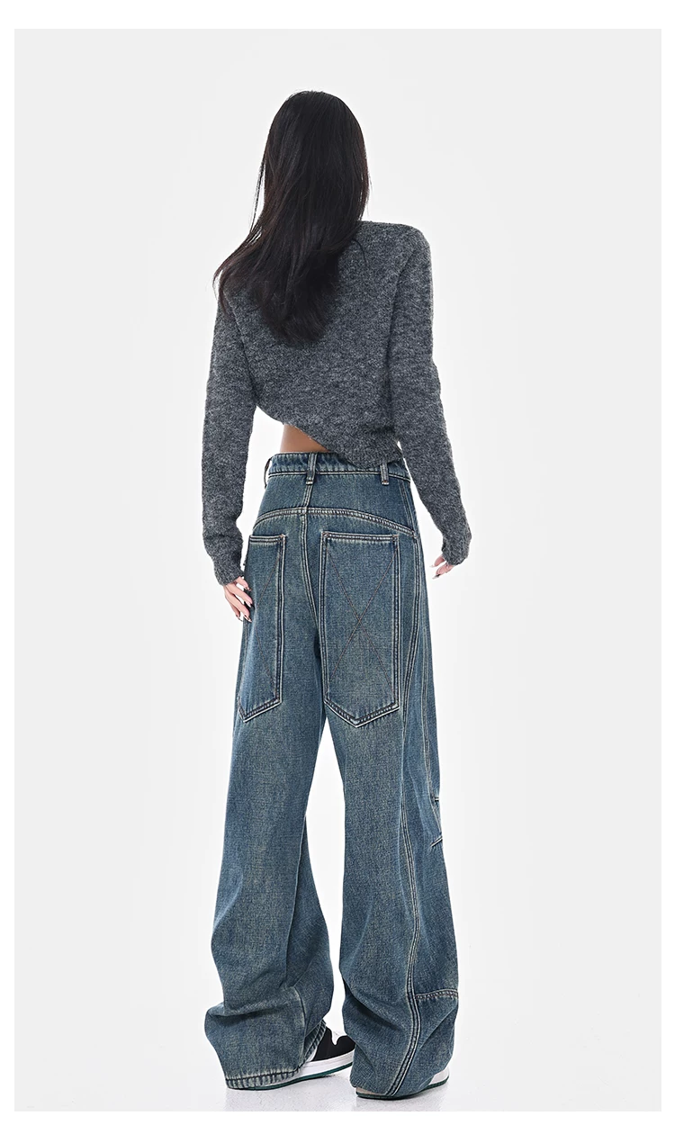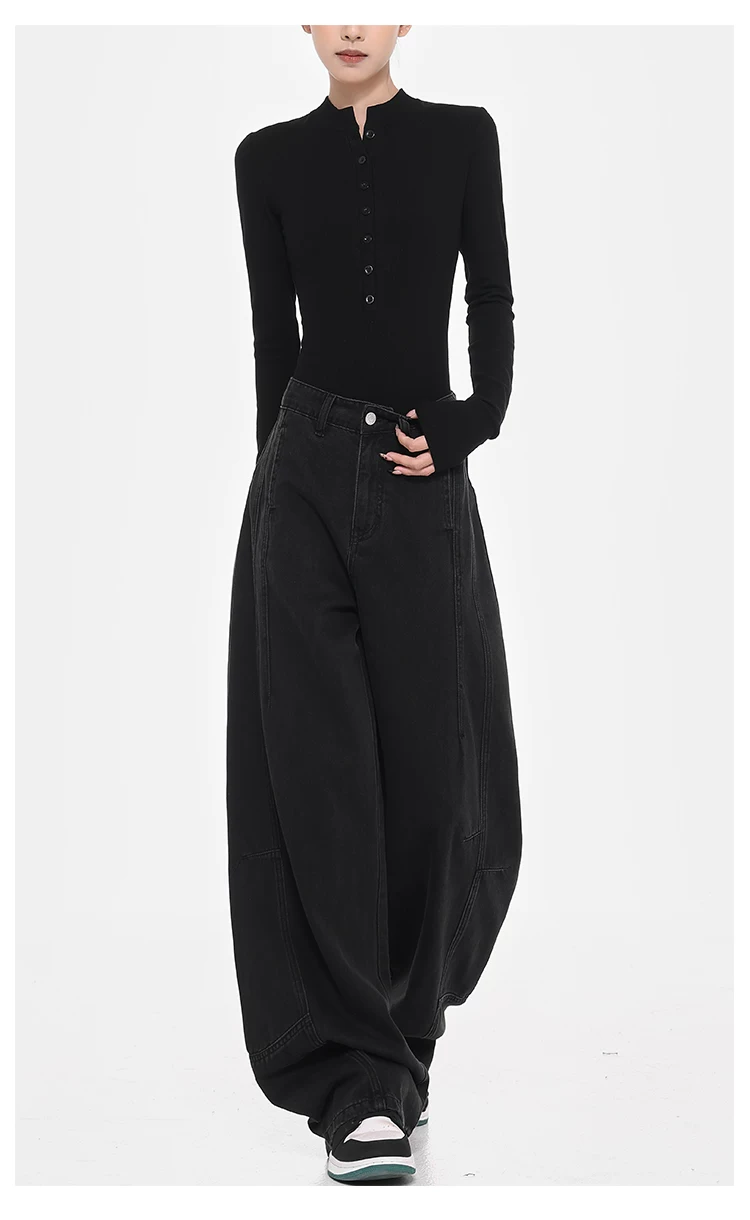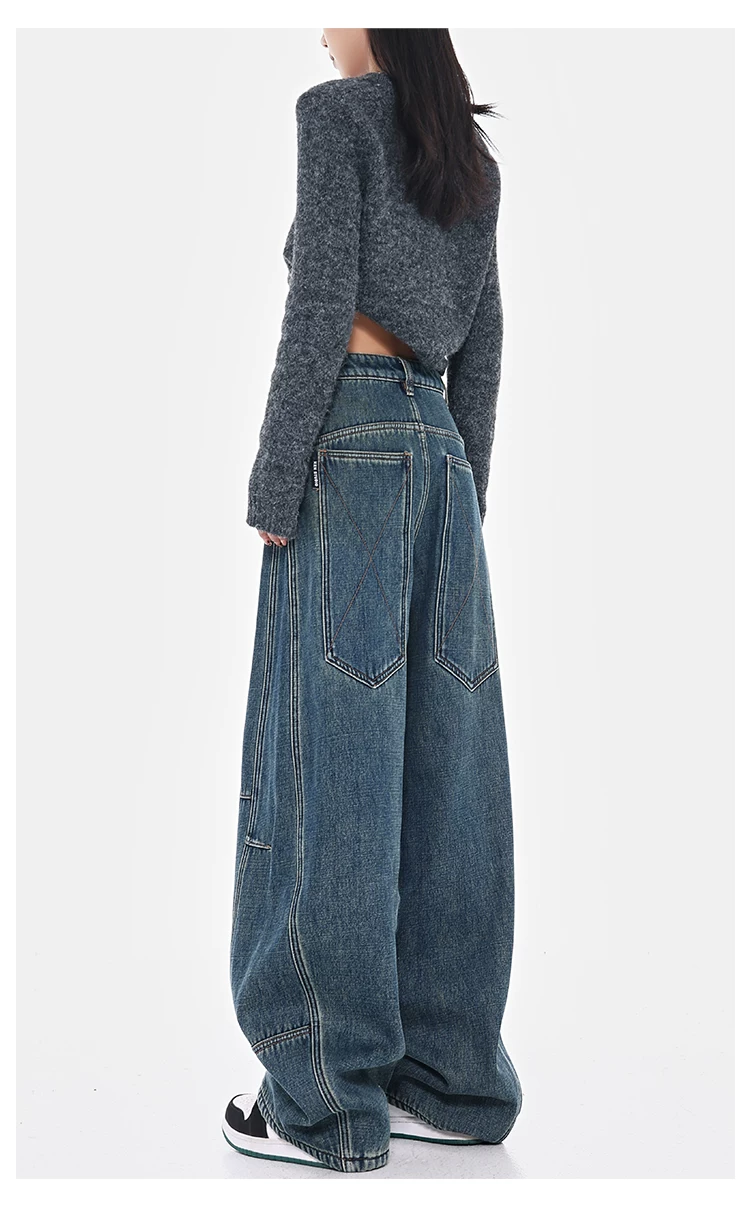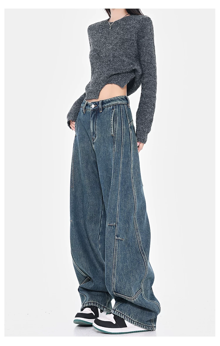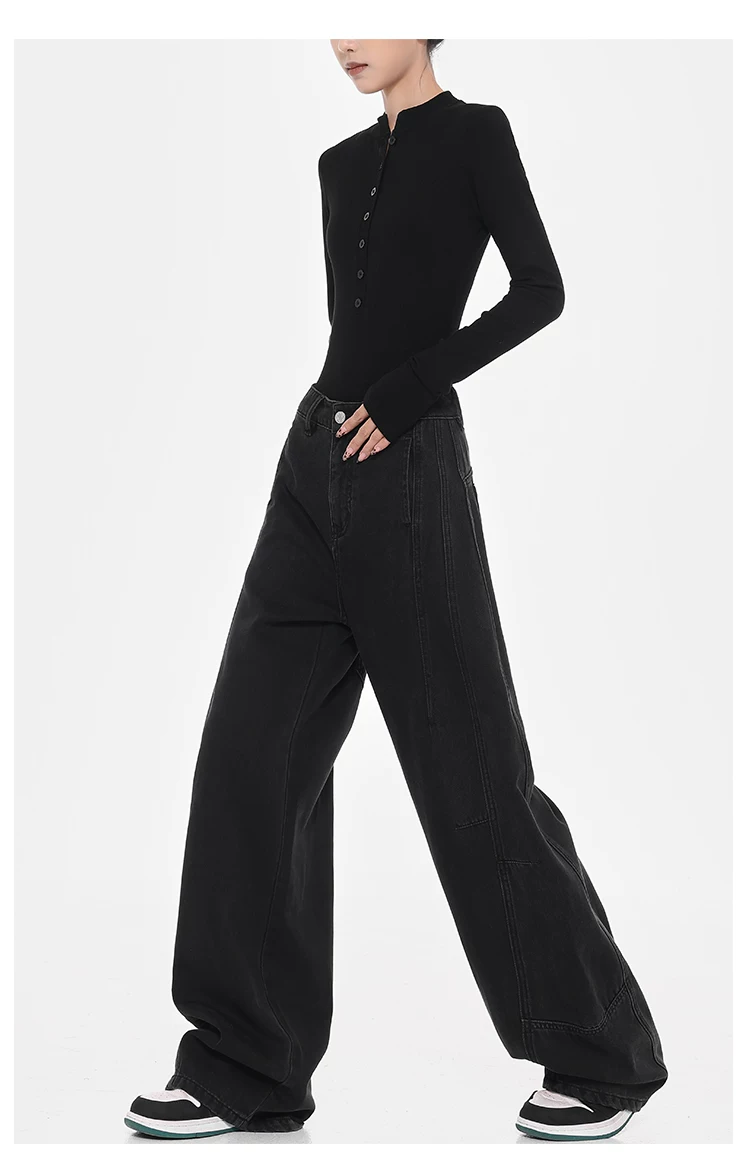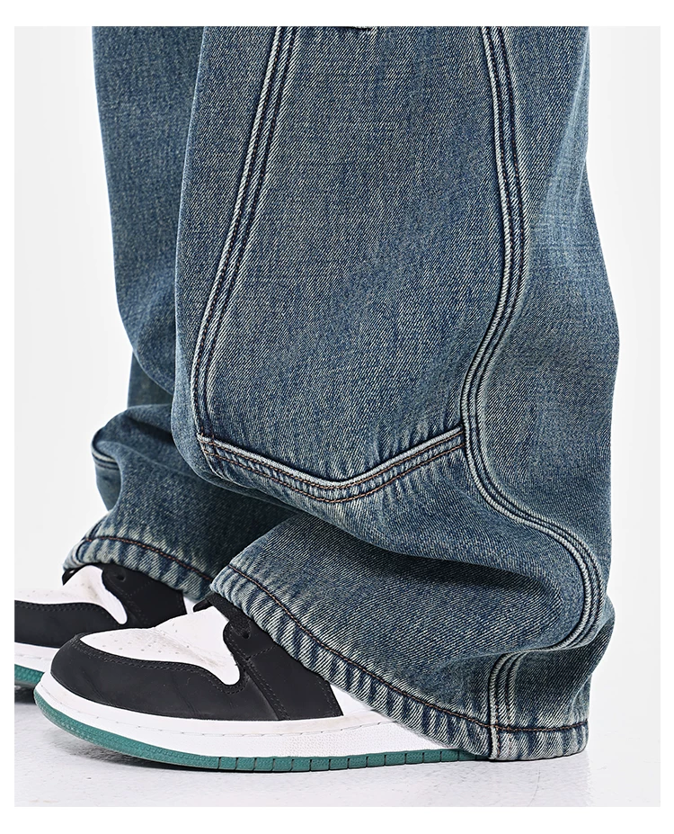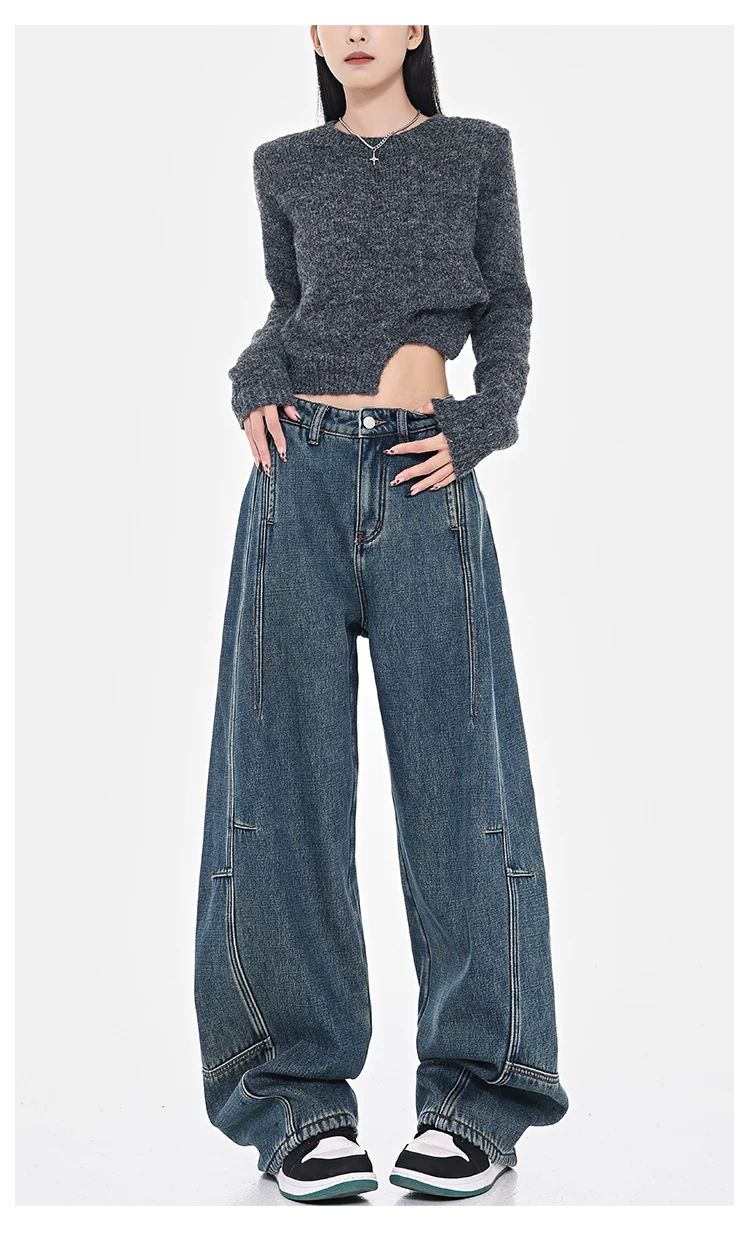 - Quần jean lót lông cừu mùa thu đông của KEN STUDIO dành cho phụ nữ cao, quần ống rộng dáng rộng cực dài, quần chuối.