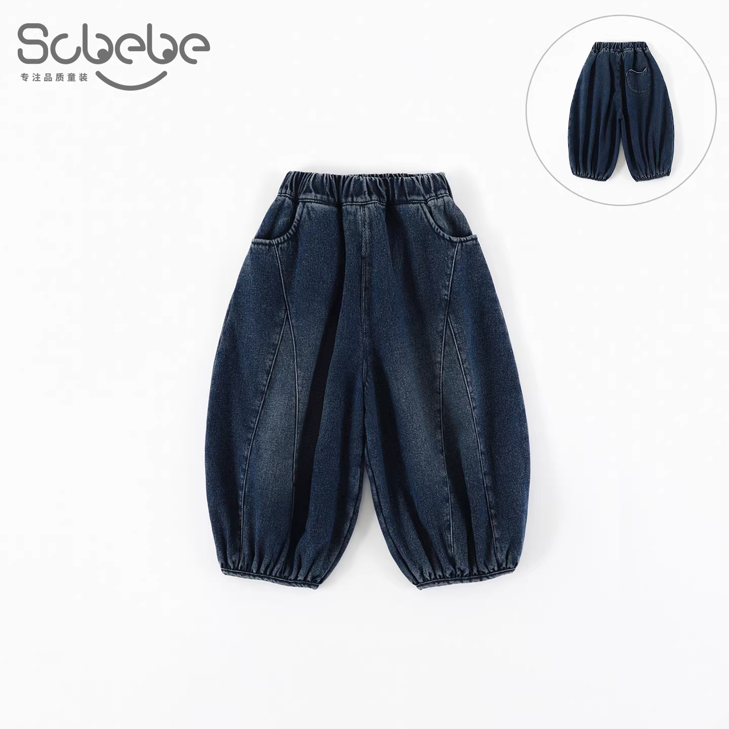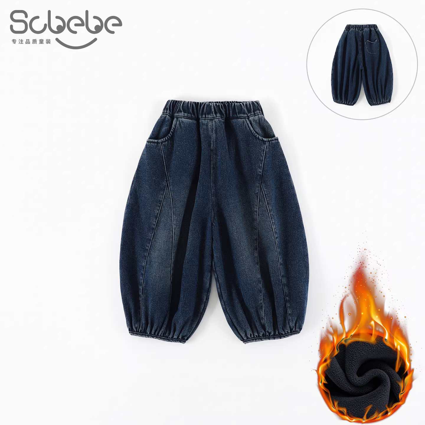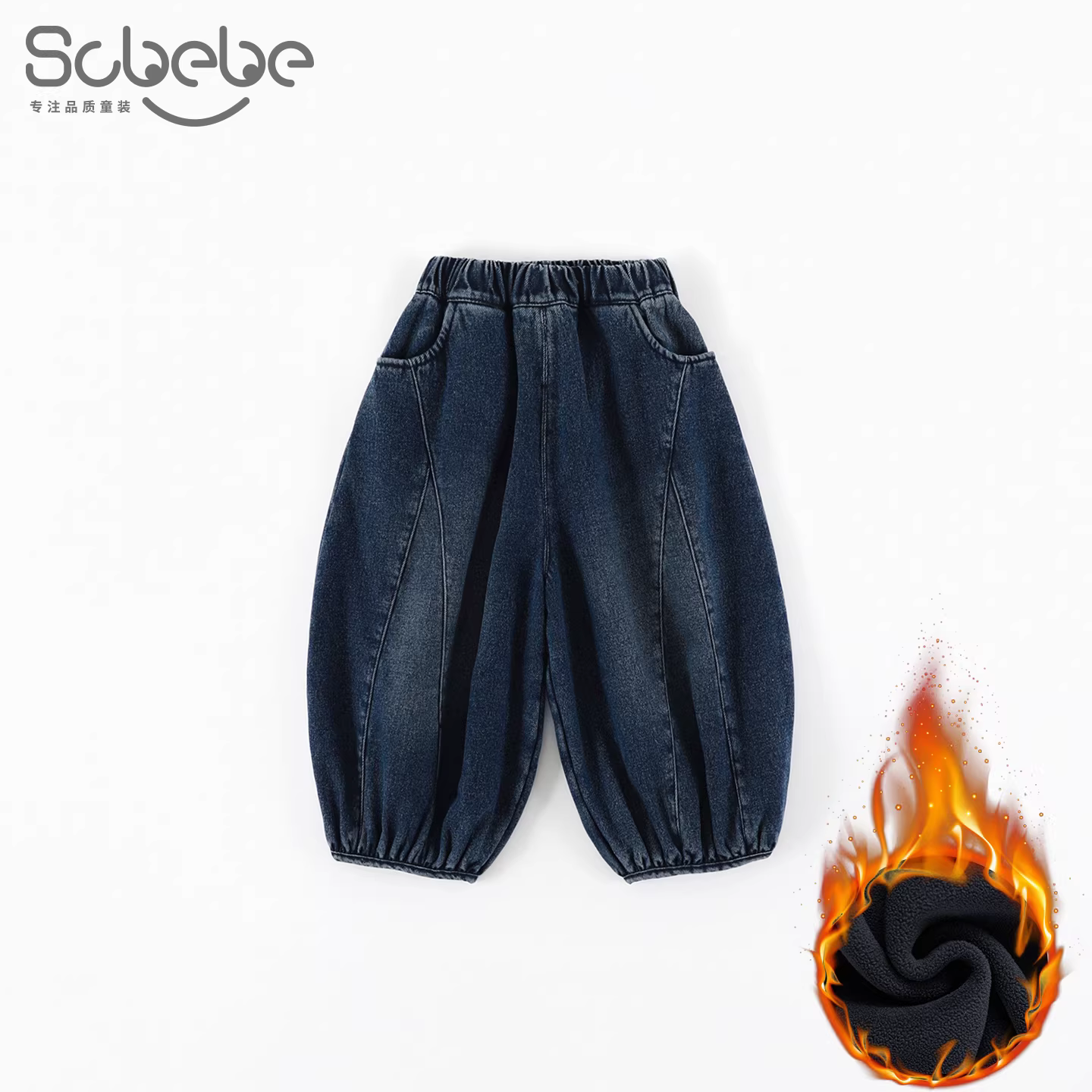 - Quần jean lót lông cừu trẻ em mùa đông 2025 kiểu mới ấm áp đa năng quần dài thường ngày bé C-K378
