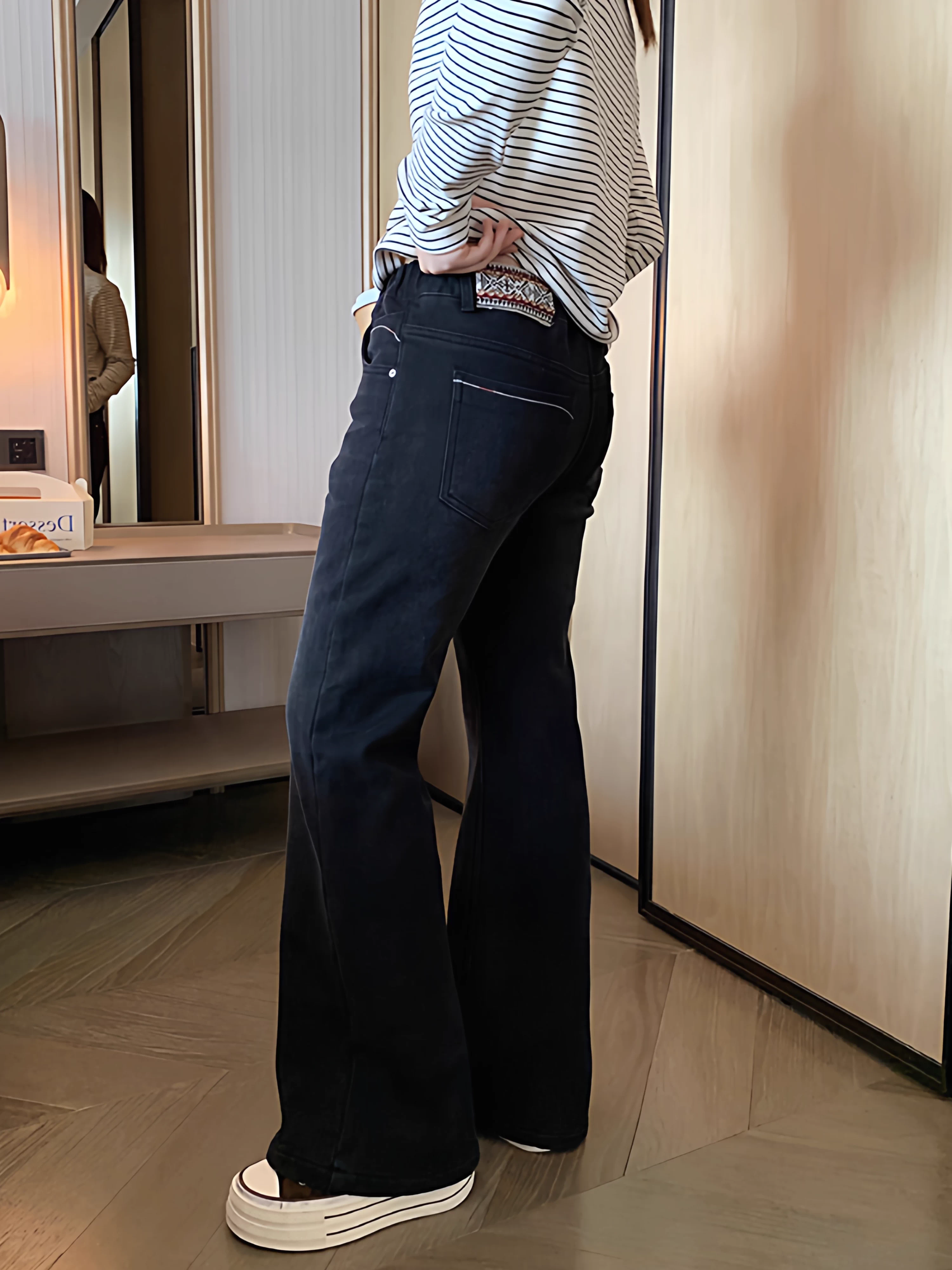 - Quần jean lót lông phong cách retro dành cho bé gái 25 mùa đông kiểu dáng mới Quần ống loe lót lông dành cho trẻ lớn hơn Quần ống loe phong cách Hàn Quốc