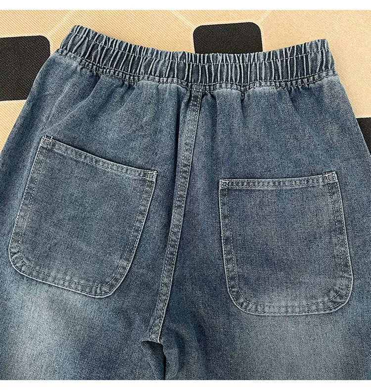 - Quần jean lưng thun thương hiệu thời thượng dành cho nam, quần ống rộng dáng suông mùa xuân, quần đa năng phong cách Mỹ.