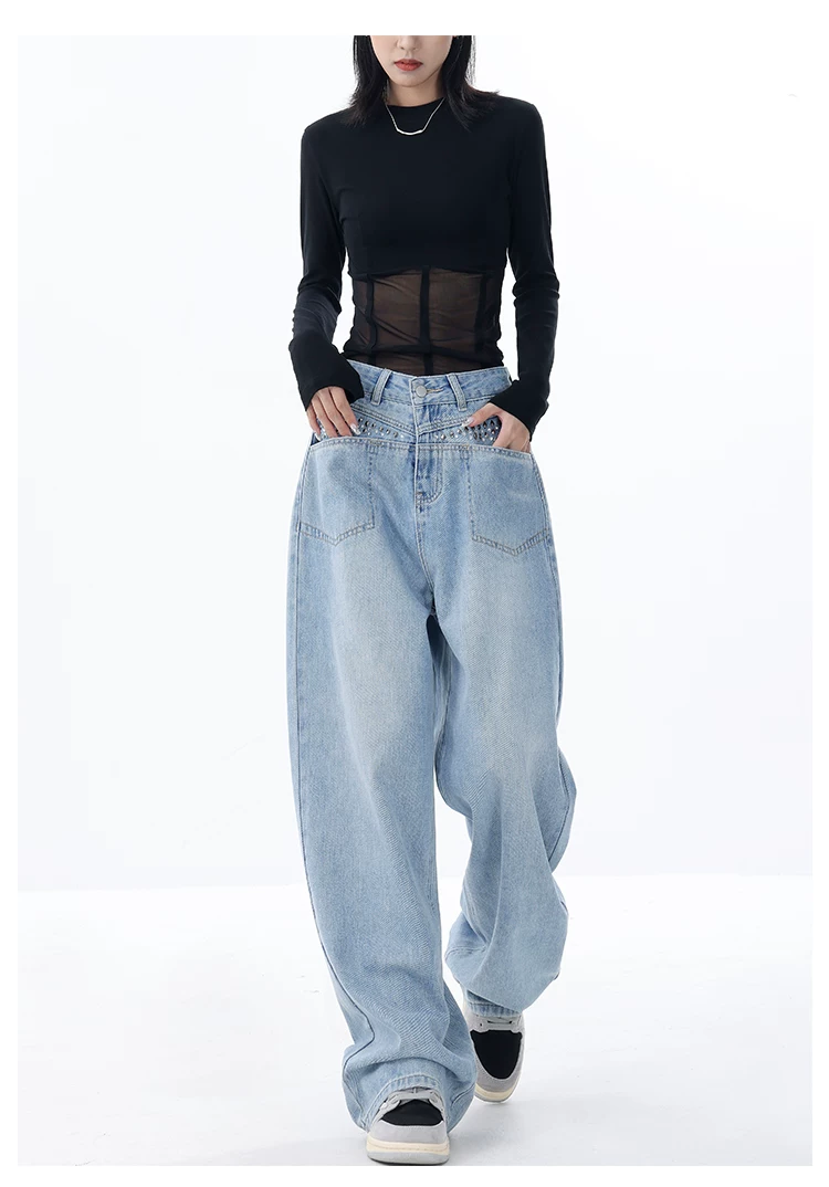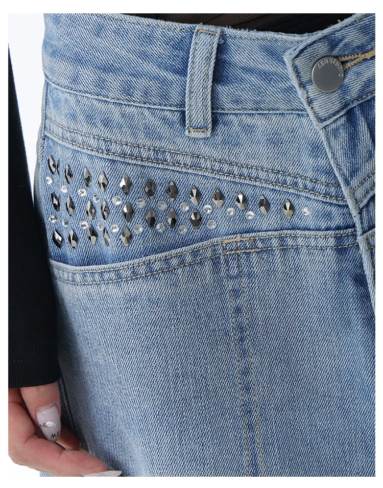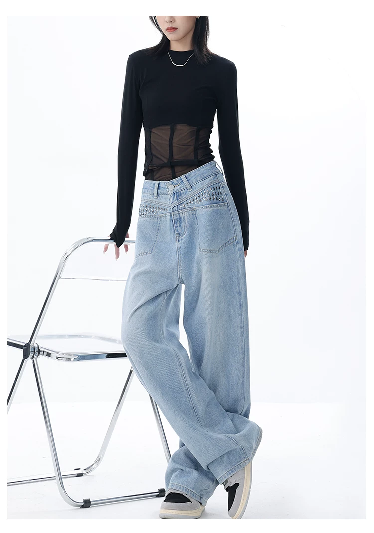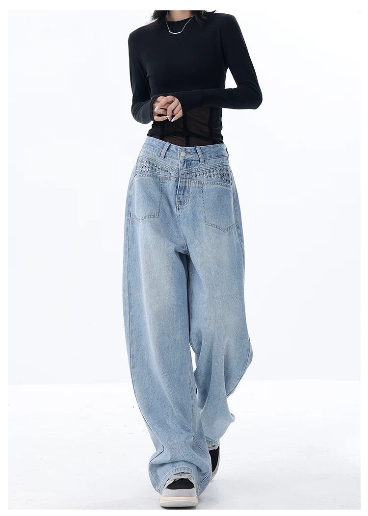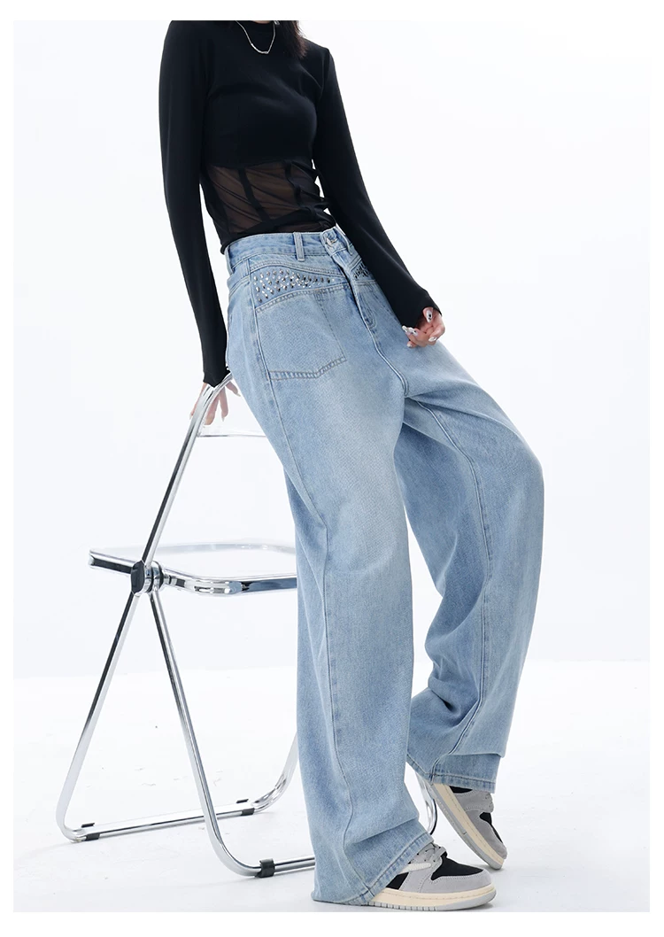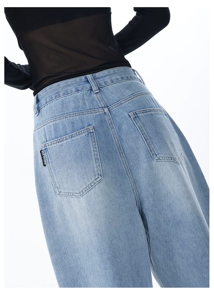 - Quần jean màu xanh lam được thiết kế theo phong cách KEN STUDIO dành cho nữ, kiểu dáng mới mùa xuân thu, dáng rộng, quần ống rộng giúp thon gọn.