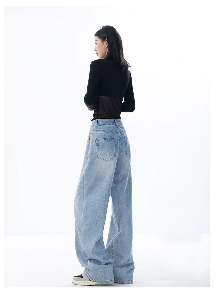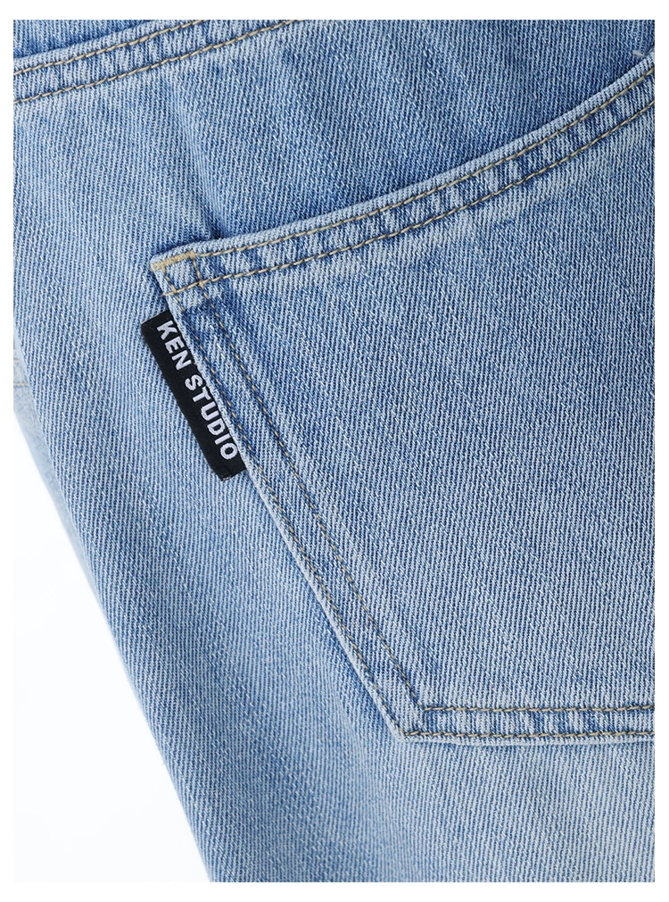 Quần jean màu xanh lam được thiết kế theo phong cách KEN STUDIO dành cho nữ, kiểu dáng mới mùa xuân thu, dáng rộng, quần ống rộng giúp thon gọn.
