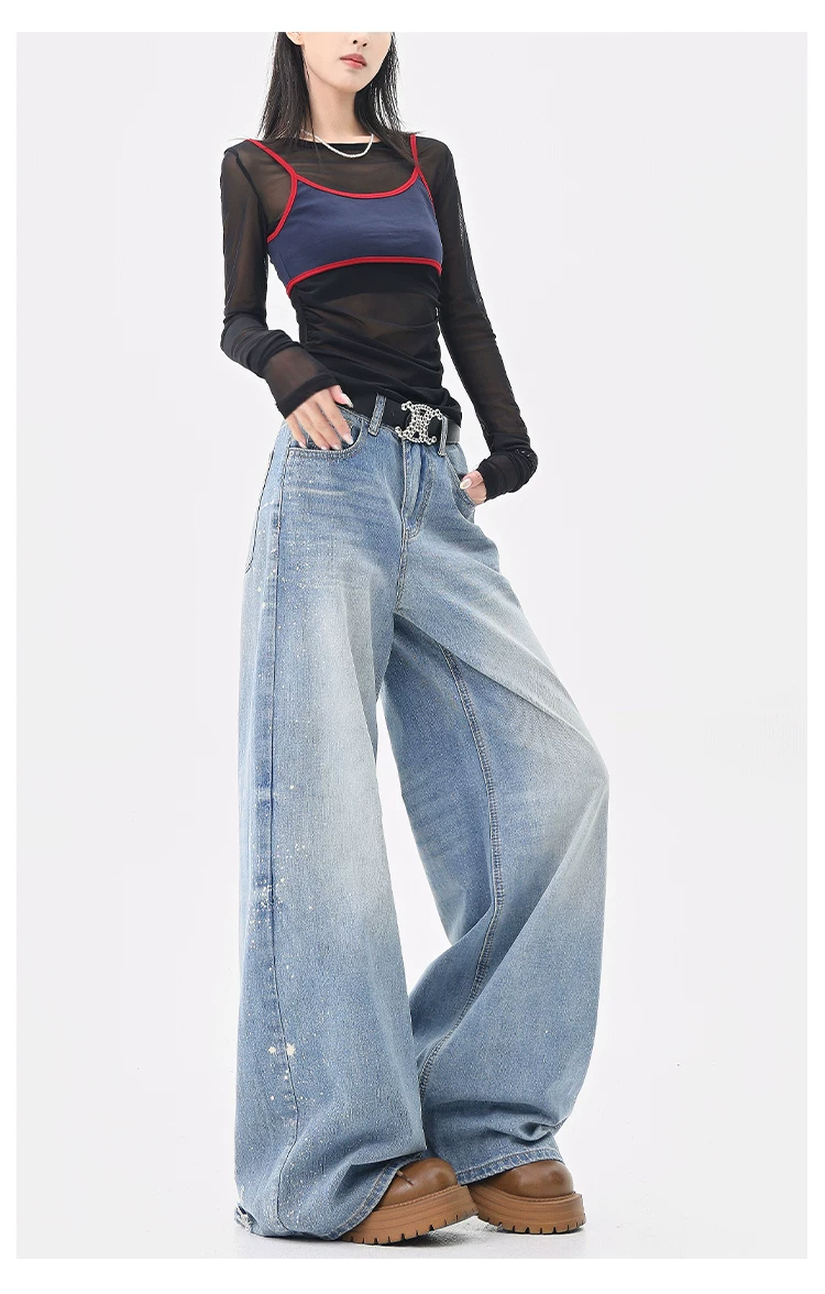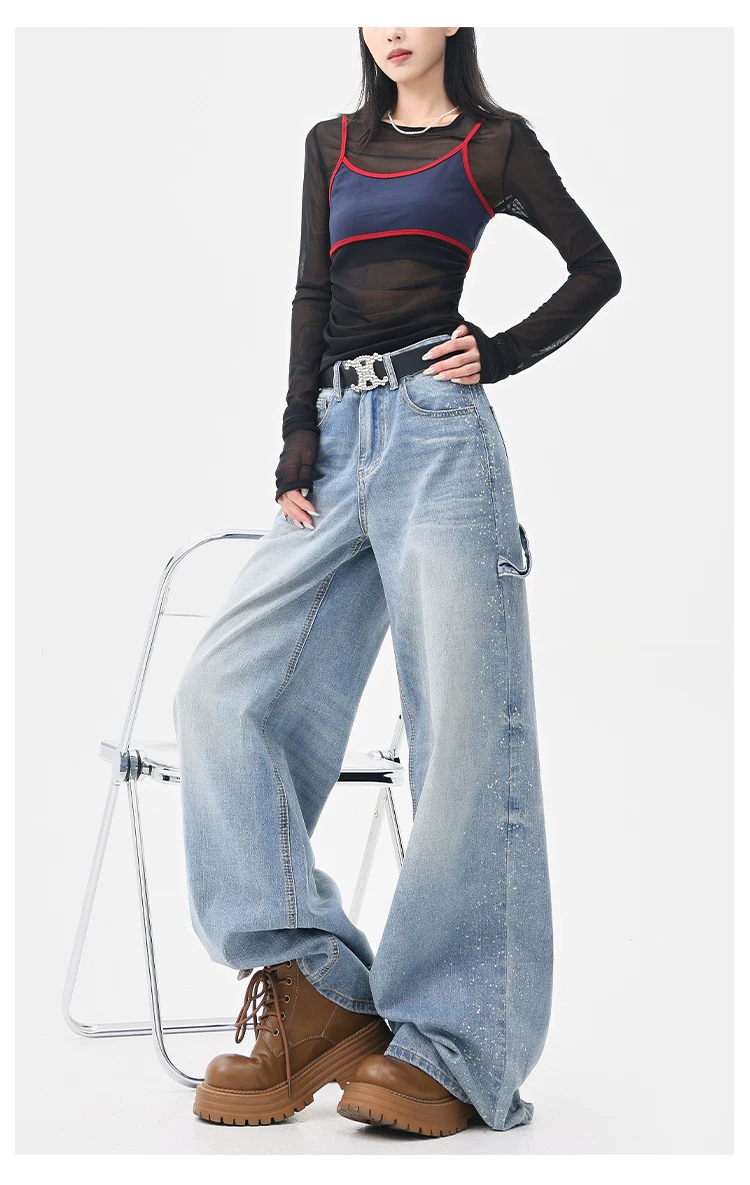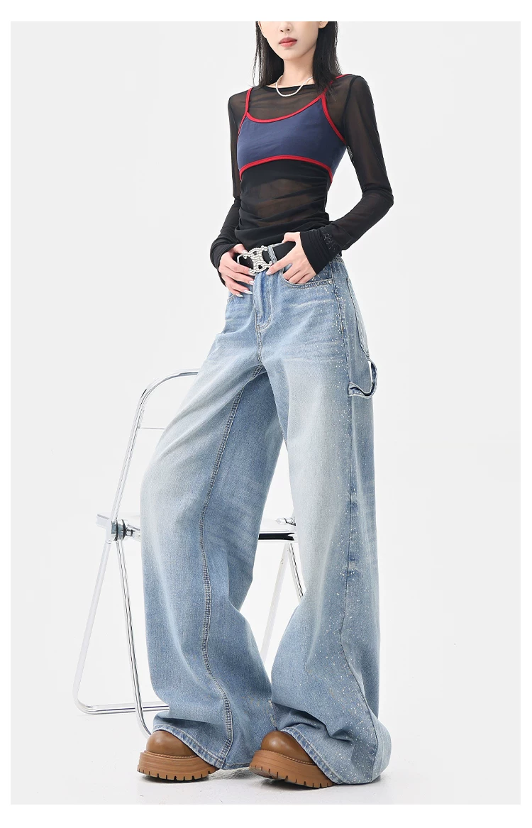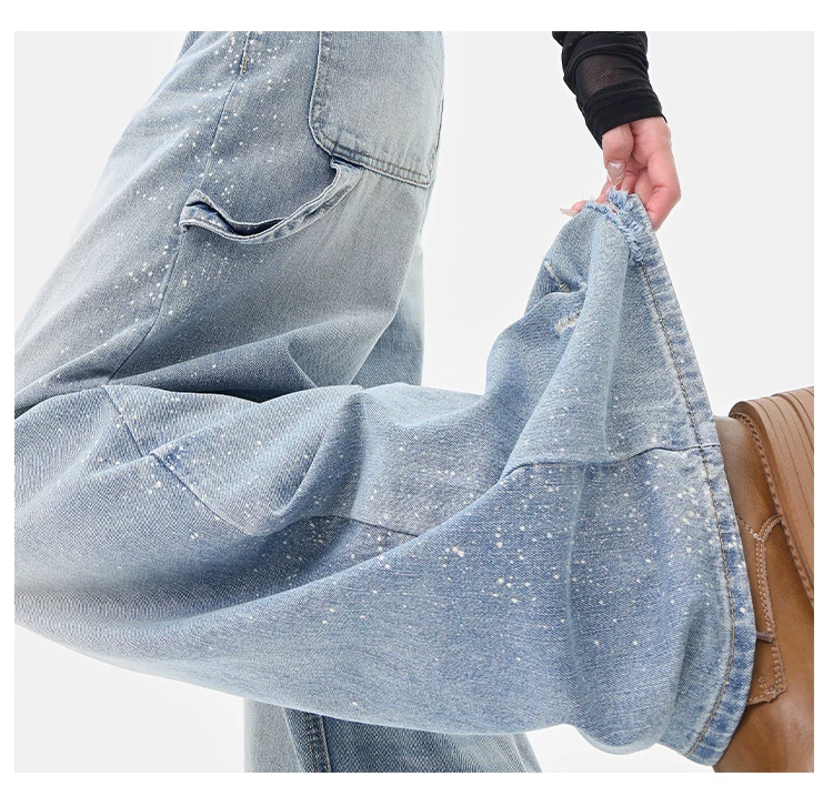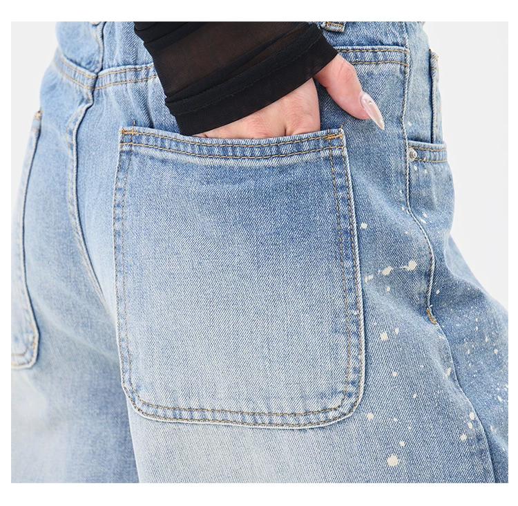 - Quần jean màu xanh nhạt kiểu cổ điển của KEN STUDIO dành cho nữ, thiết kế mùa hè mới, quần ống rộng dáng rộng