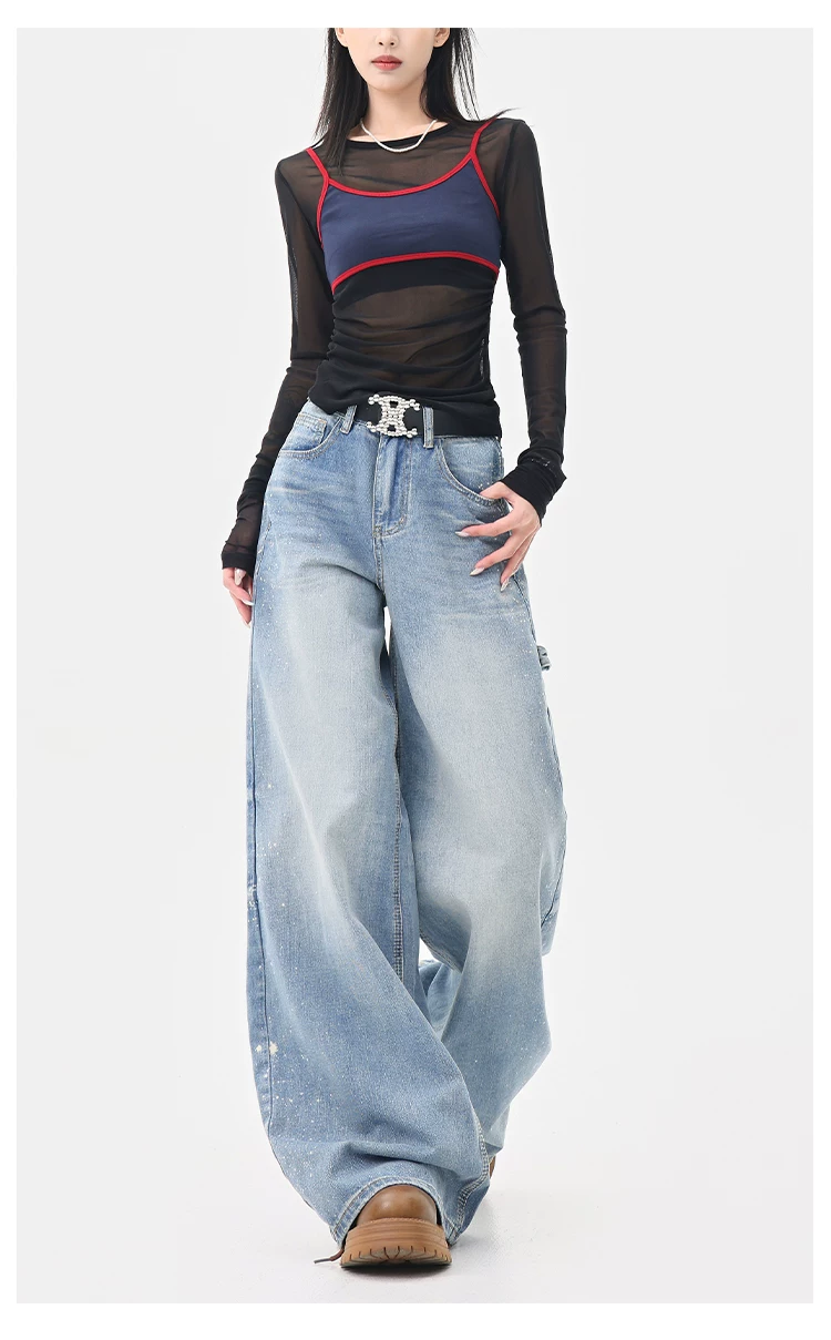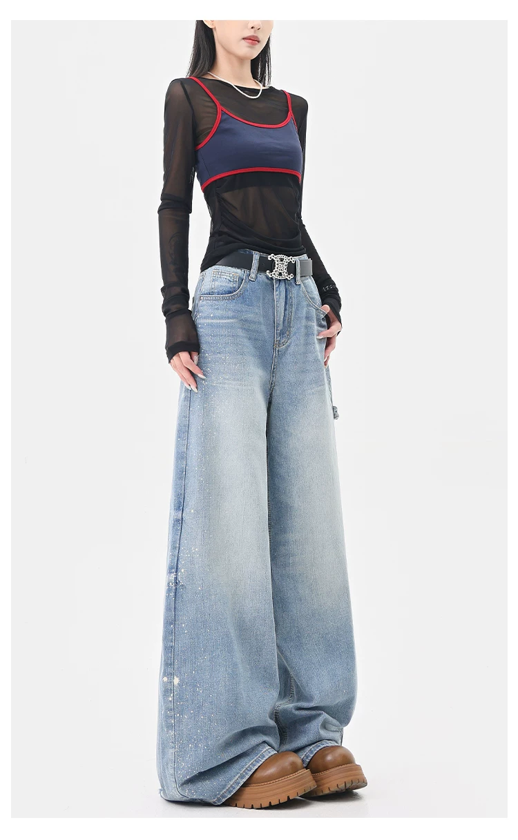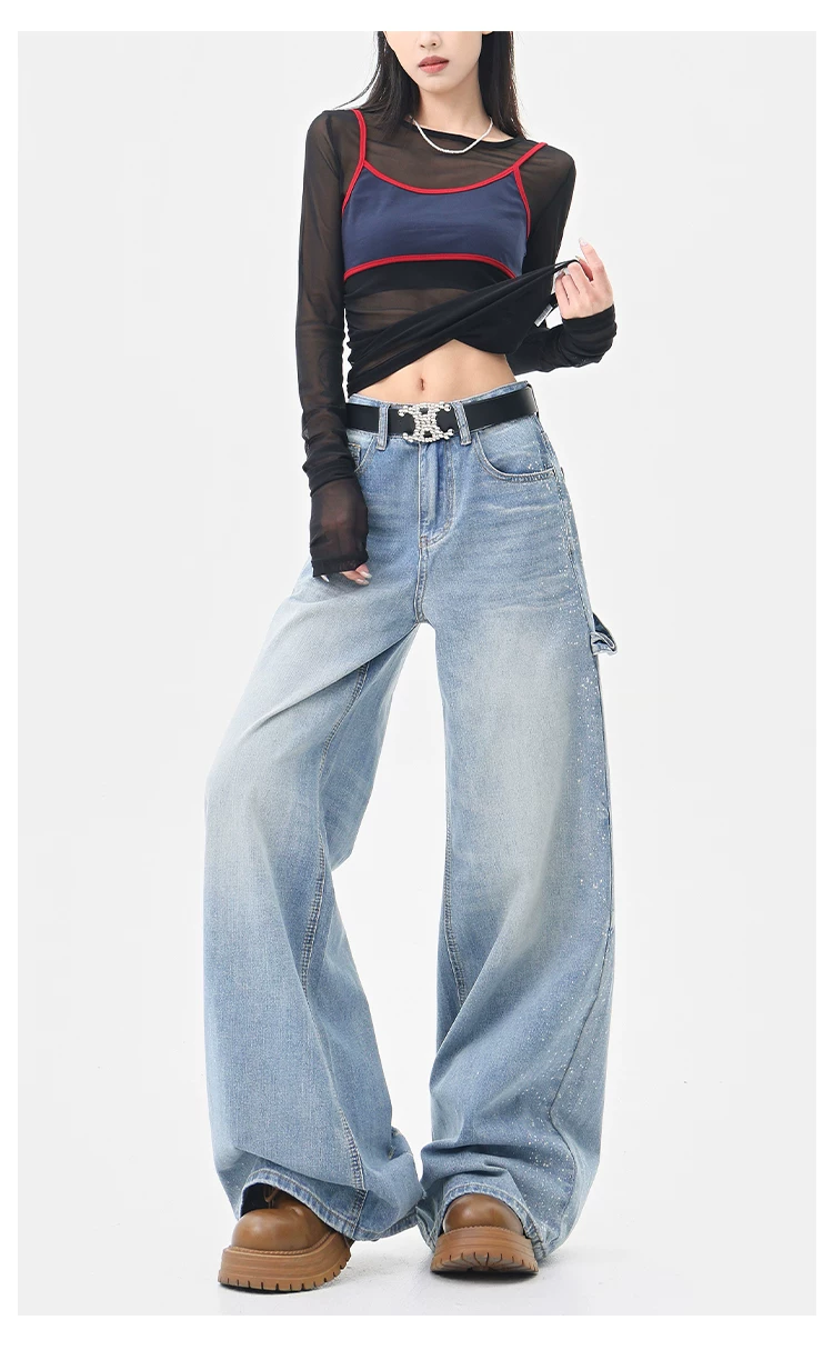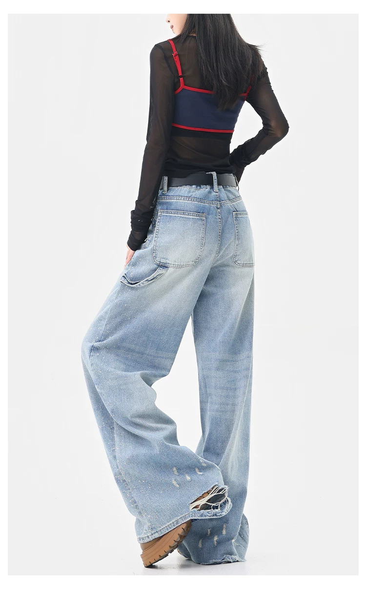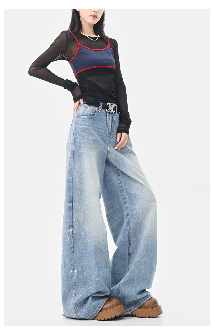 - Quần jean màu xanh nhạt kiểu cổ điển của KEN STUDIO dành cho nữ, thiết kế mùa hè mới, quần ống rộng dáng rộng