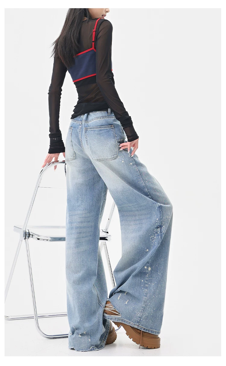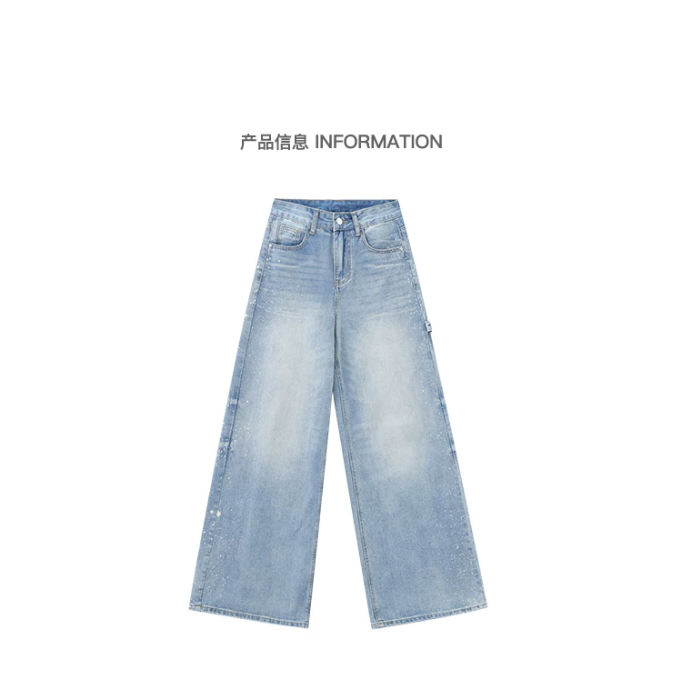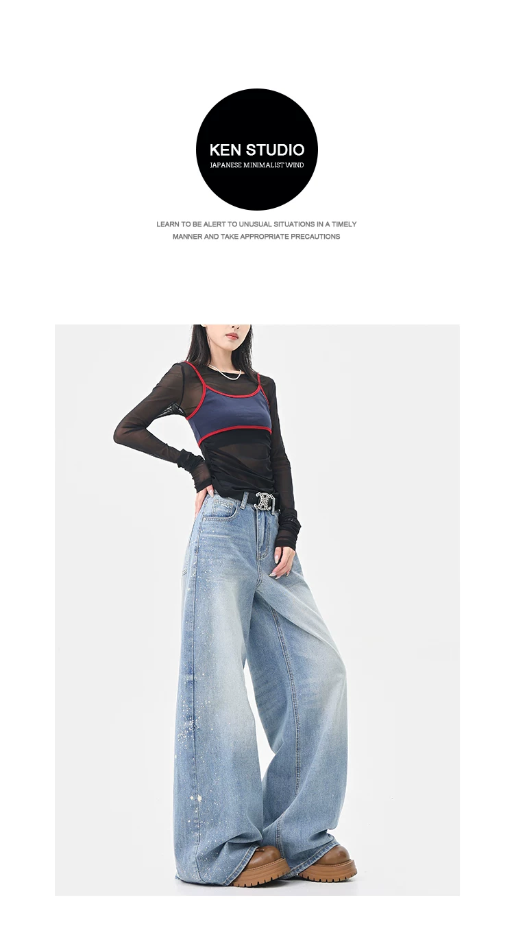 Quần jean màu xanh nhạt kiểu cổ điển của KEN STUDIO dành cho nữ, thiết kế mùa hè mới, quần ống rộng dáng rộng