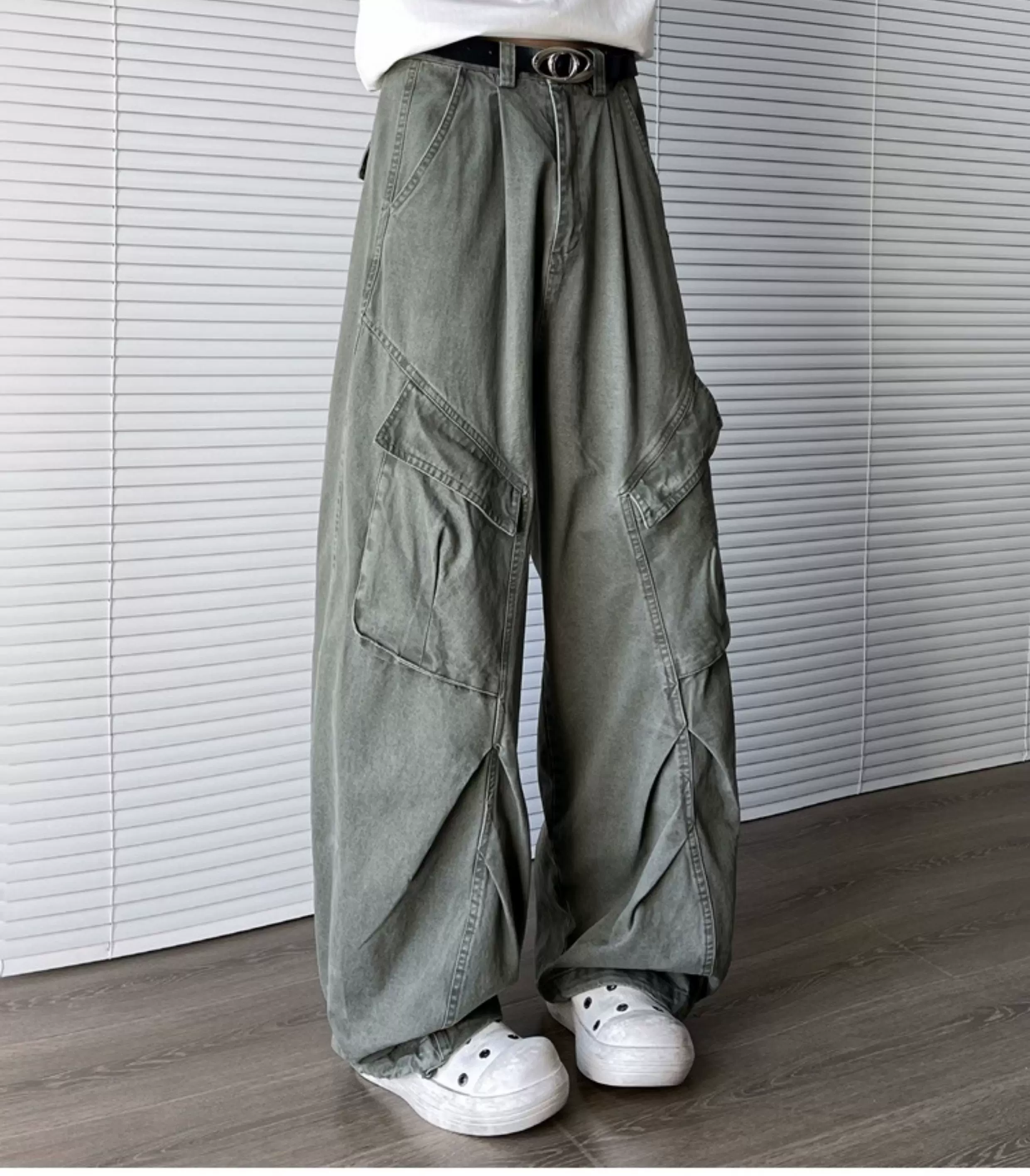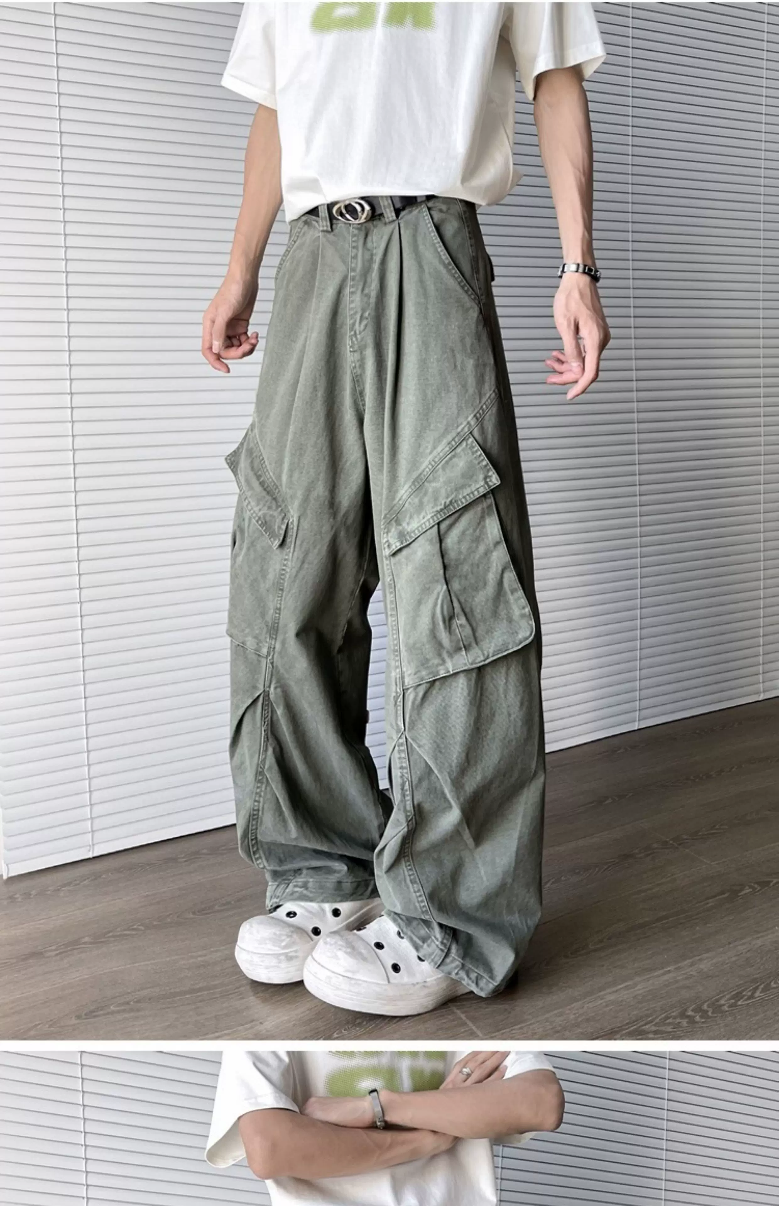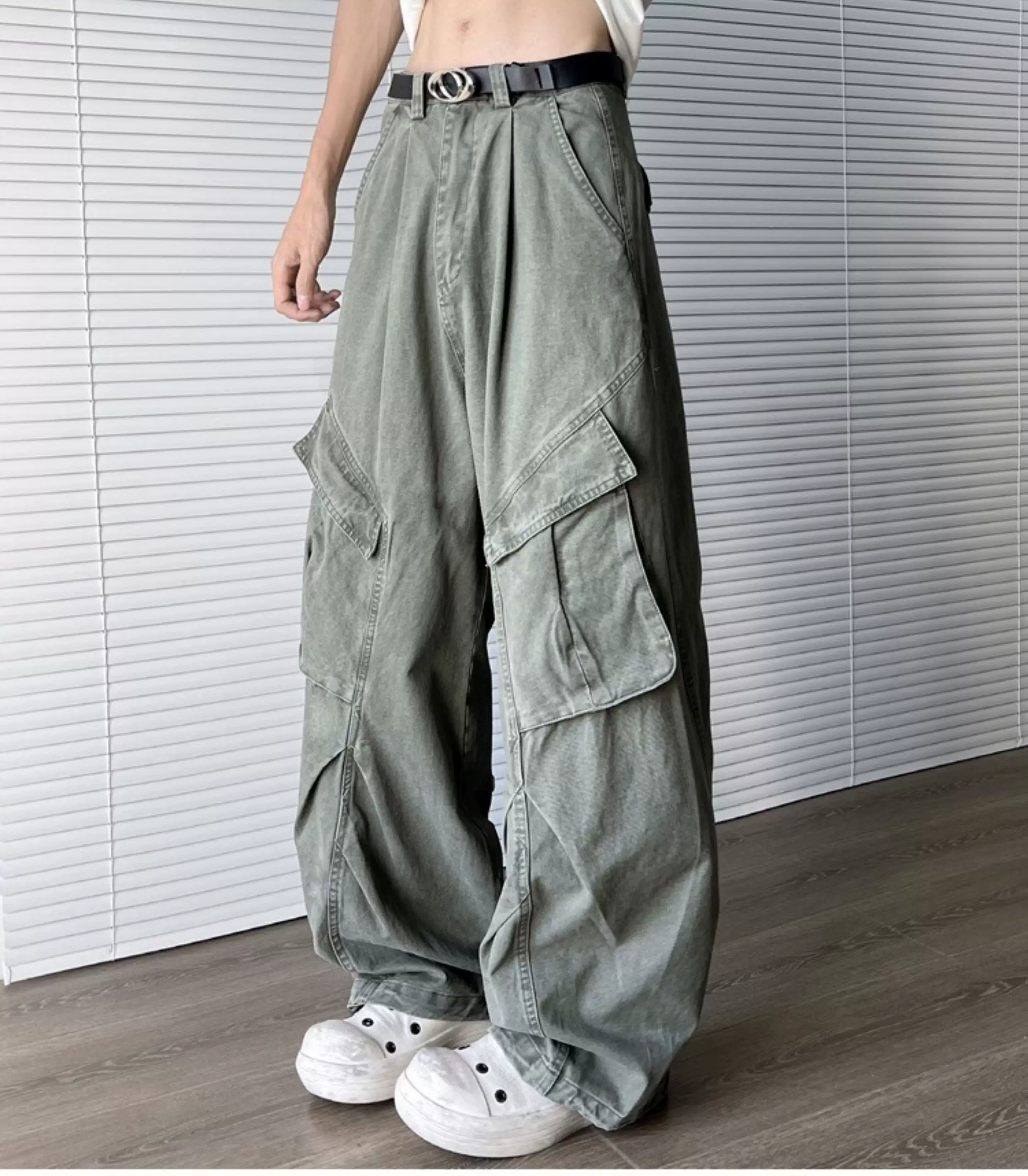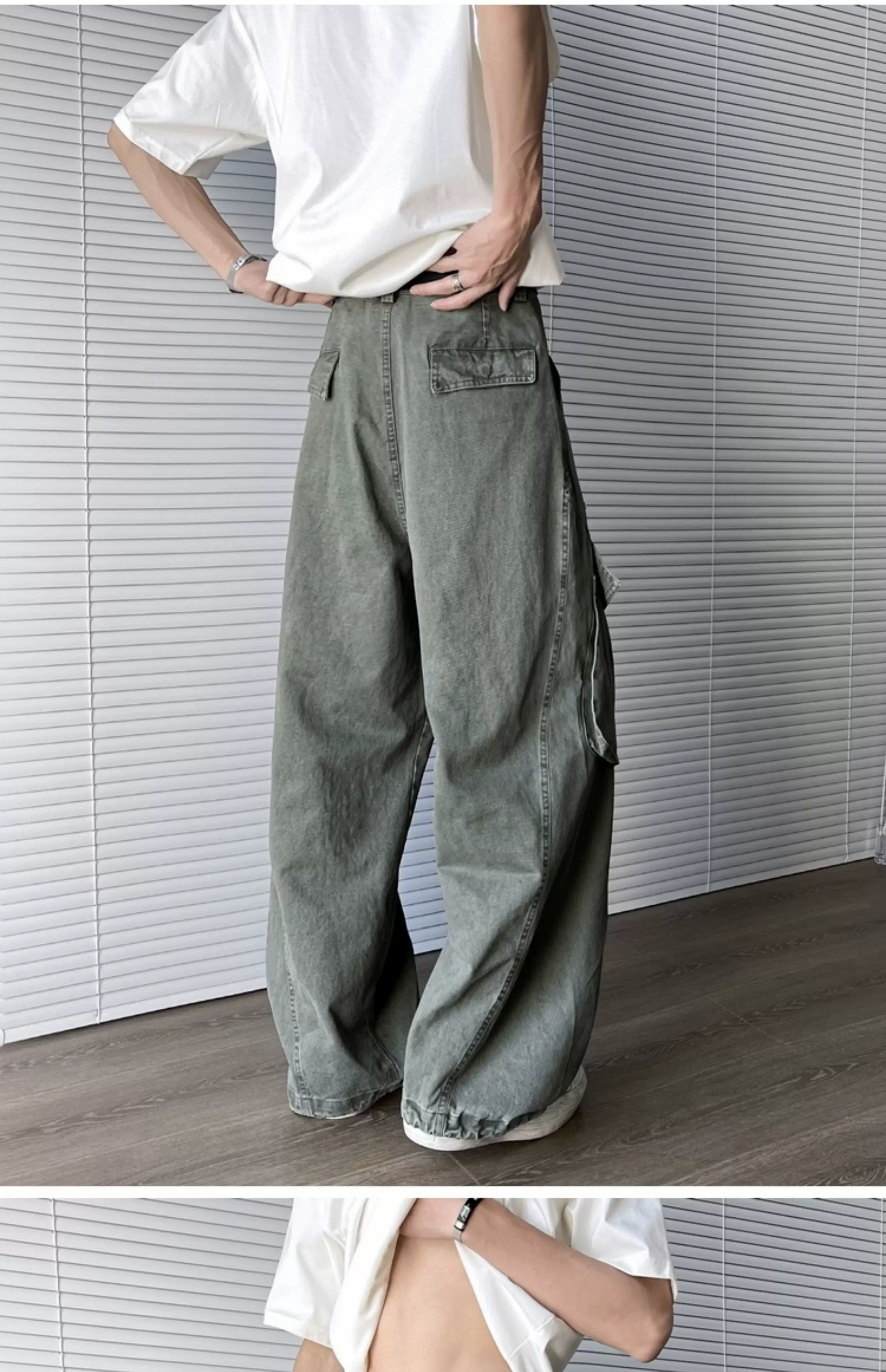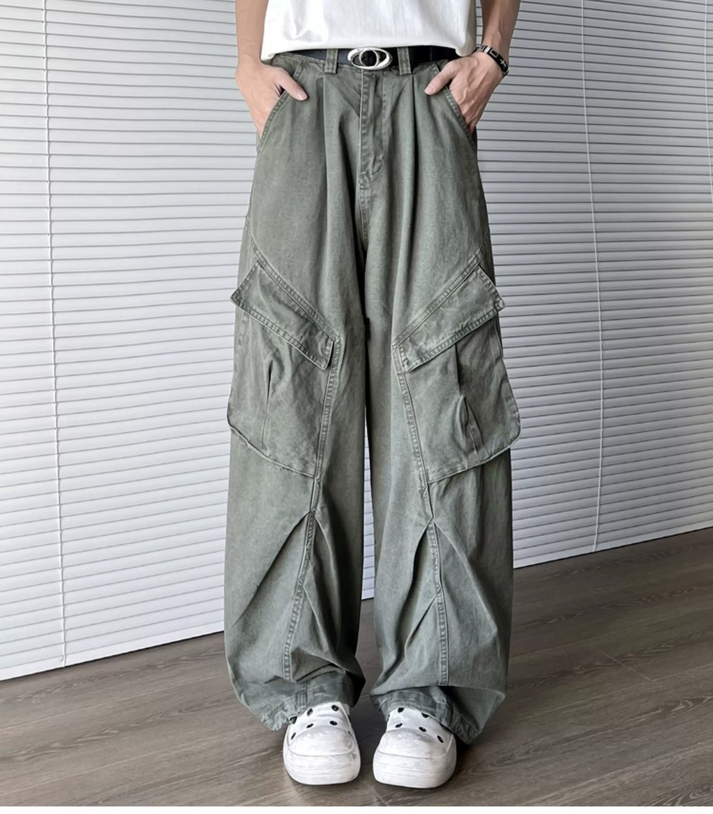 Quần jean nam dáng rộng thời trang, có túi bên hông lớn, quần công sở thiết kế phá cách theo phong cách retro Mỹ.