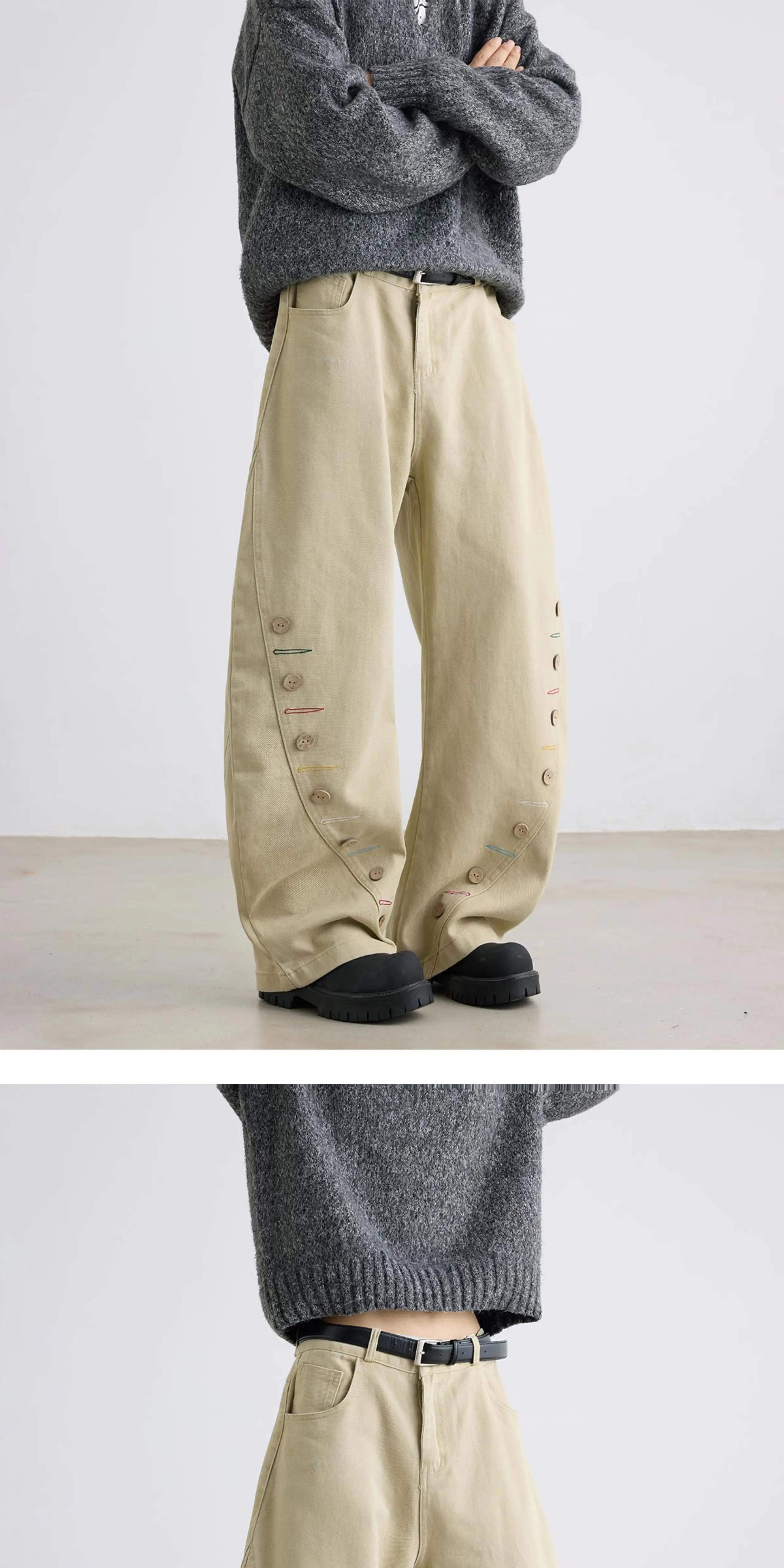 - Quần jean nam kiểu dáng thiết kế, ống cong, phong cách Mỹ mùa thu, quần dài rộng rãi thoải mái kiểu Nhật Bản.