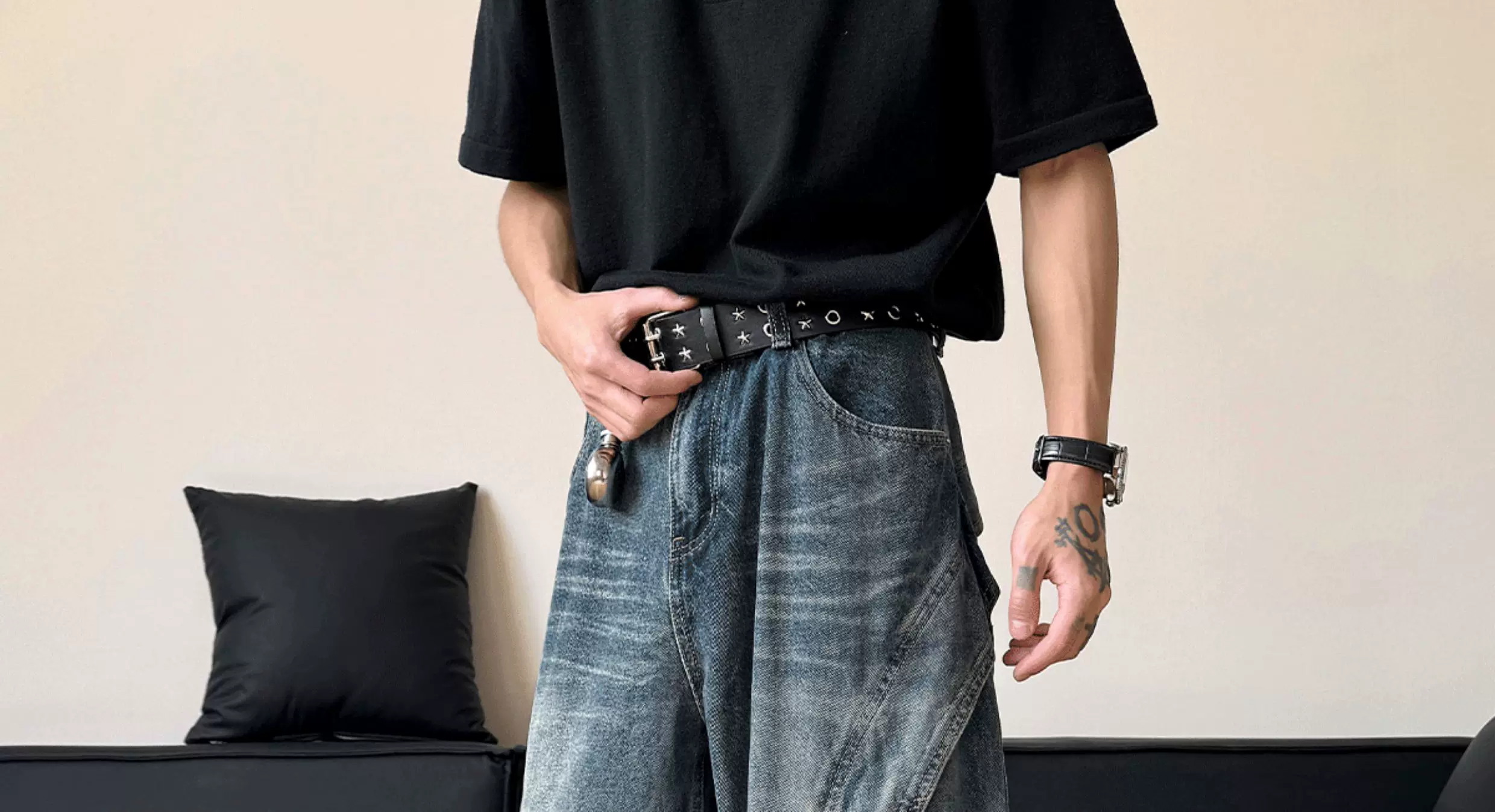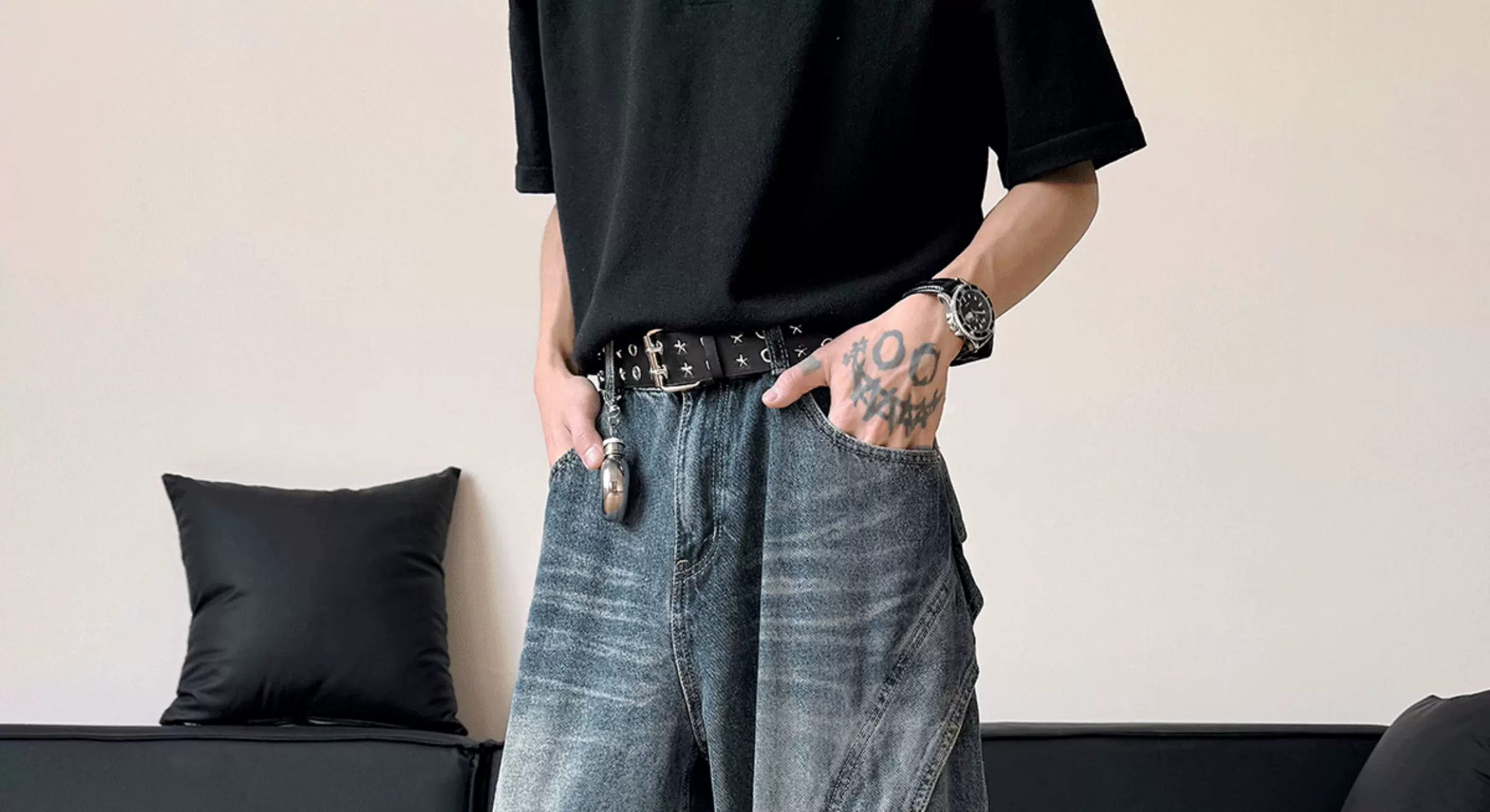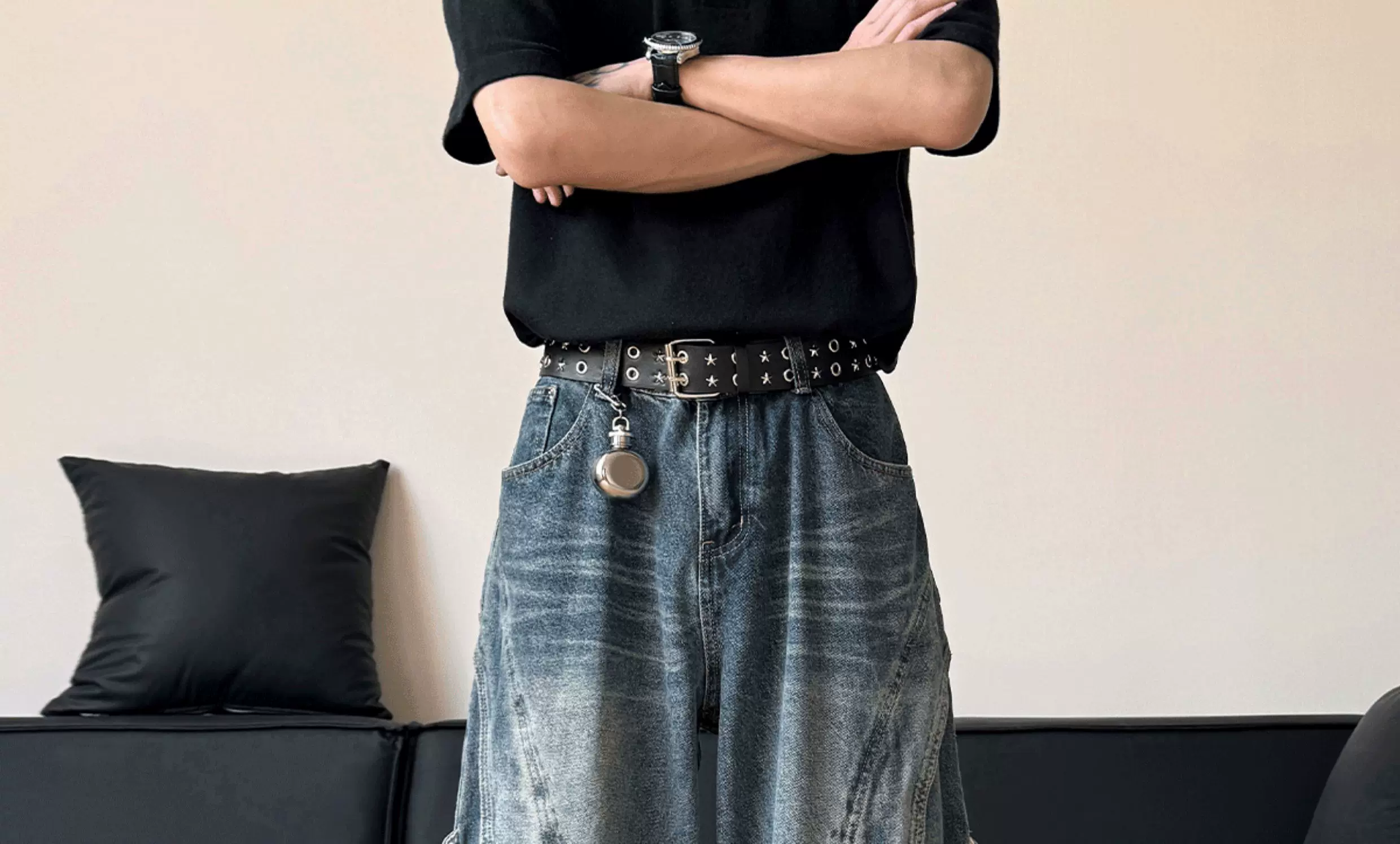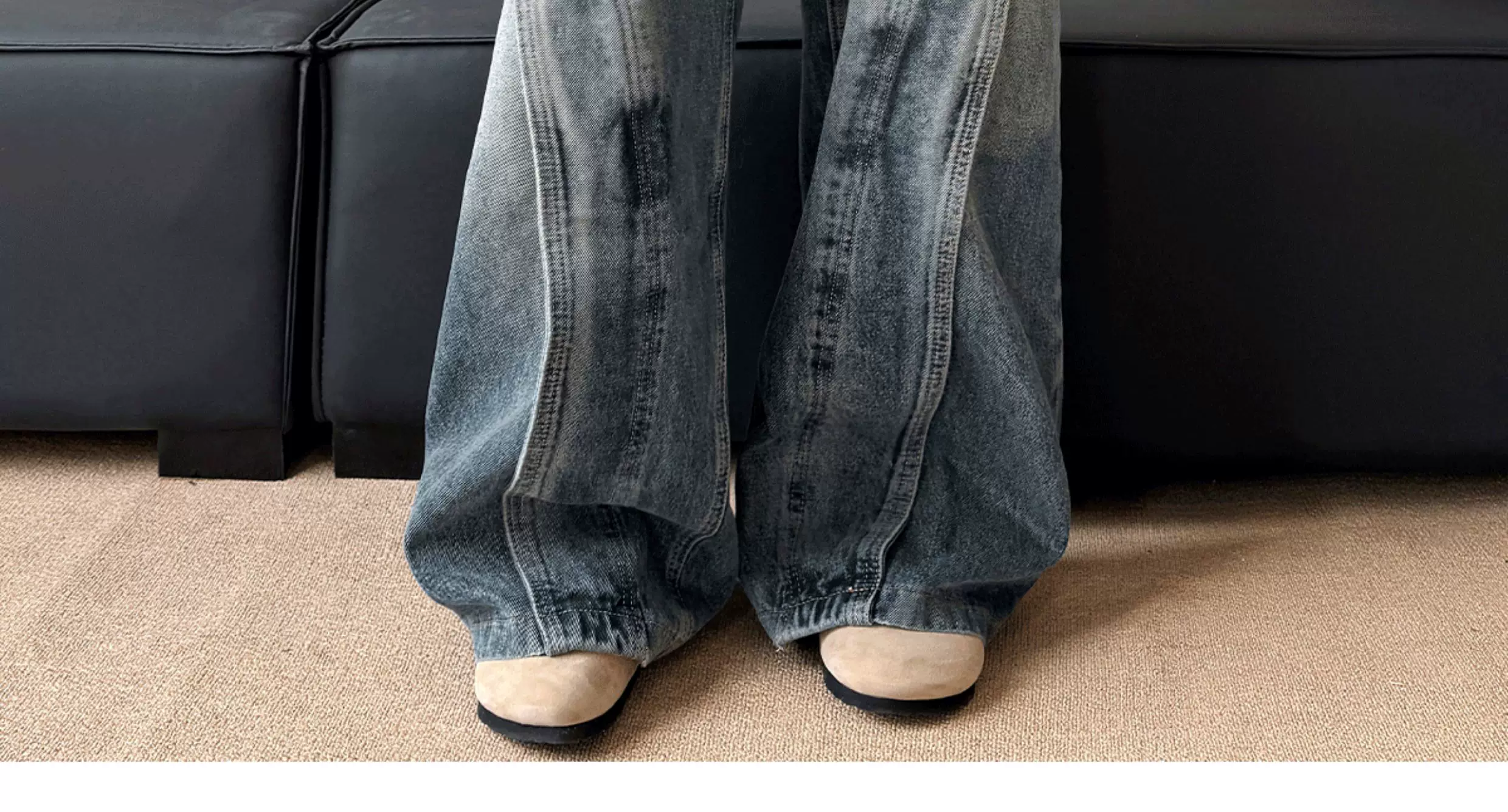- Quần jean nam kiểu dáng thiết kế thời trang, quần ống đứng phối vải phong cách Mỹ, quần ống rộng retro phong cách đường phố.