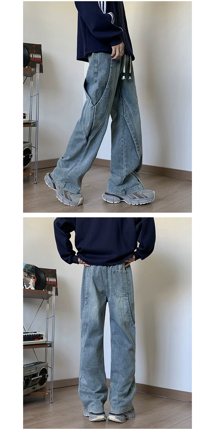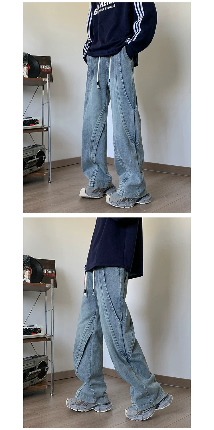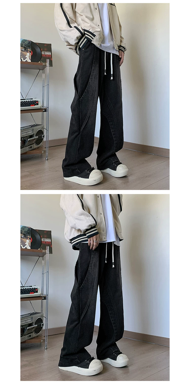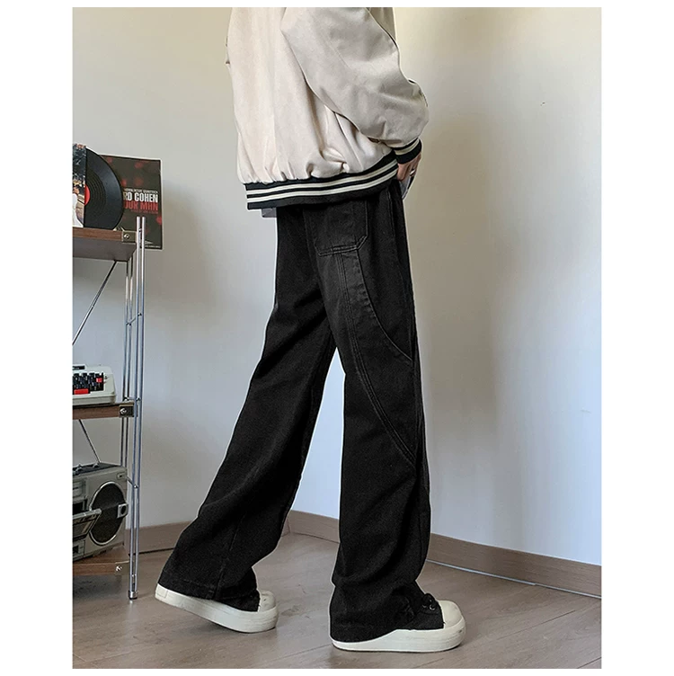Quần jean nam kiểu Mỹ, chất liệu dày dặn, thiết kế phá cách, mùa xuân thu, quần vá phối màu, kiểu dáng thời thượng, quần ống rộng dáng suông.