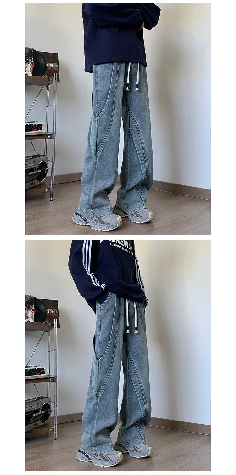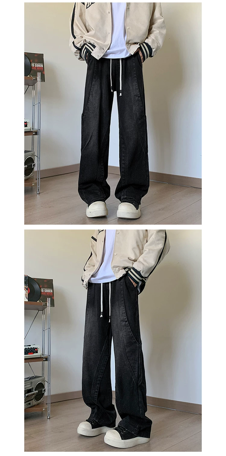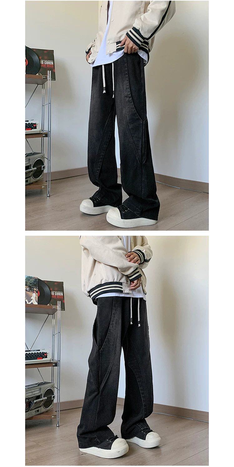 Quần jean nam kiểu Mỹ, chất liệu dày dặn, thiết kế phá cách, mùa xuân thu, quần vá phối màu, kiểu dáng thời thượng, quần ống rộng dáng suông.