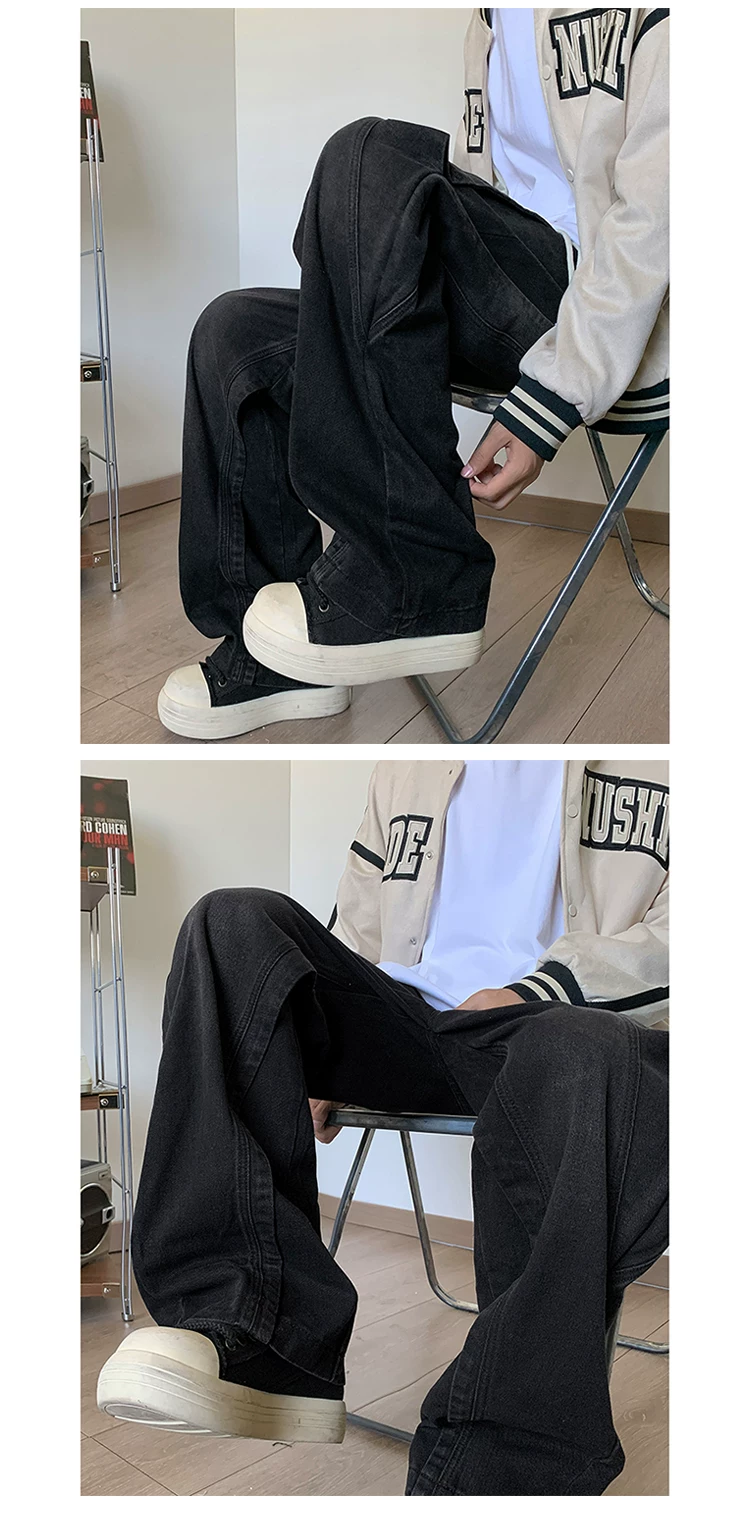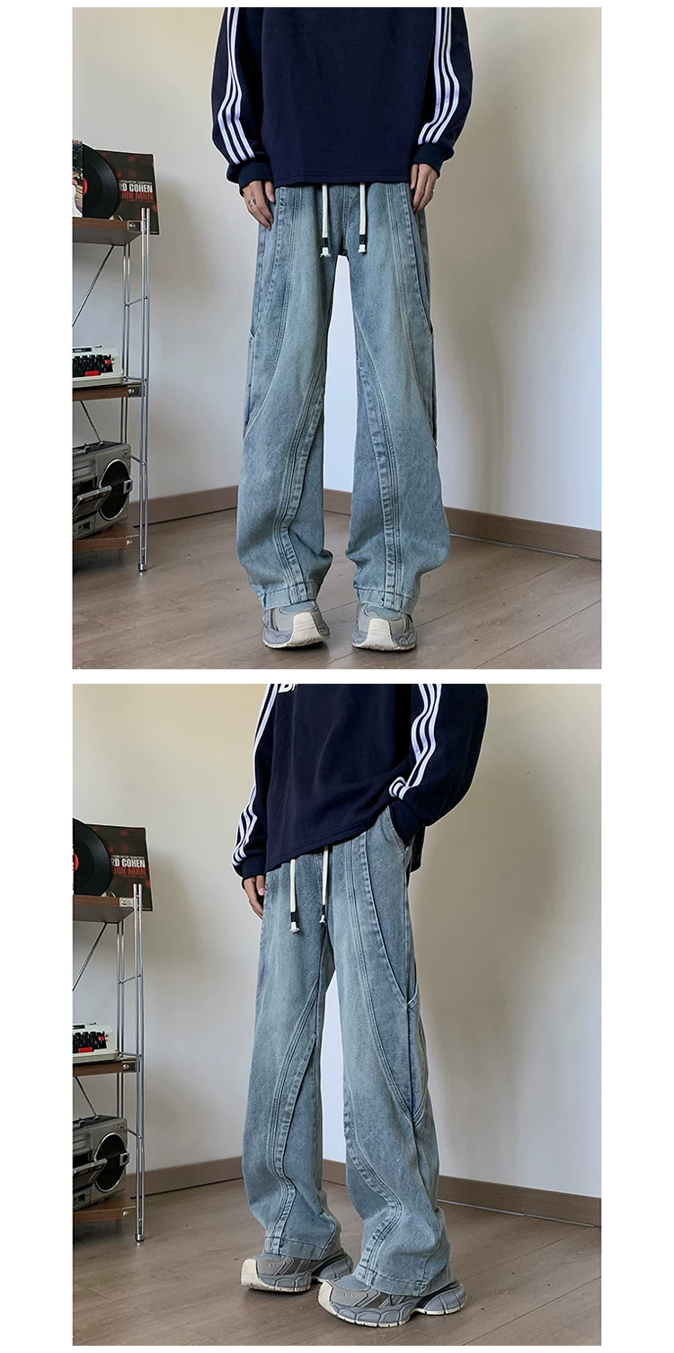 - Quần jean nam kiểu Mỹ, chất liệu dày dặn, thiết kế phá cách, mùa xuân thu, quần vá phối màu, kiểu dáng thời thượng, quần ống rộng dáng suông.