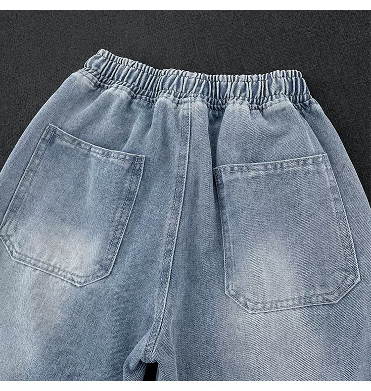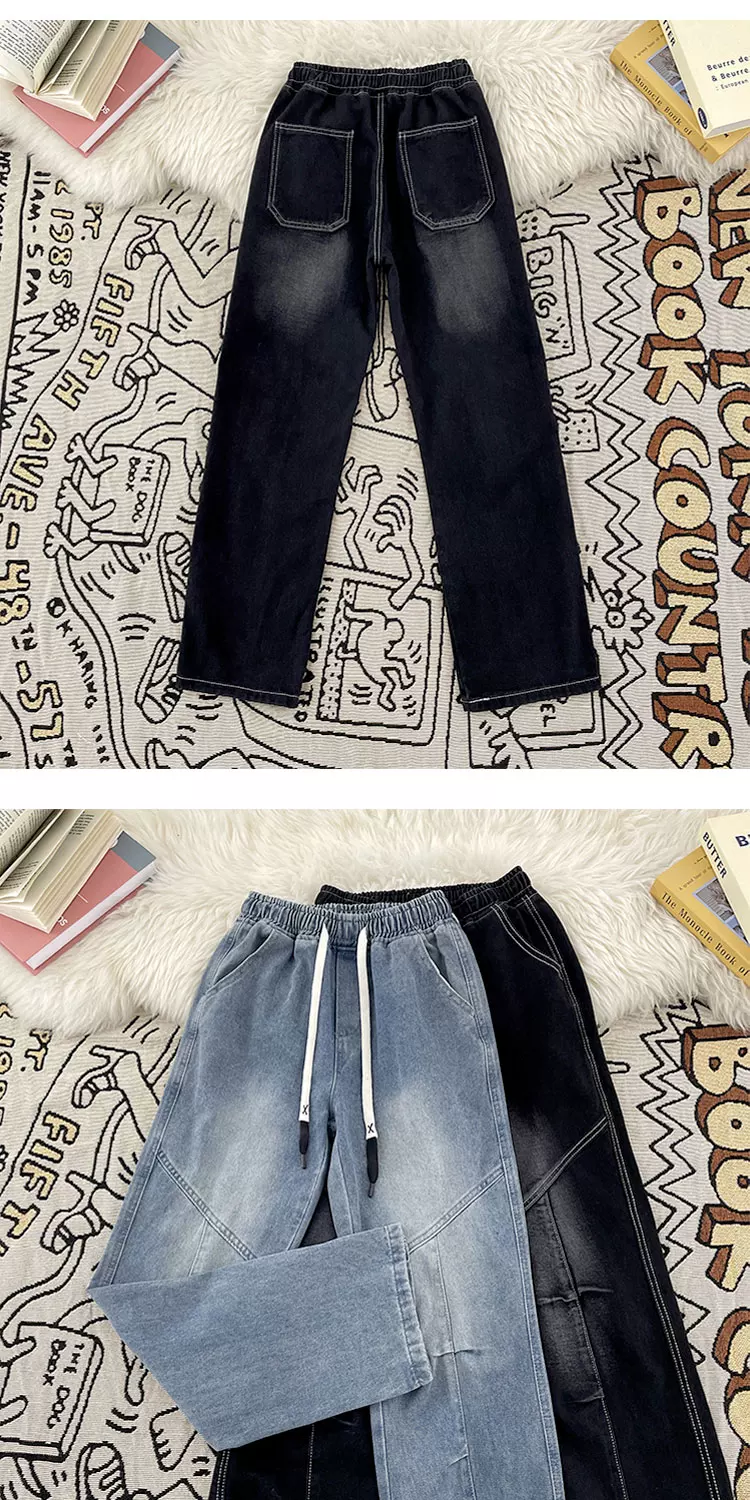- Quần jean nam kiểu Mỹ cổ điển, quần ống rộng cạp chun co giãn mùa xuân thu, quần ống đứng dáng rộng thoải mái thời thượng.