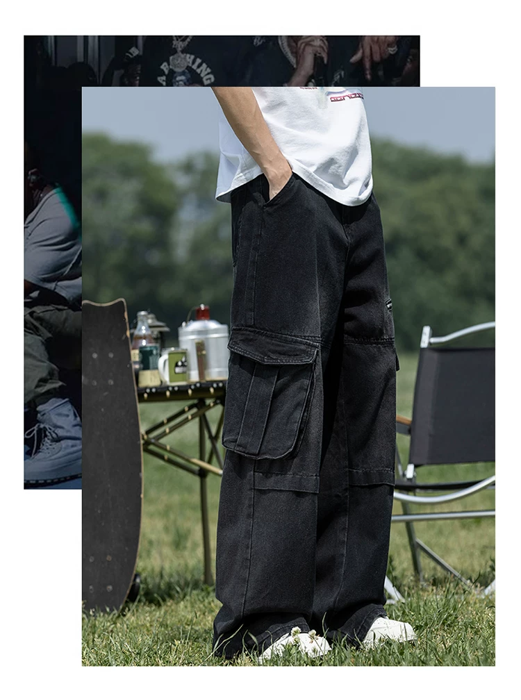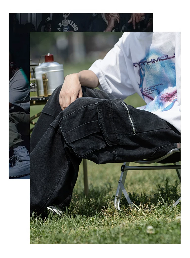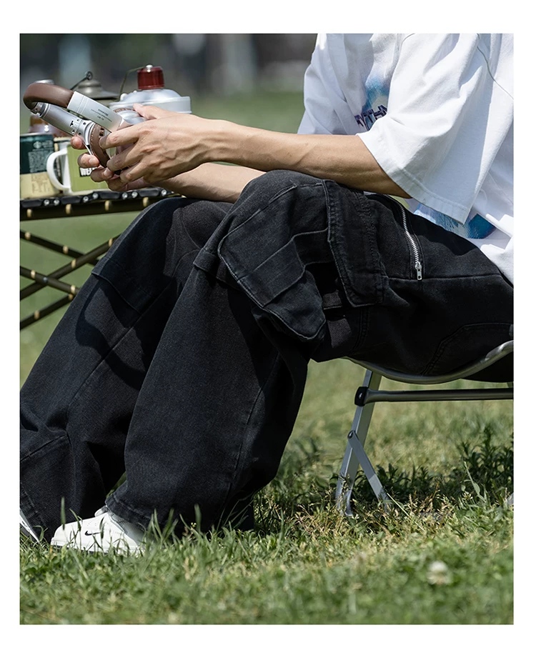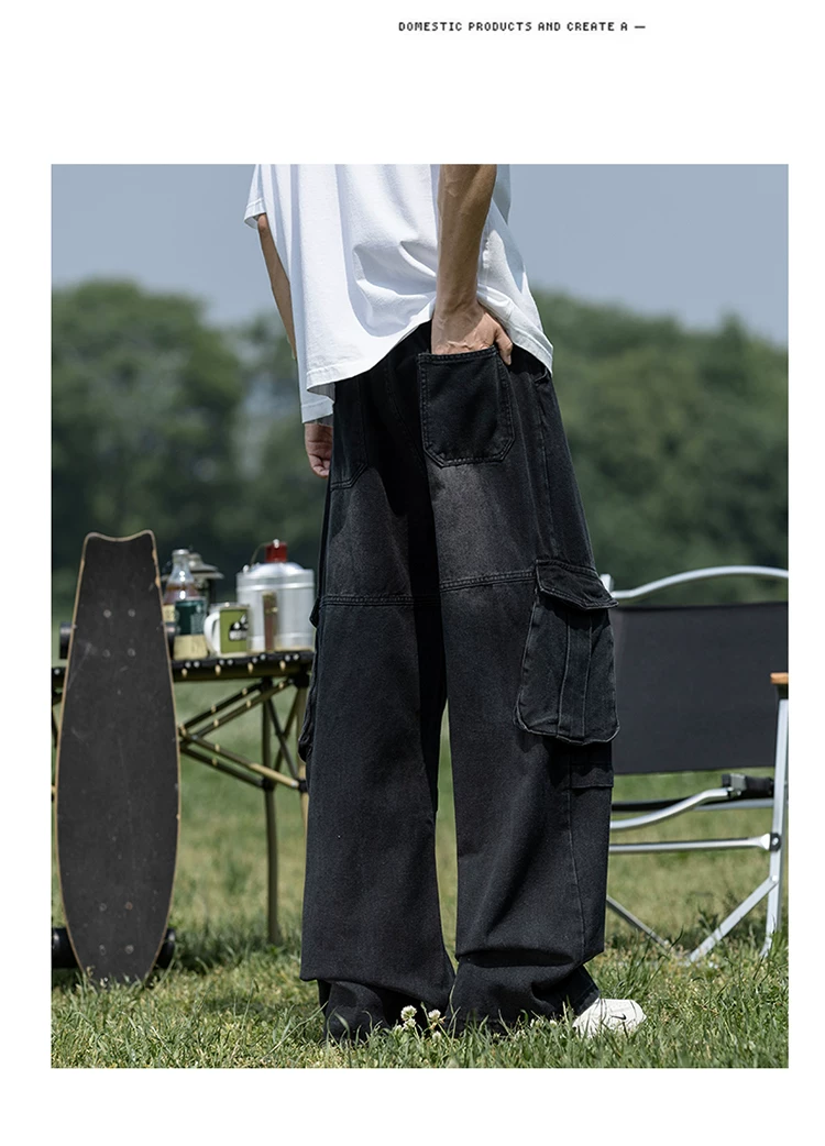 Quần jean nam nhiều túi có khóa kéo, chất liệu bền chắc, quần dài dáng rộng phong cách thời trang, quần dài ống rộng kiểu Mỹ.