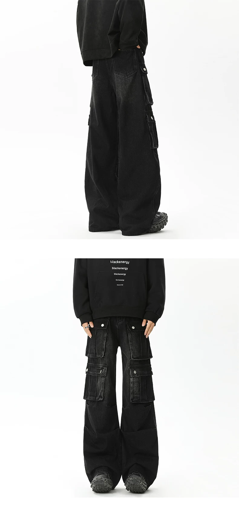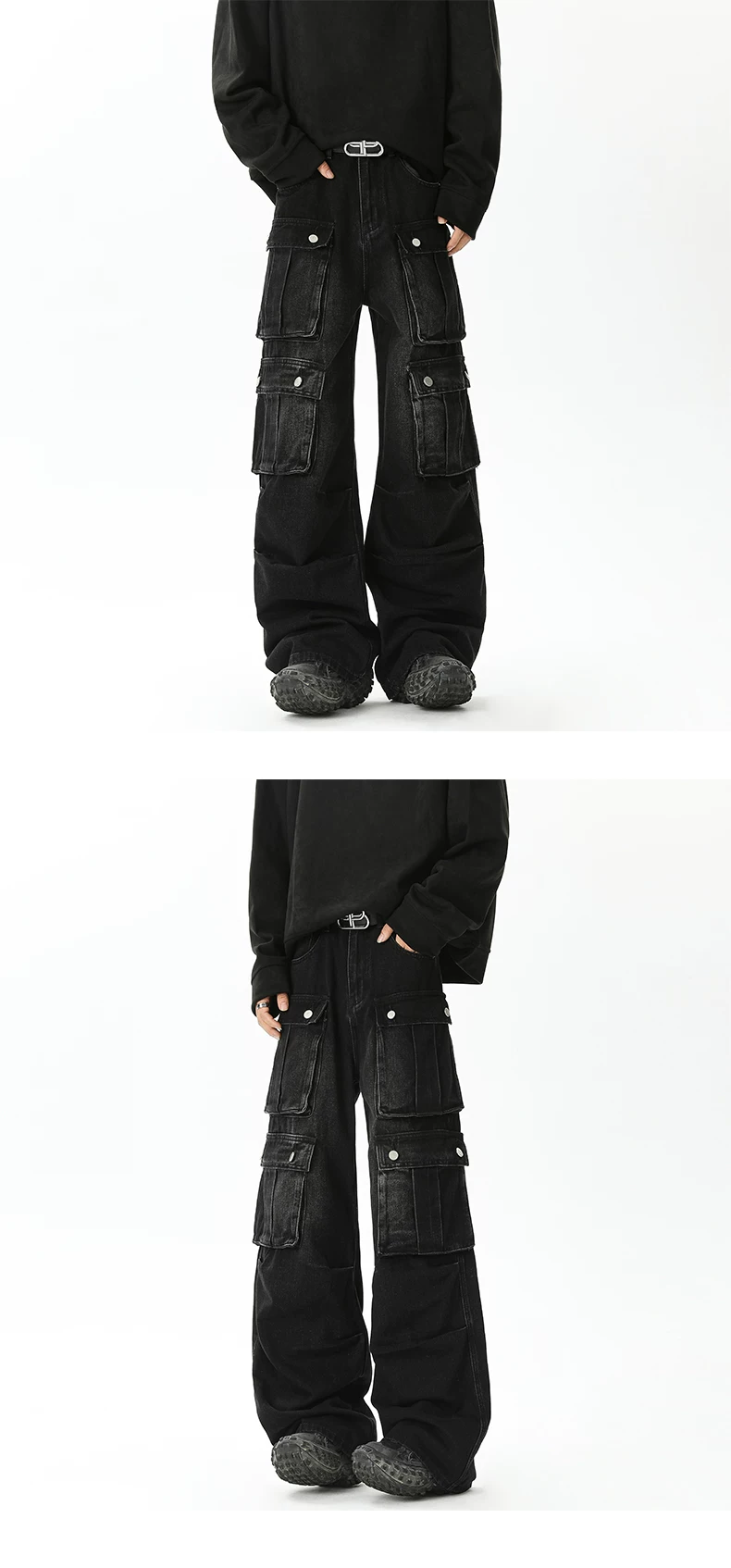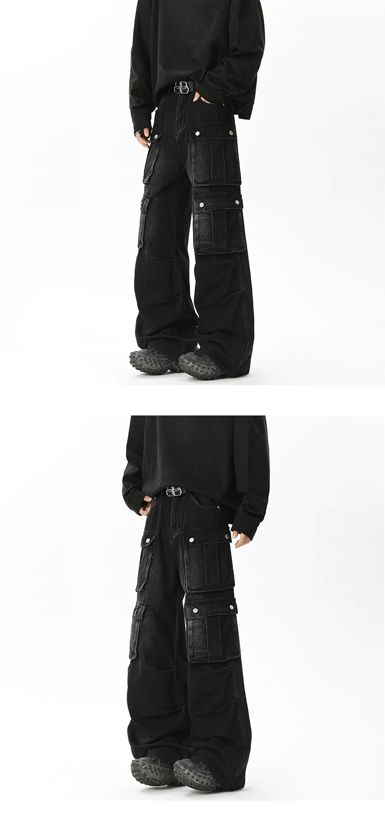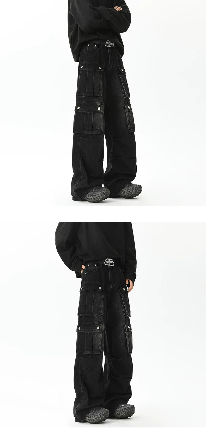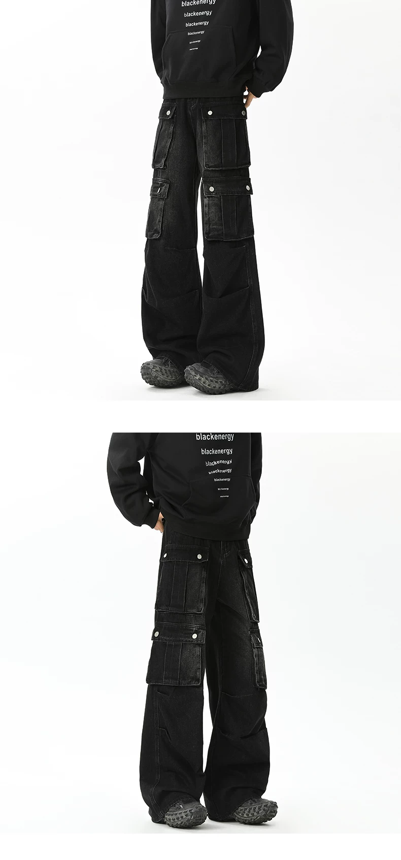 Quần jean nam nhiều túi, kiểu dáng vintage Mỹ thời thượng, quần ống rộng thoải mái cho mùa xuân và mùa thu.