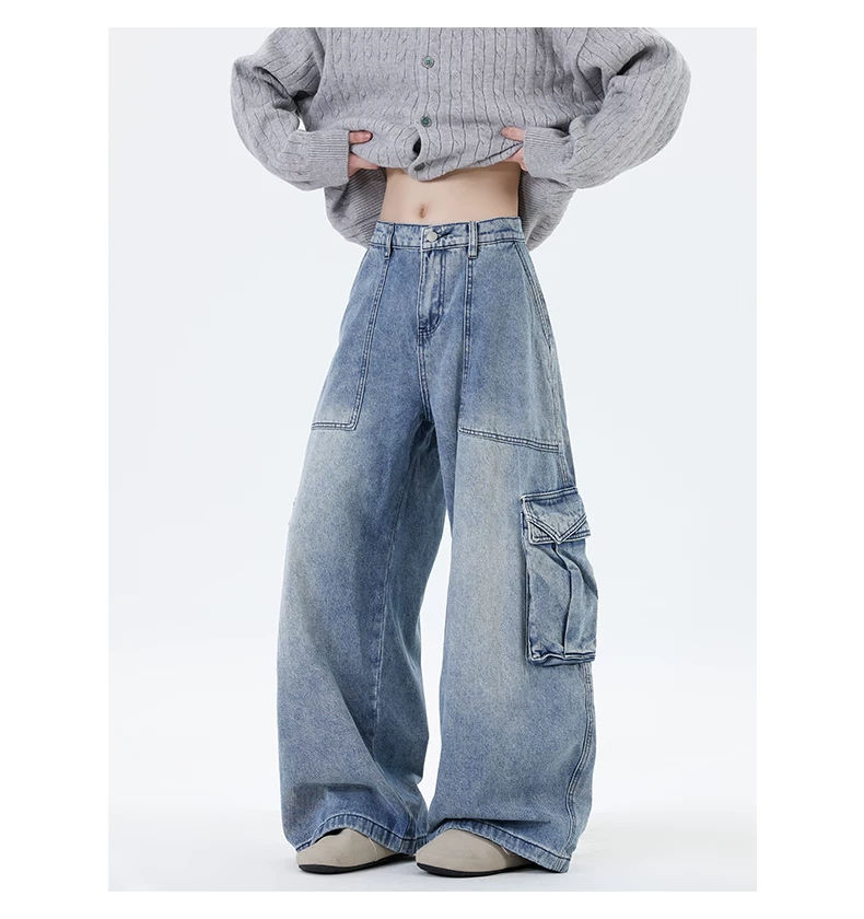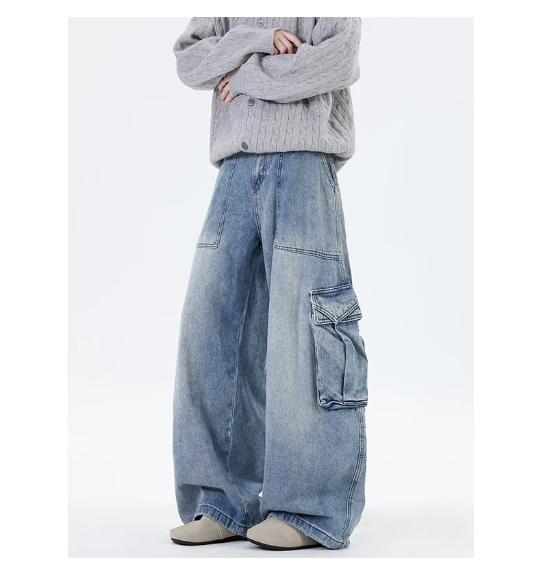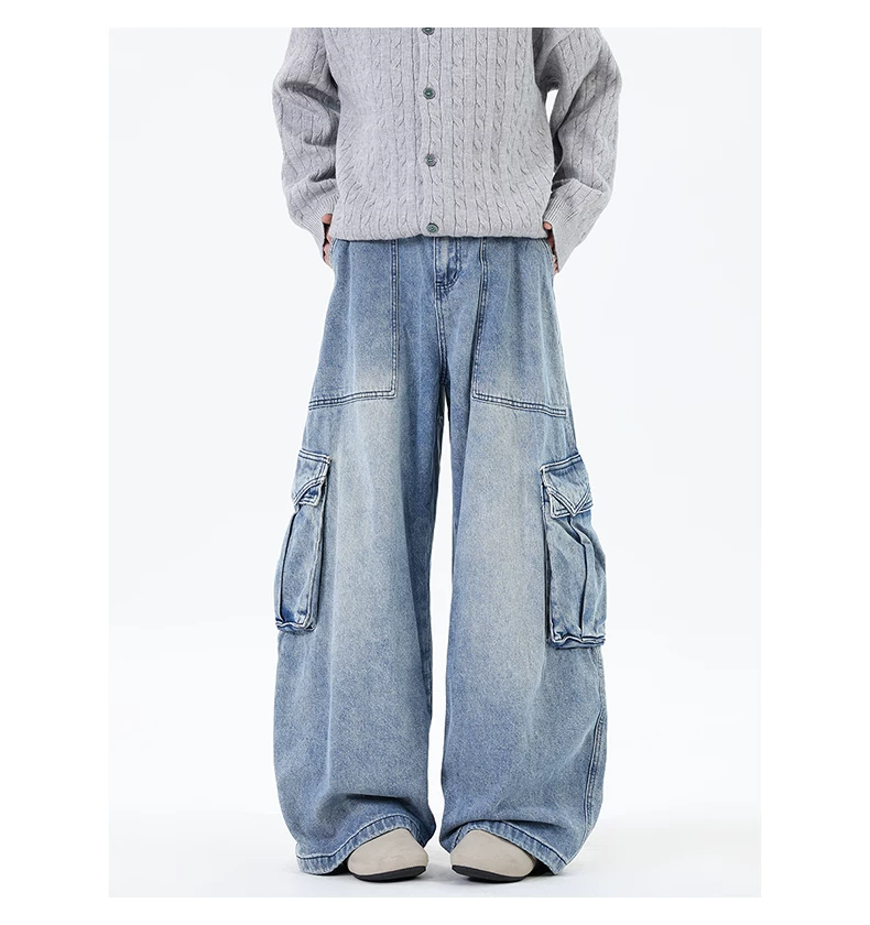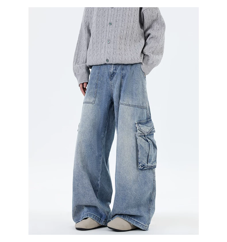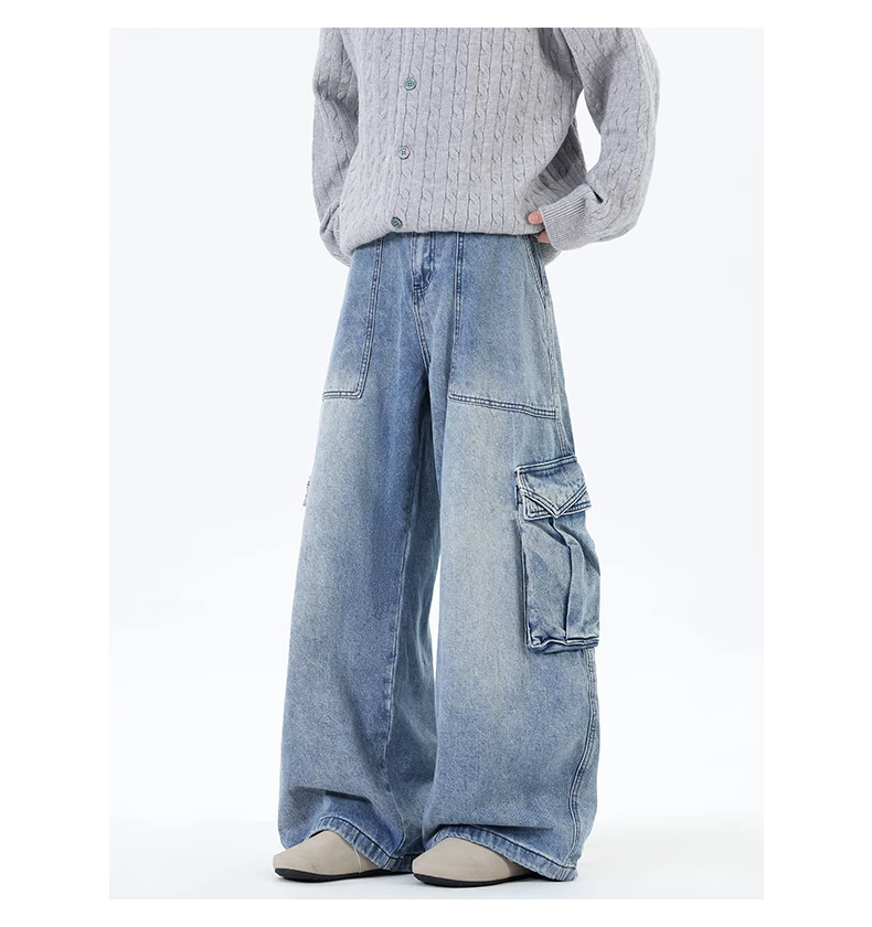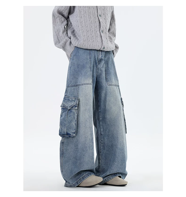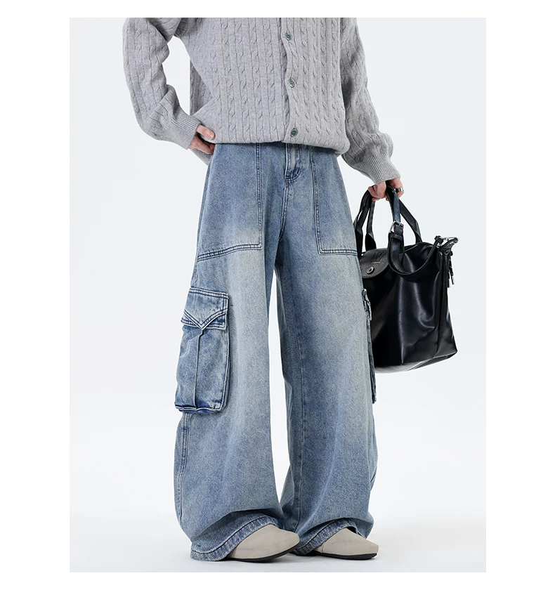 Quần jean nam ống đứng phong cách đường phố thời thượng mùa thu, có túi lớn, quần ống rộng cá tính và sành điệu.
