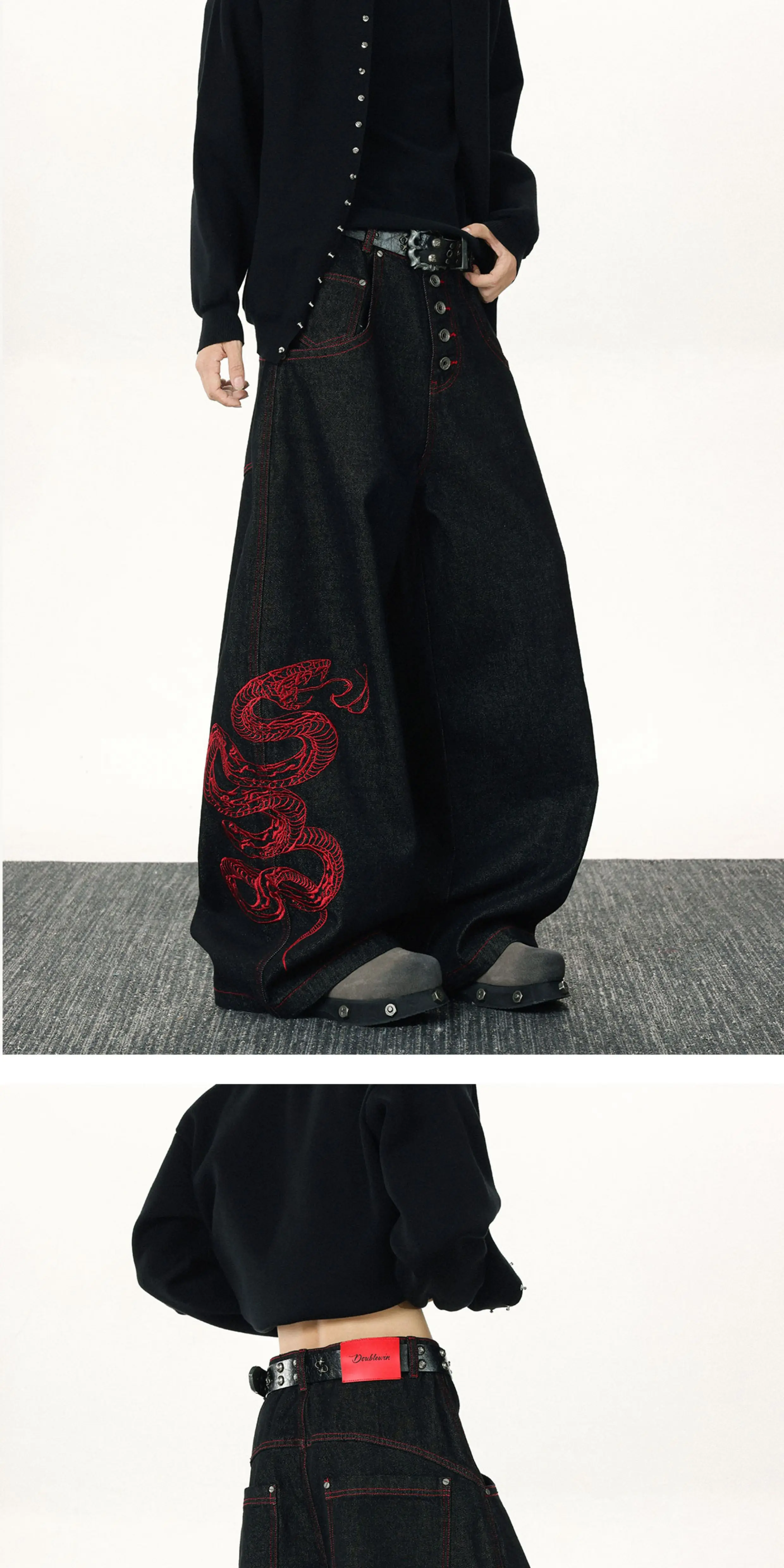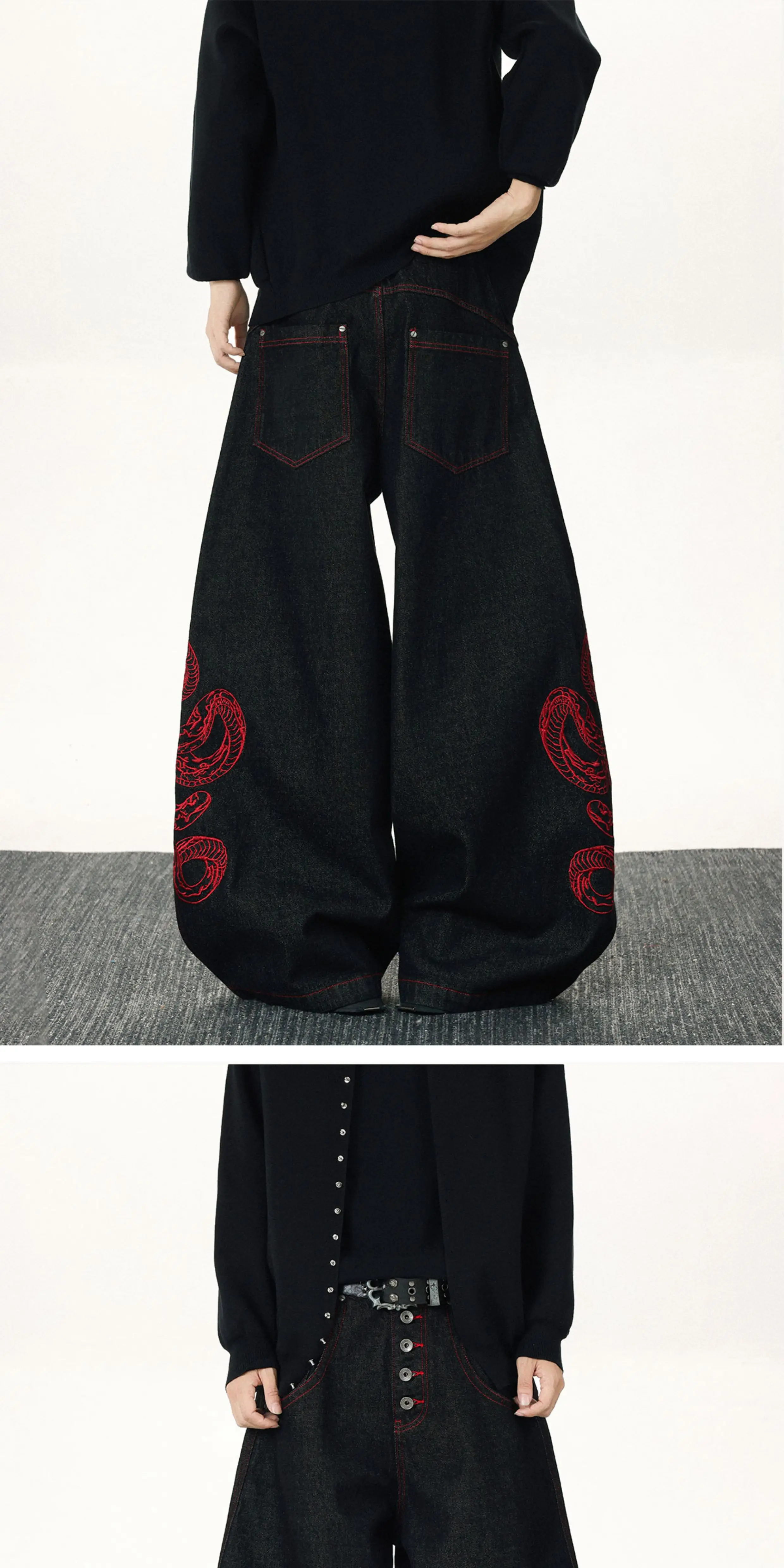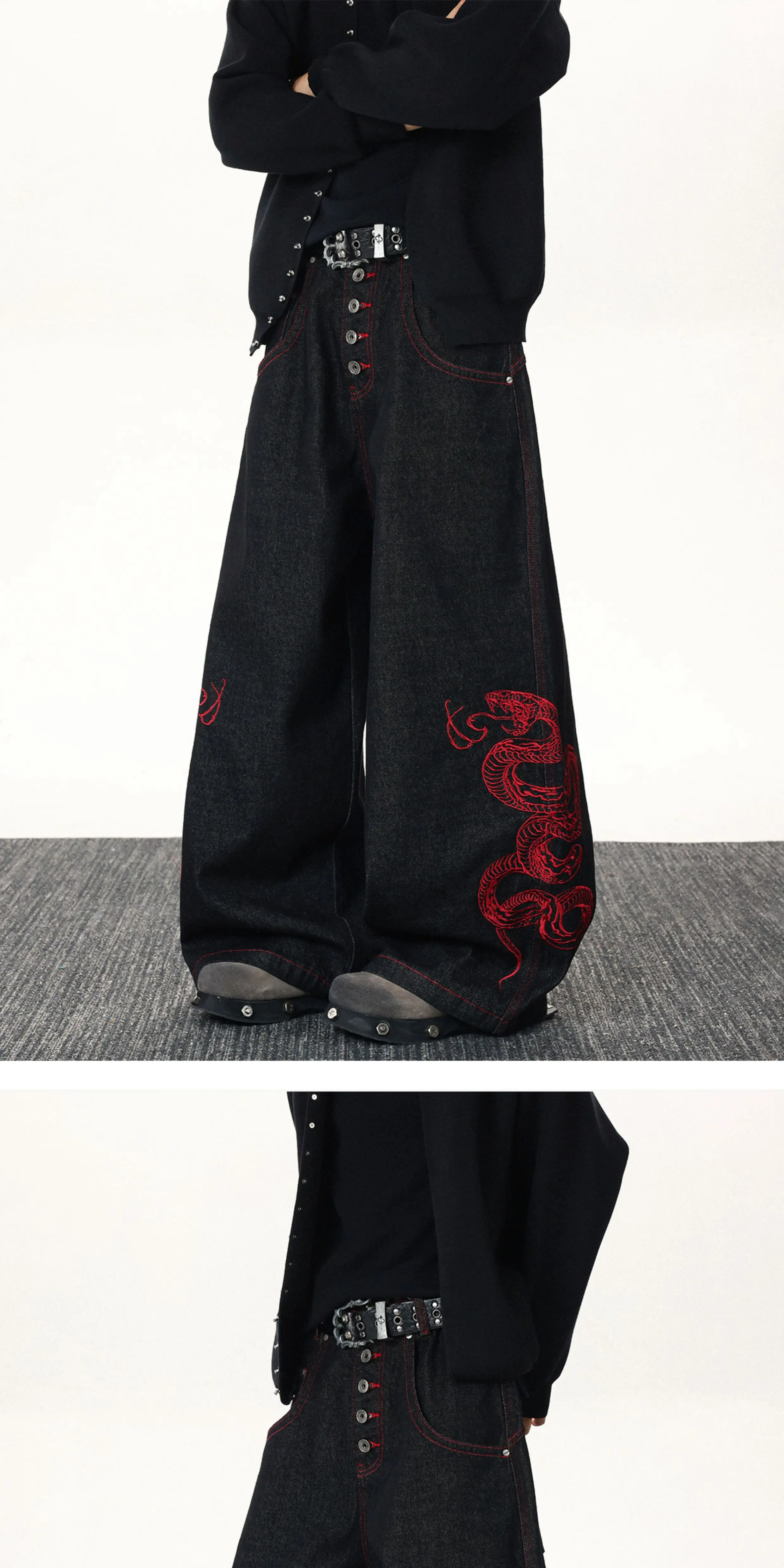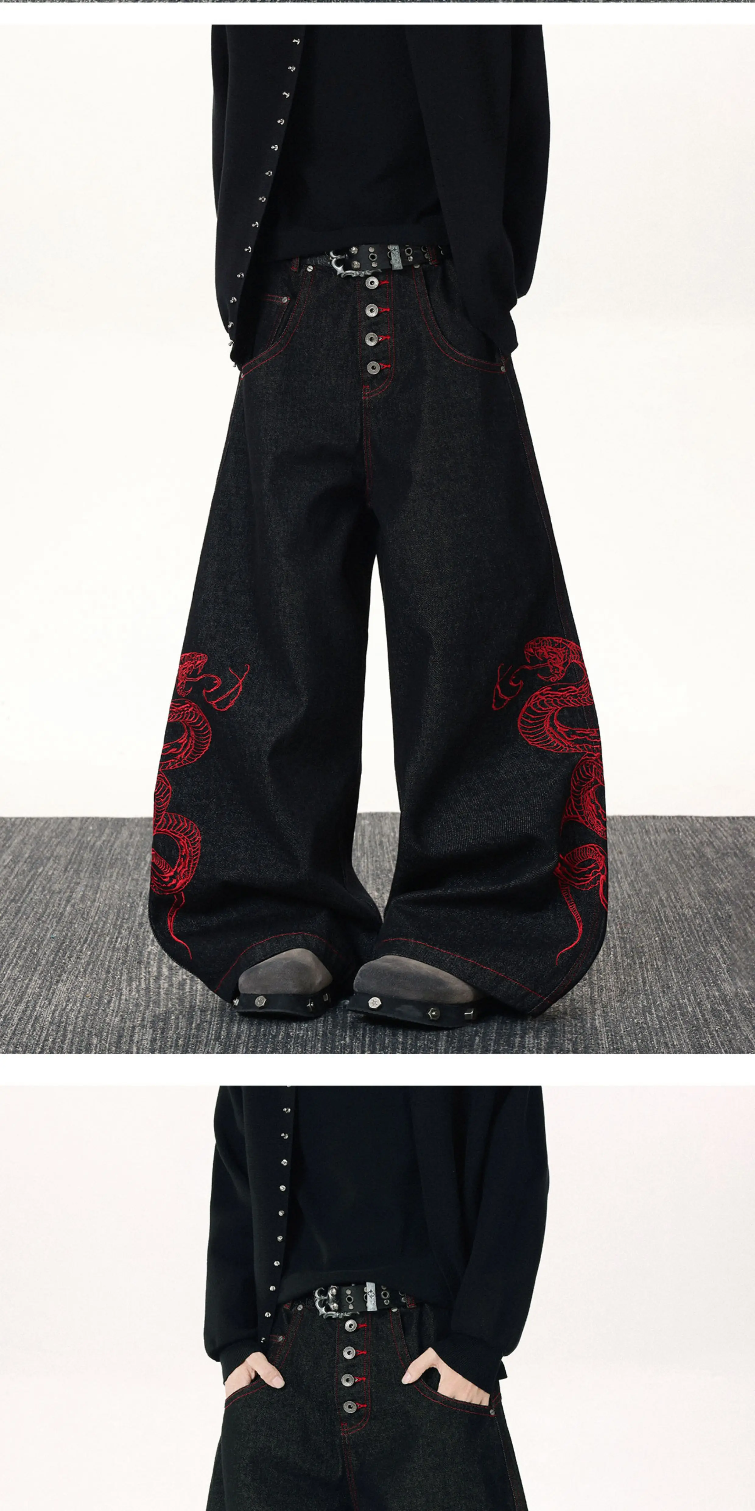 - Quần jean nam thêu 3D cao cấp, thiết kế cài nút, quần ống rộng thời trang xuân thu, quần dài dáng rộng phong cách Mỹ.