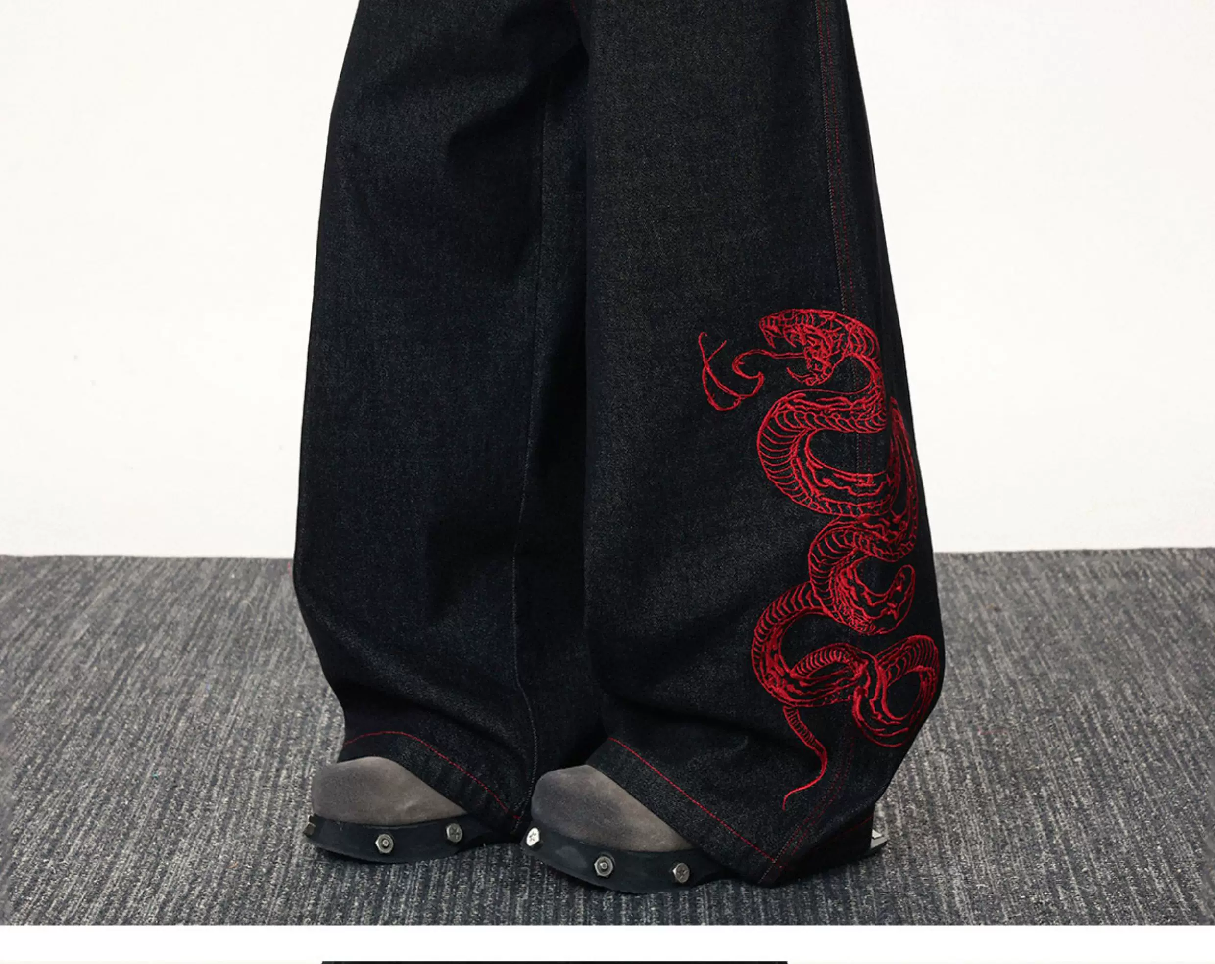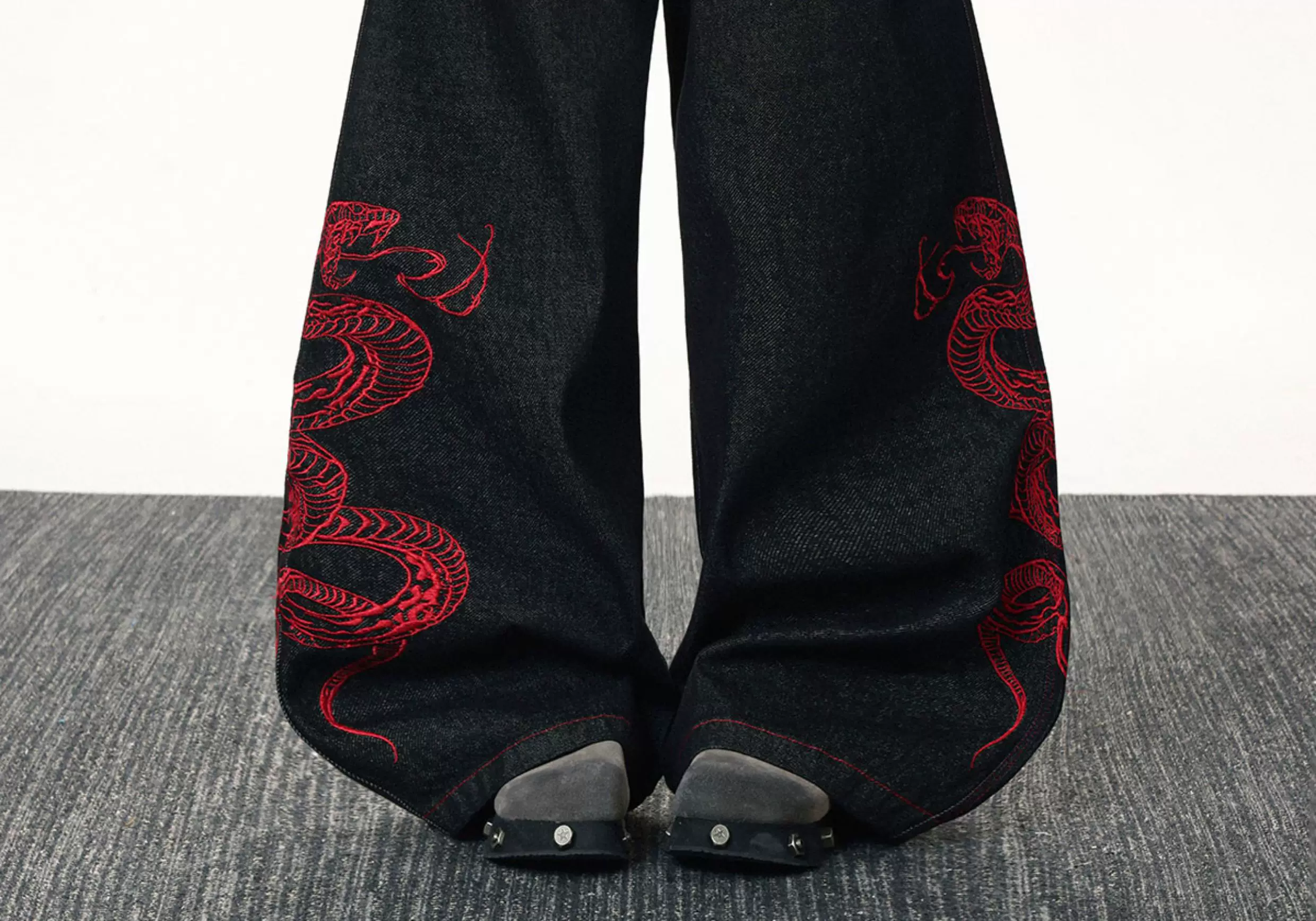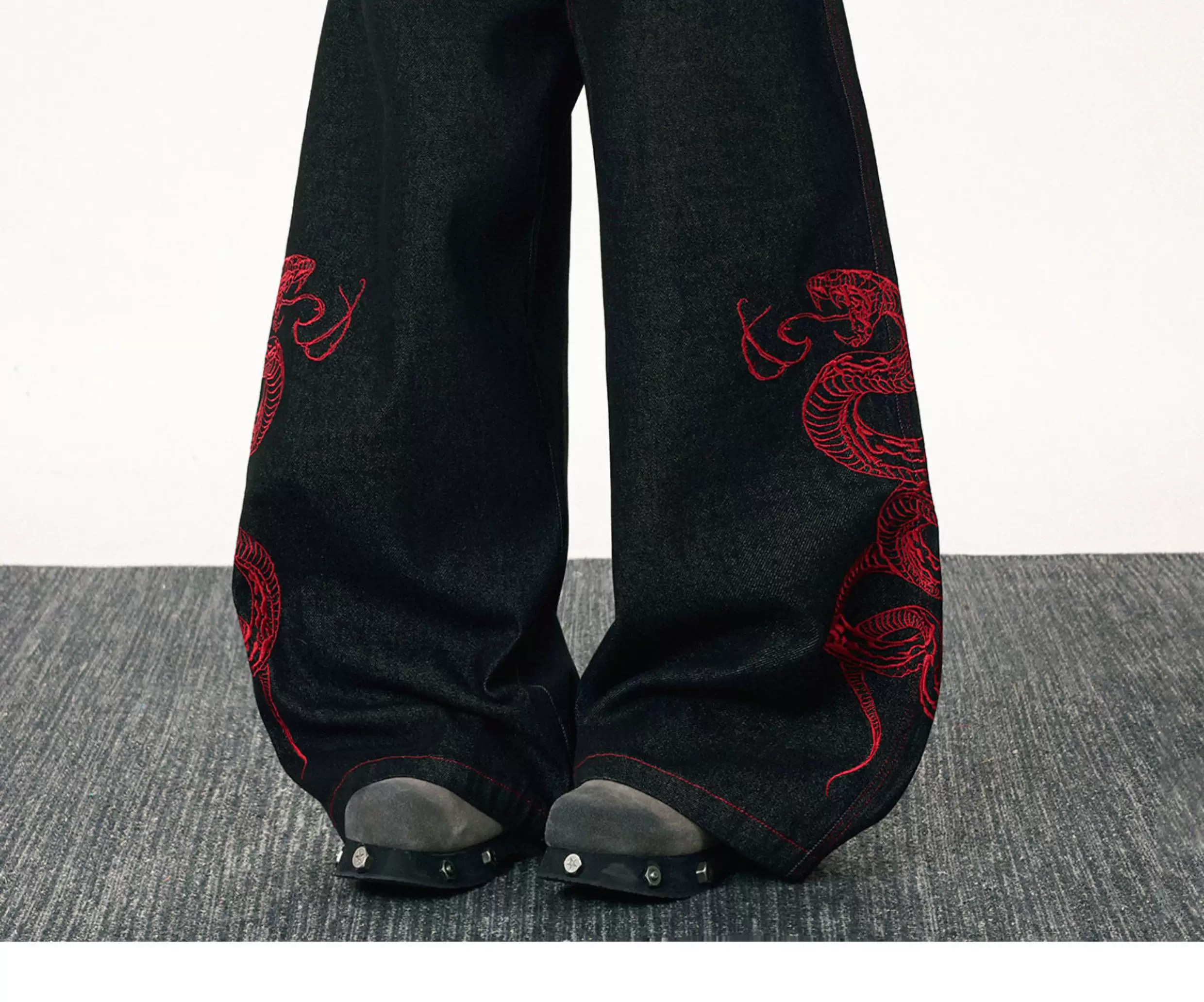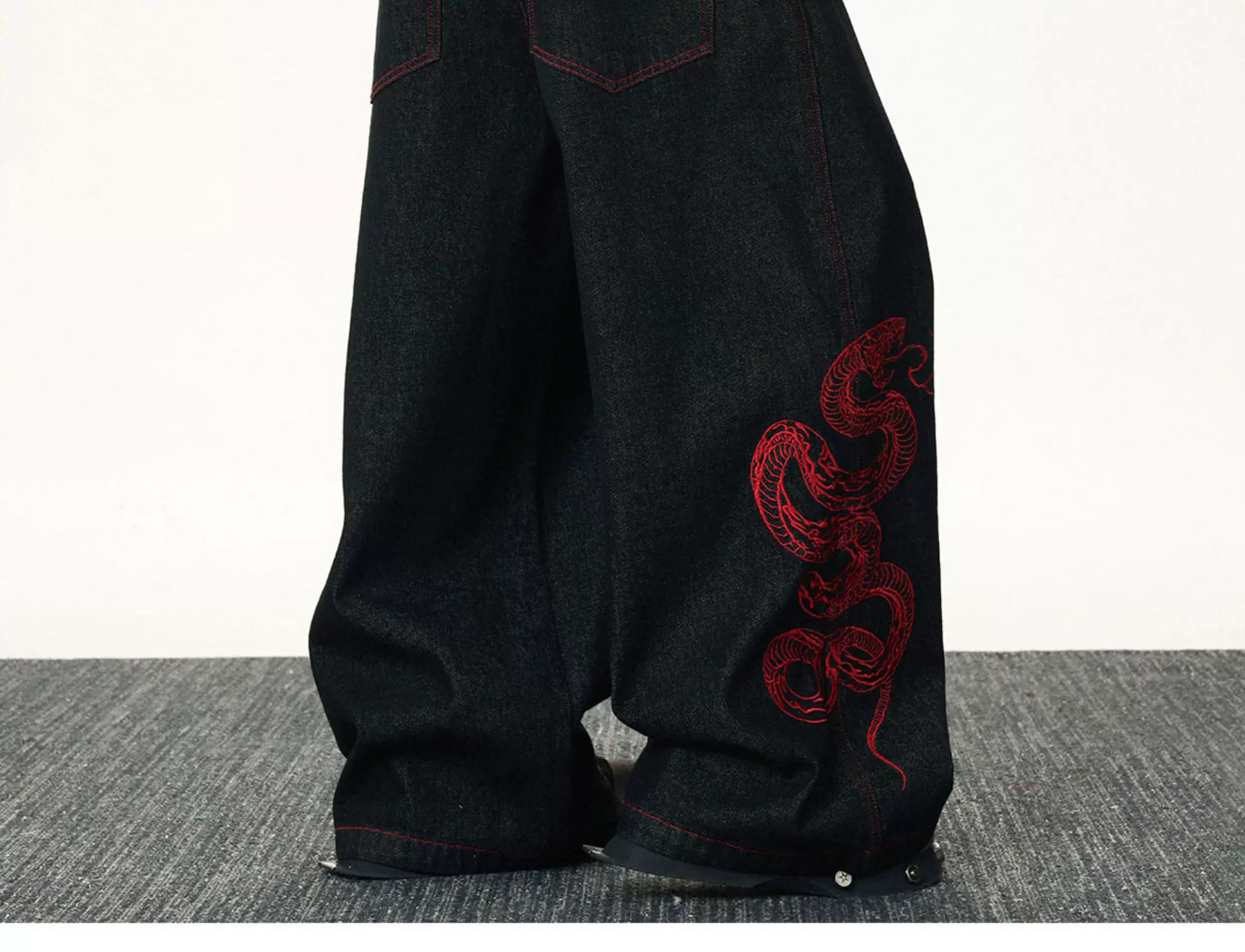 - Quần jean nam thêu 3D cao cấp, thiết kế cài nút, quần ống rộng thời trang xuân thu, quần dài dáng rộng phong cách Mỹ.