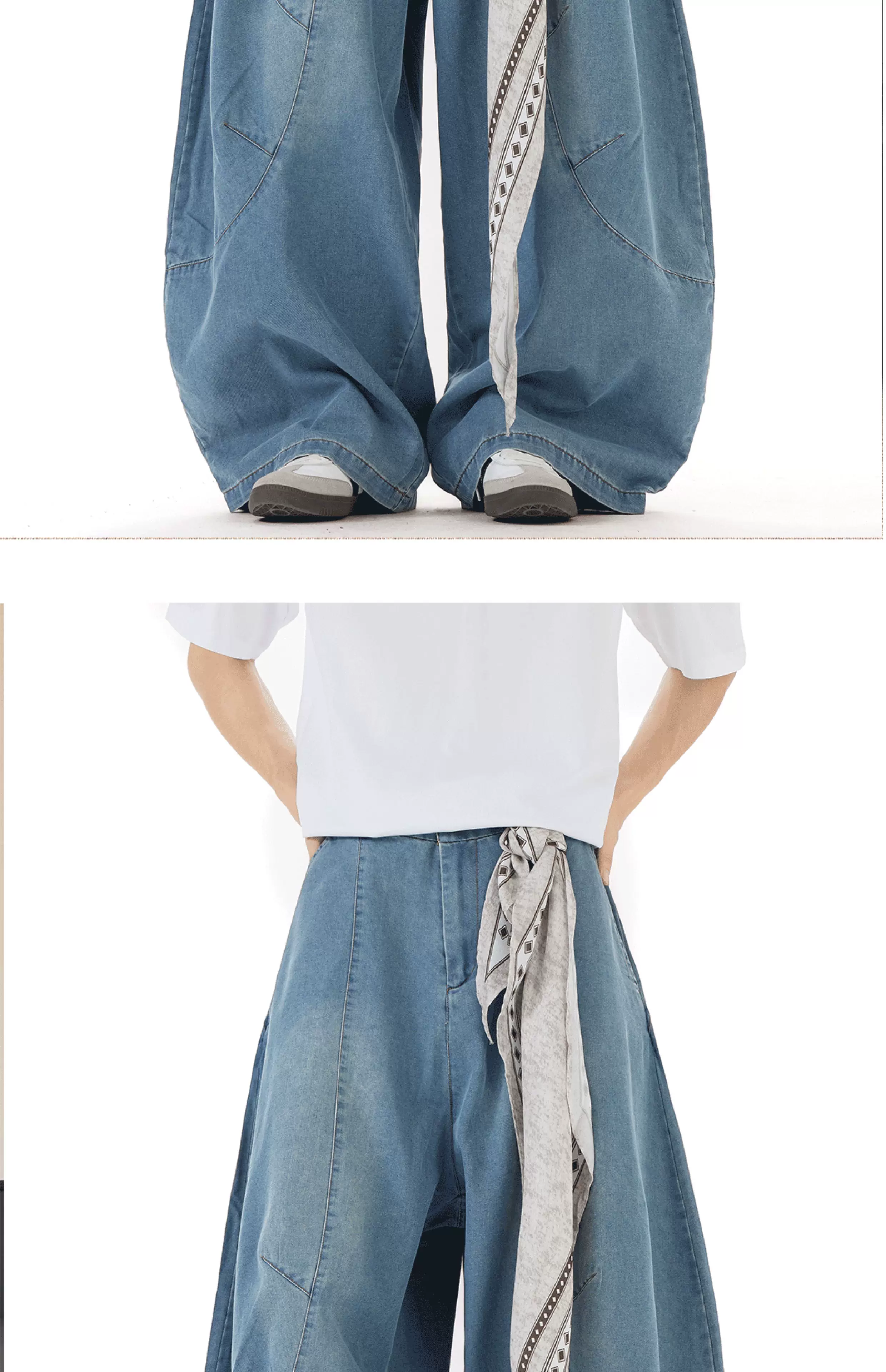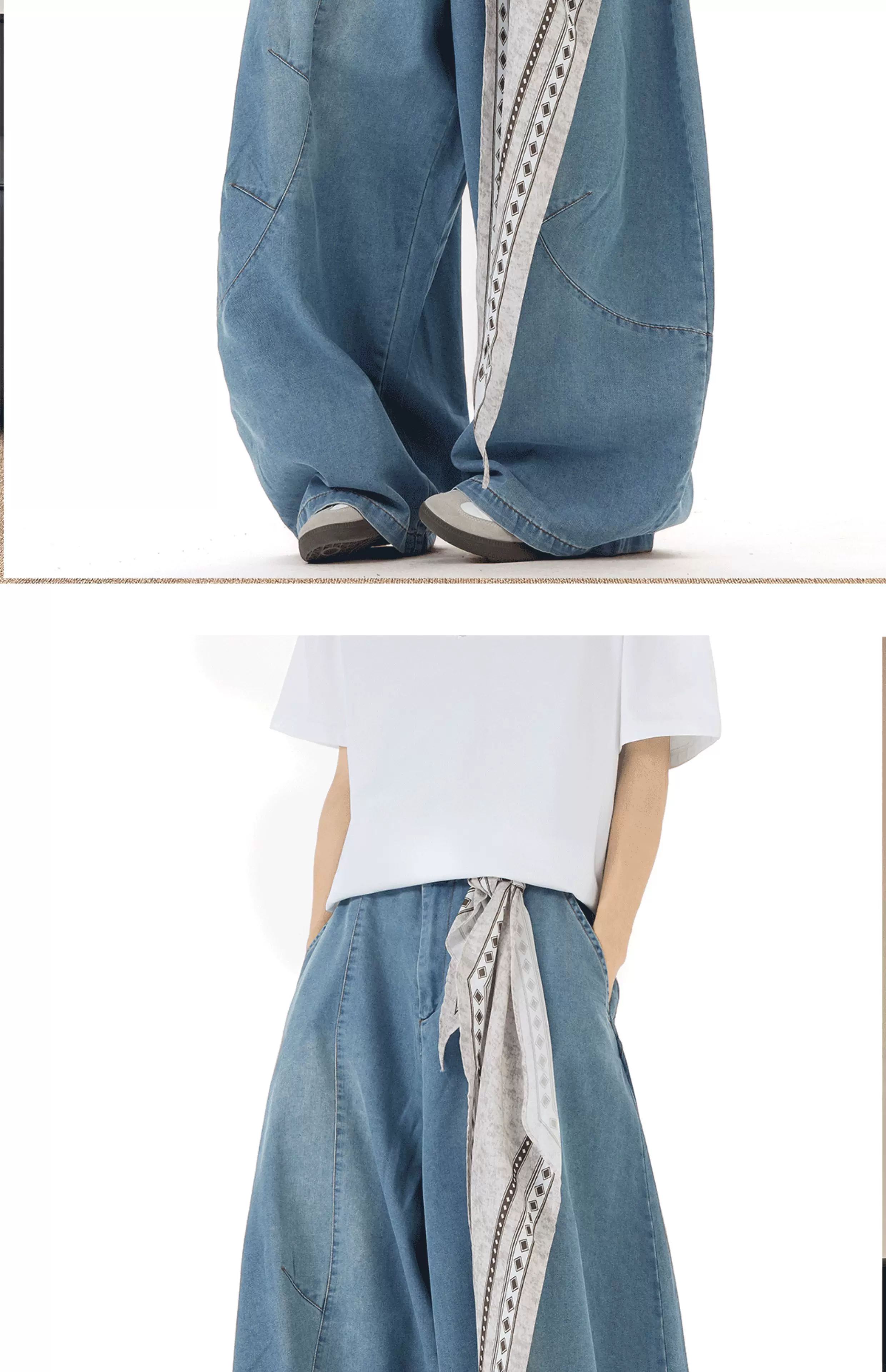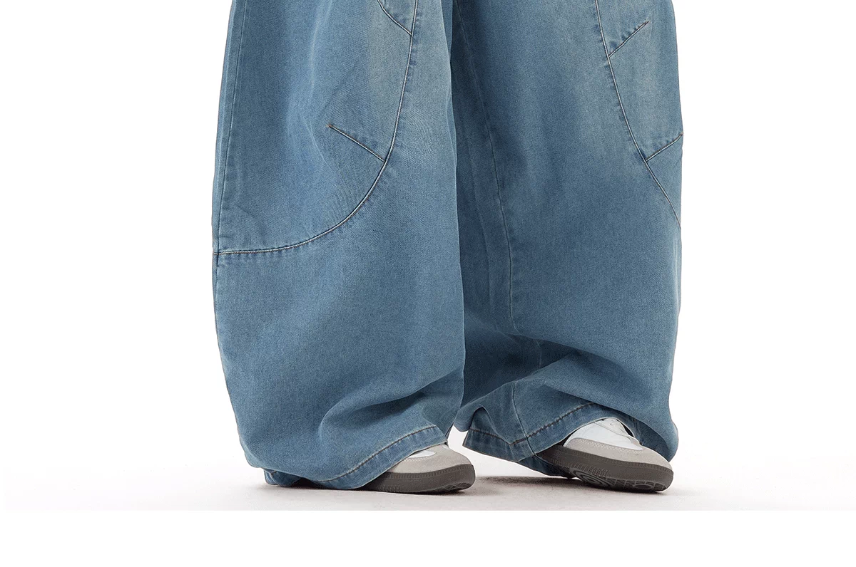 - Quần jean nam thiết kế mùa hè, kiểu dáng cong, quần ống rộng phong cách retro Mỹ, quần dài chạm đất thời thượng.