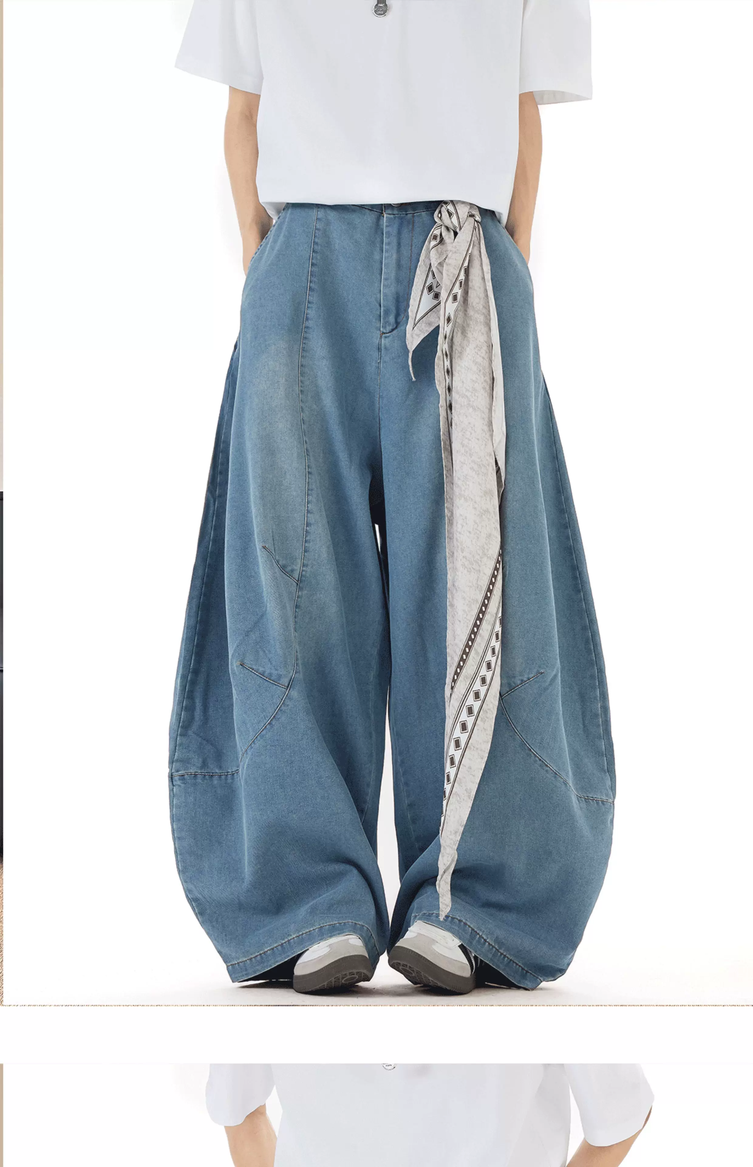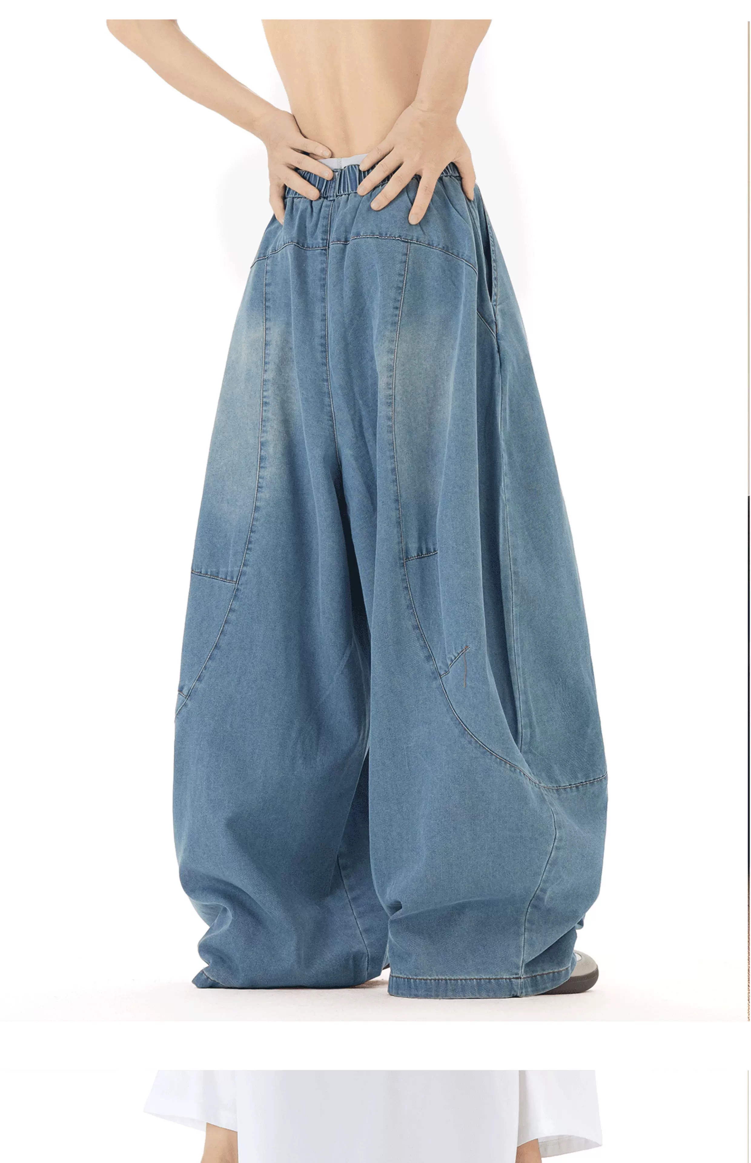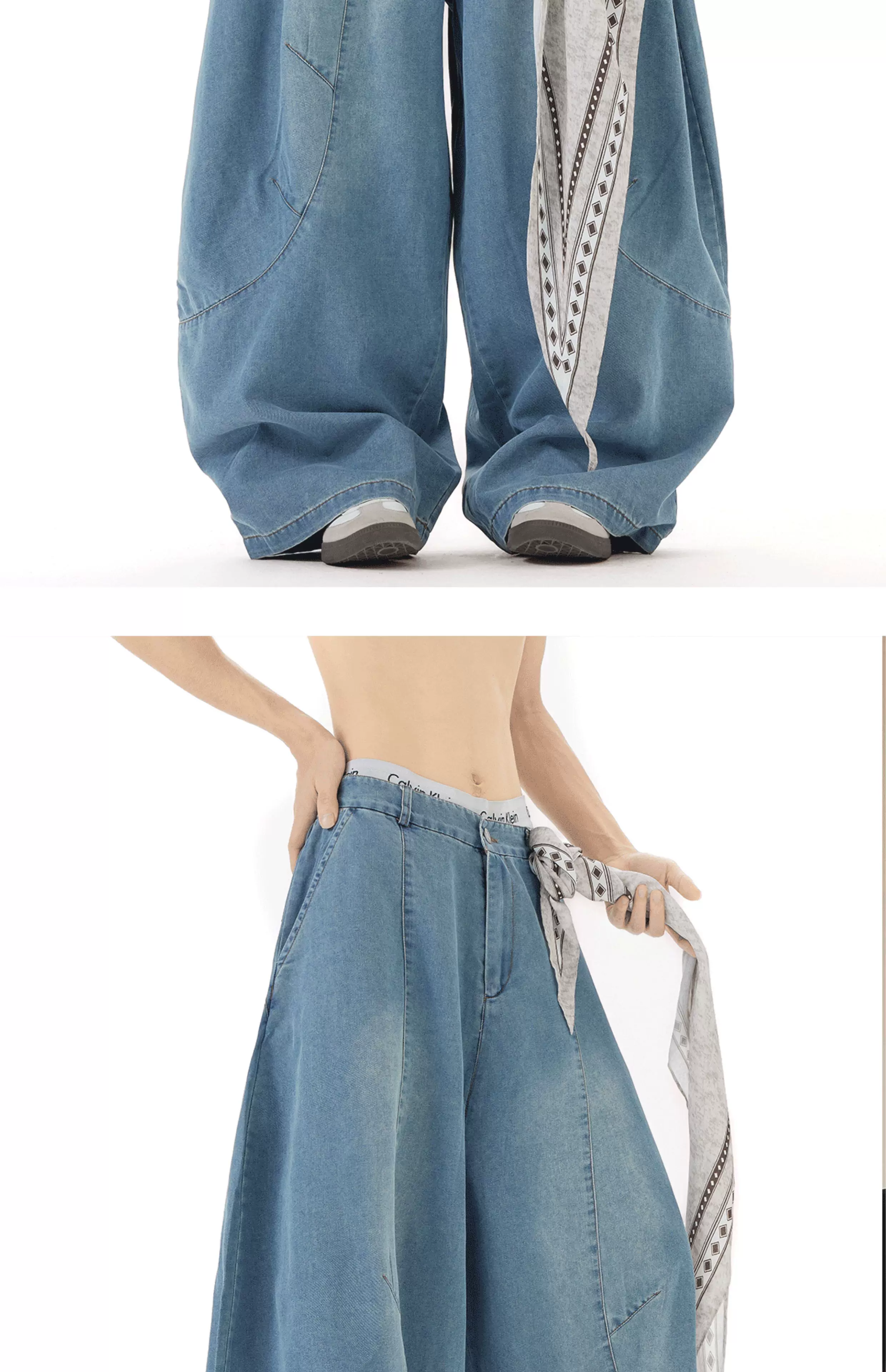 - Quần jean nam thiết kế mùa hè, kiểu dáng cong, quần ống rộng phong cách retro Mỹ, quần dài chạm đất thời thượng.