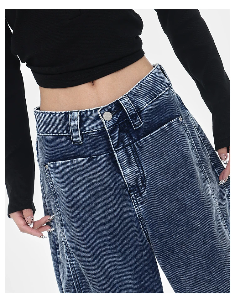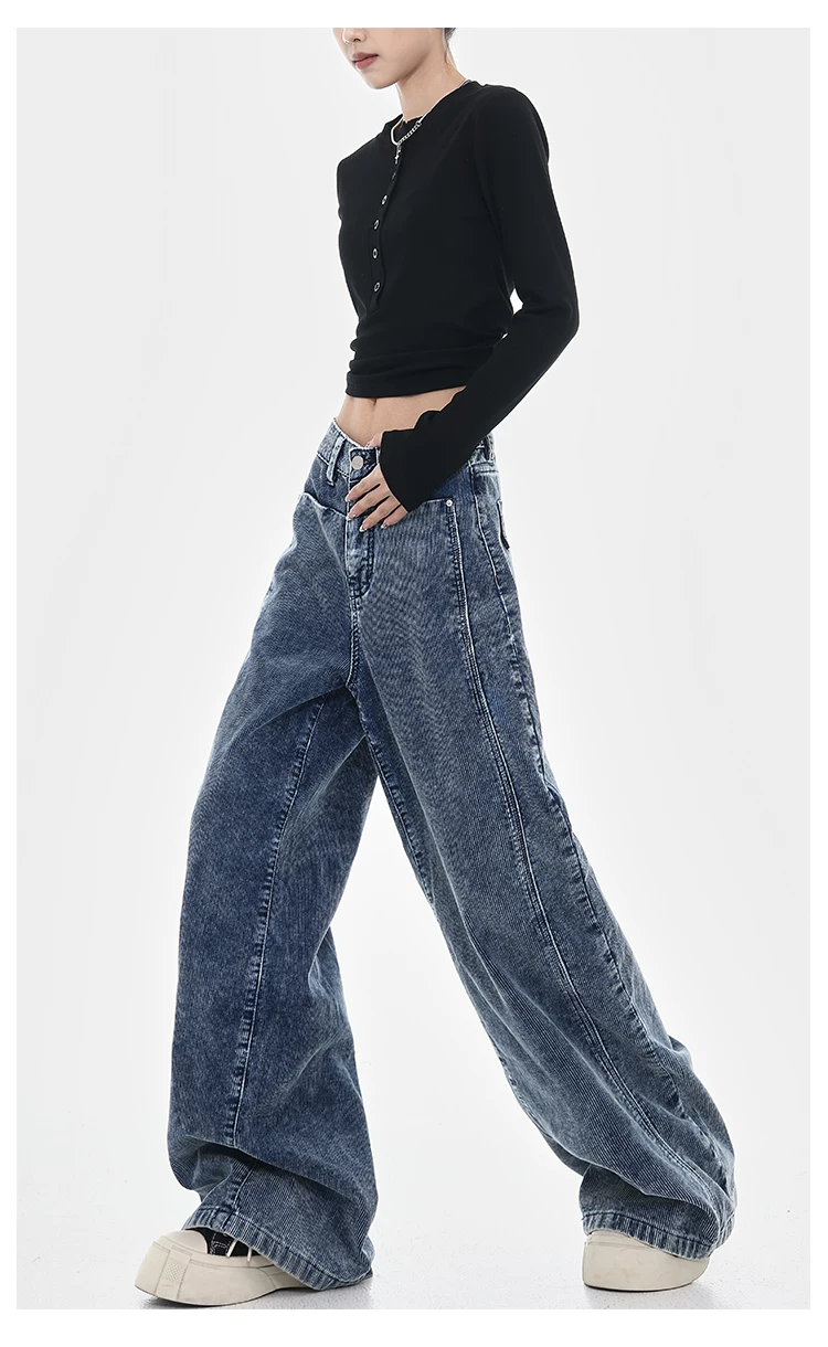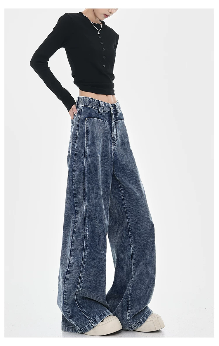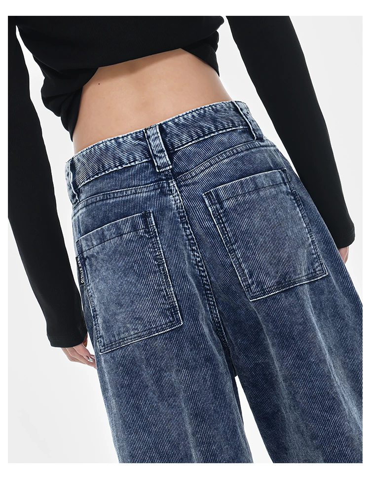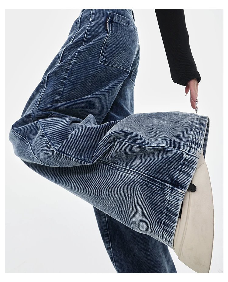 Quần jean nhung kiểu Mỹ cổ điển thu đông mới của KEN STUDIO là quần ống rộng đa năng và phong cách.