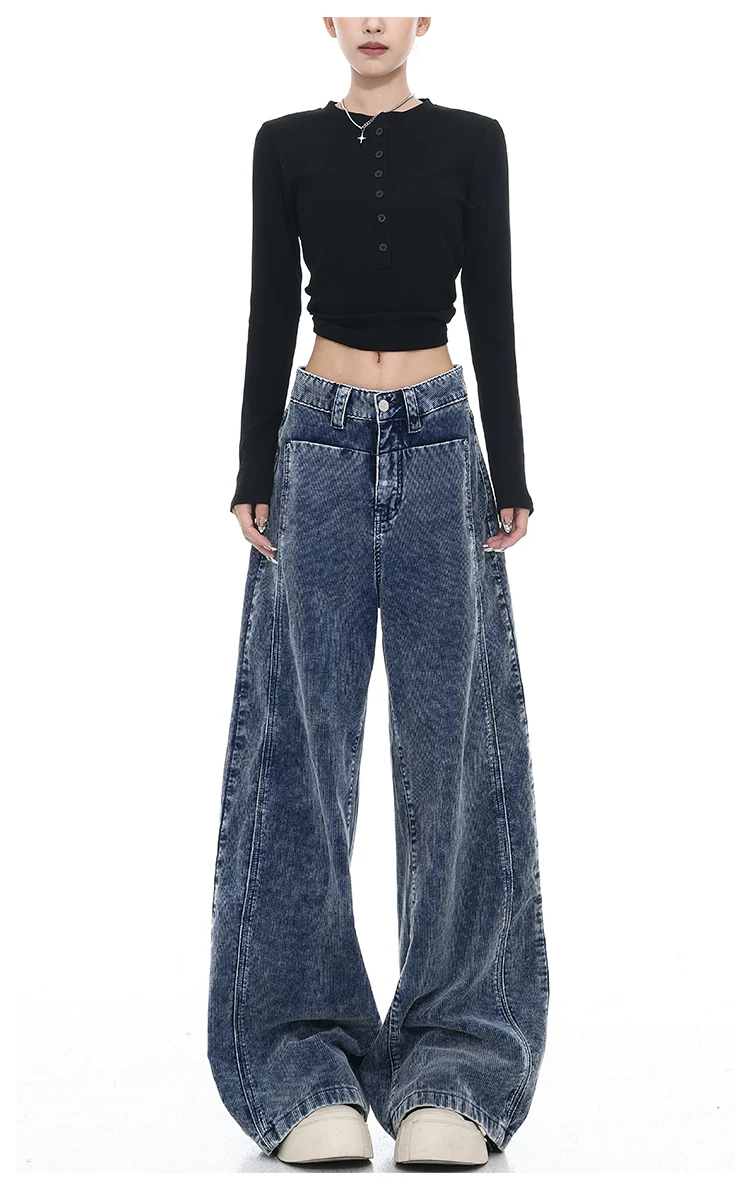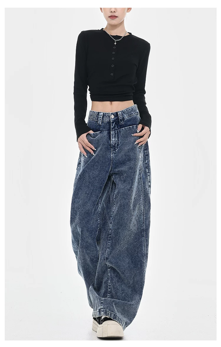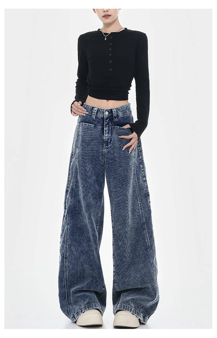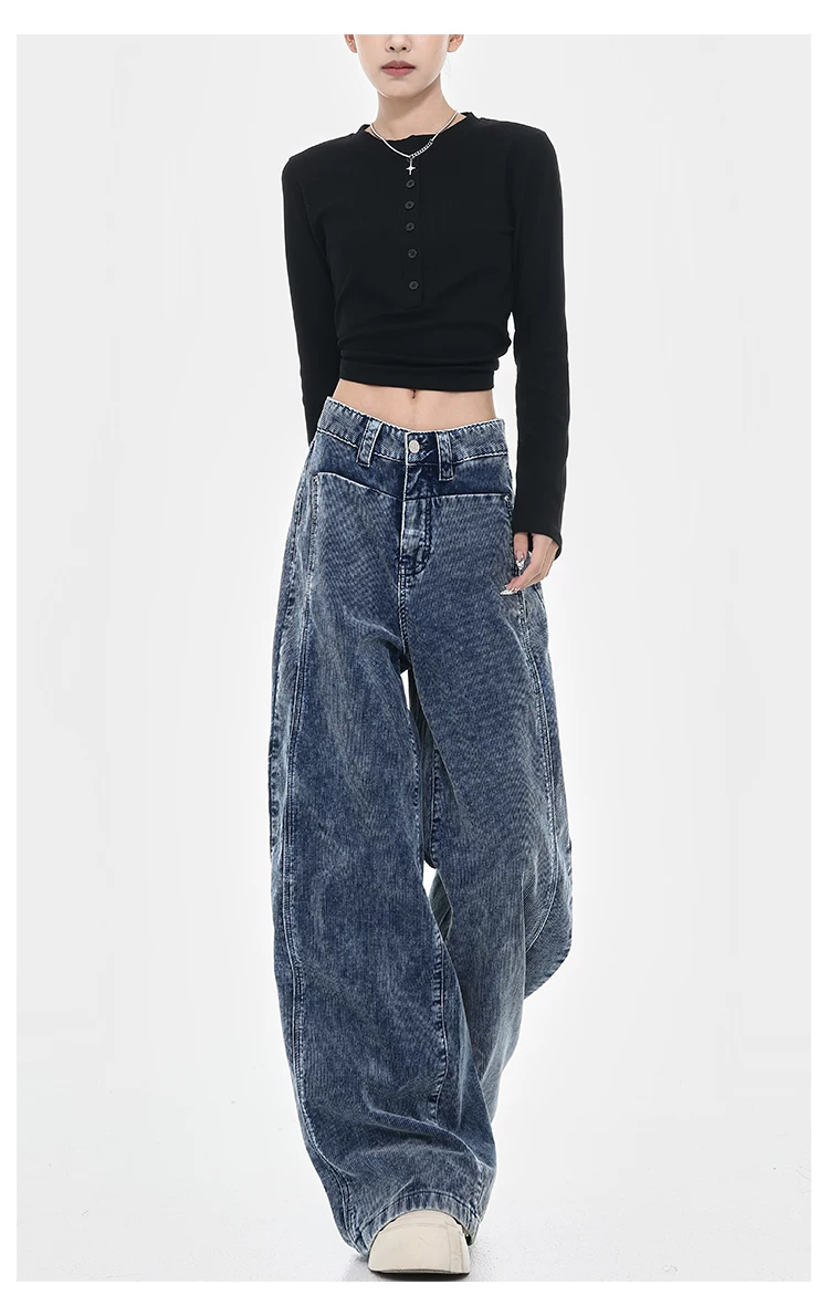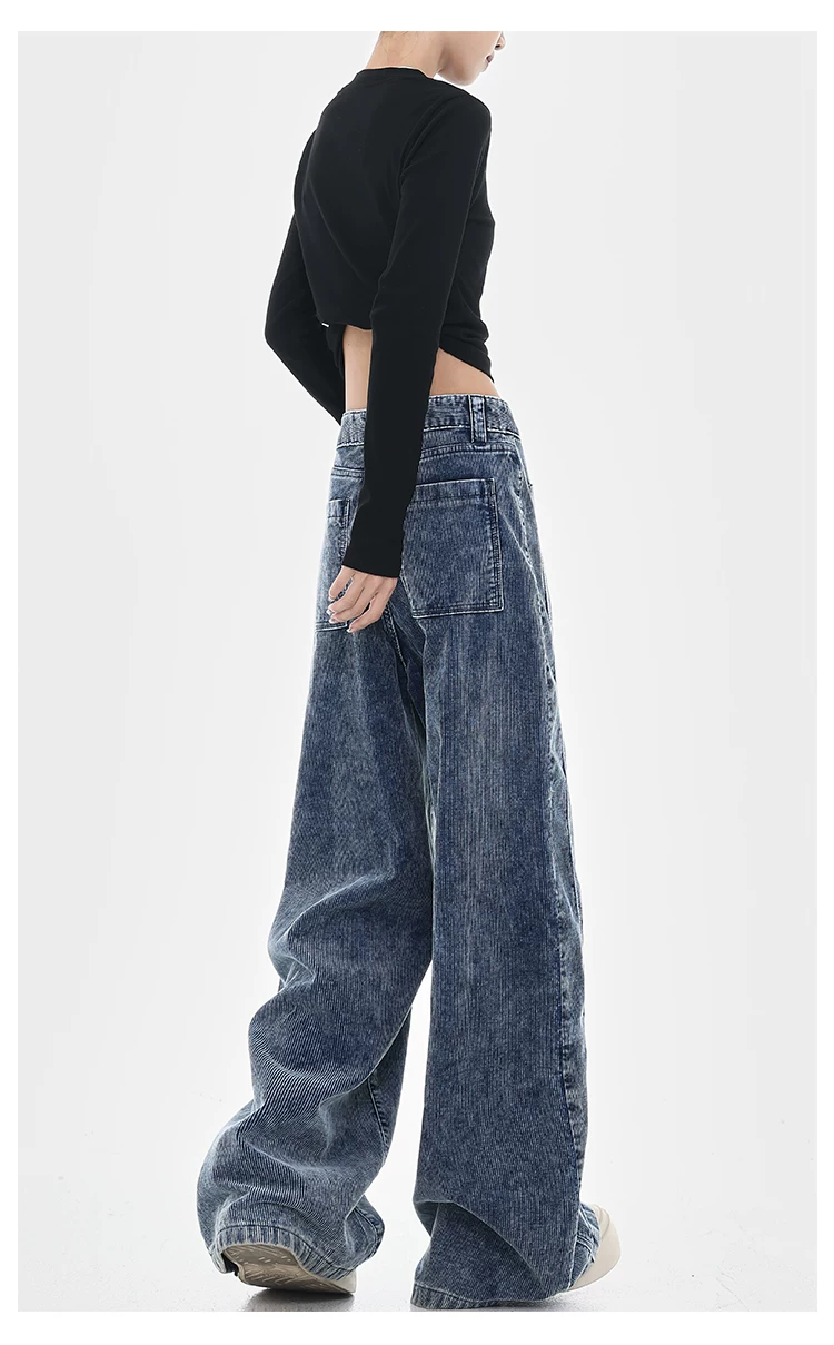 Quần jean nhung kiểu Mỹ cổ điển thu đông mới của KEN STUDIO là quần ống rộng đa năng và phong cách.