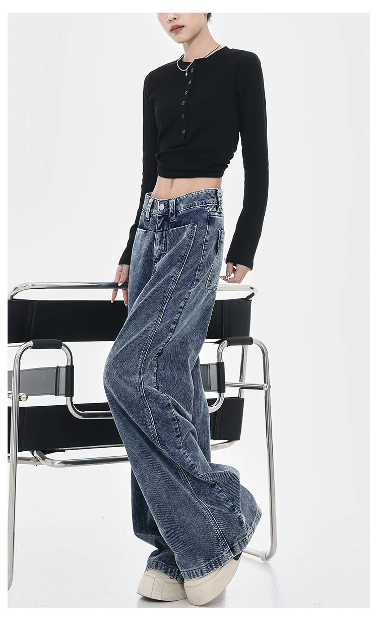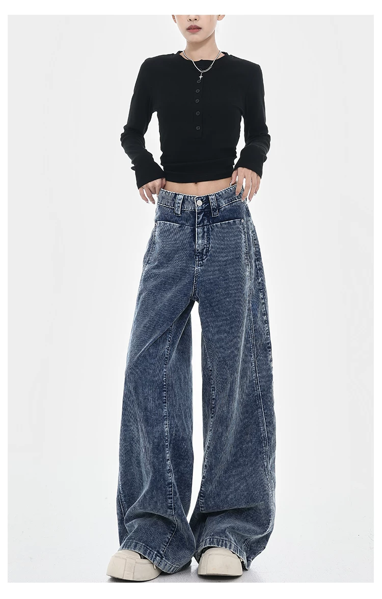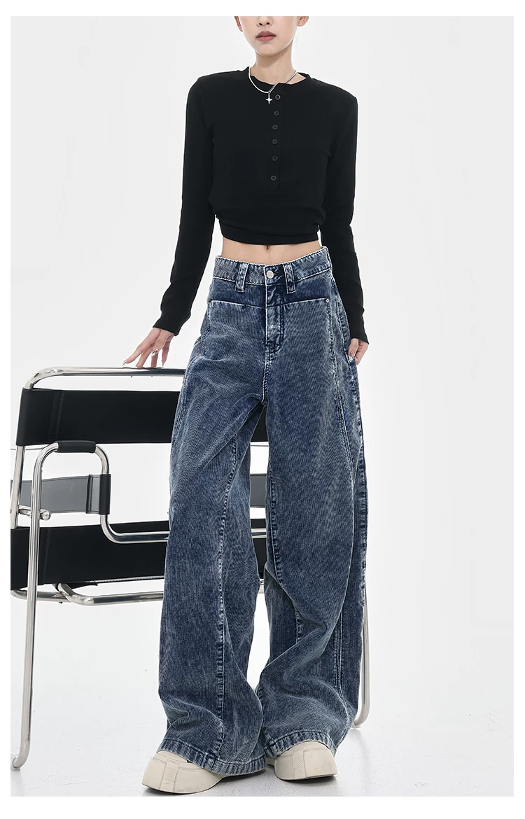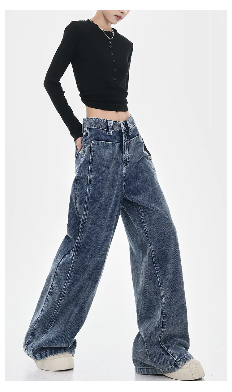 - Quần jean nhung kiểu Mỹ cổ điển thu đông mới của KEN STUDIO là quần ống rộng đa năng và phong cách.