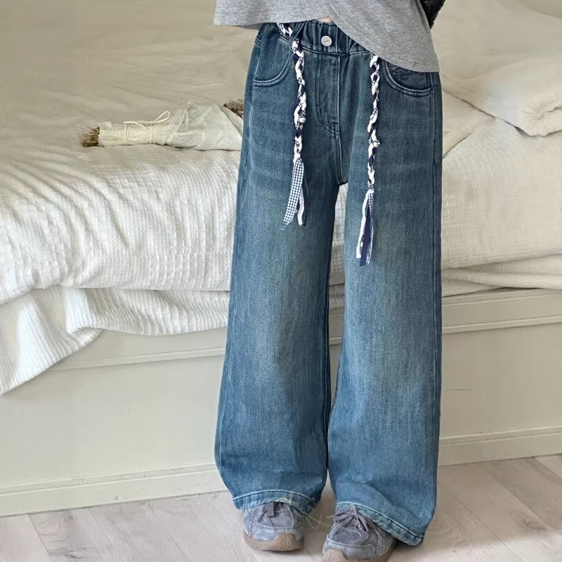 Quần jean nữ 25 kiểu dáng mới xuân thu quần trẻ em mùa thu quần ống đứng dành cho trẻ lớn quần dài ống rộng dáng rộng thường ngày
